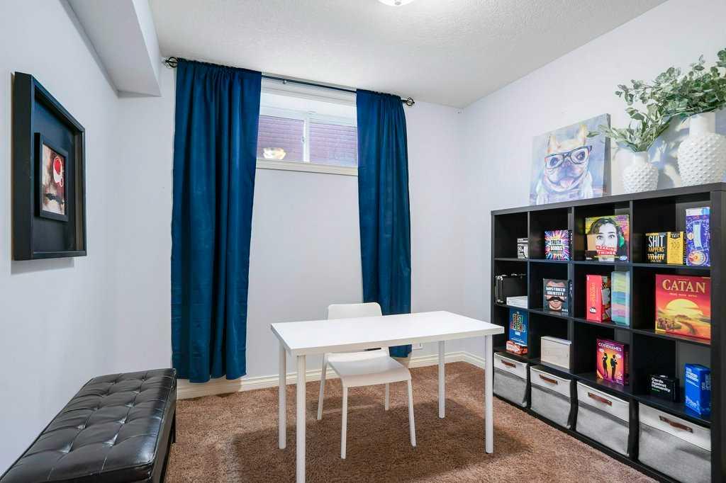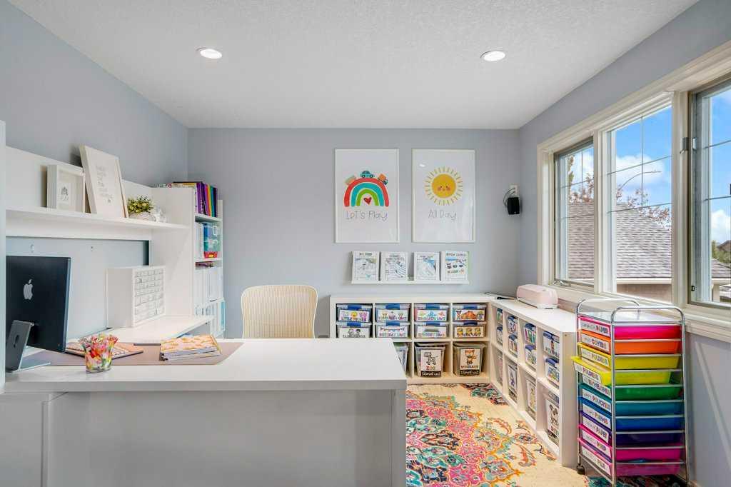 The fully finished basement offers 9-foot ceilings, a wet bar, built-in entertainment area, second gas fireplace, fourth bedroom, full bathroom, and dedicated office space.
