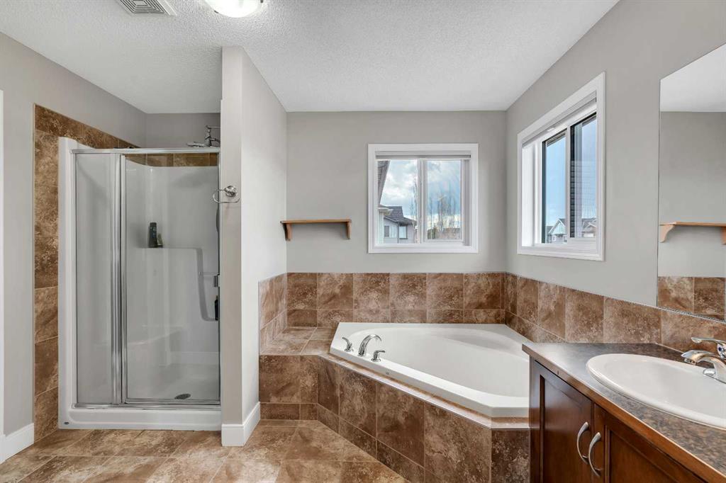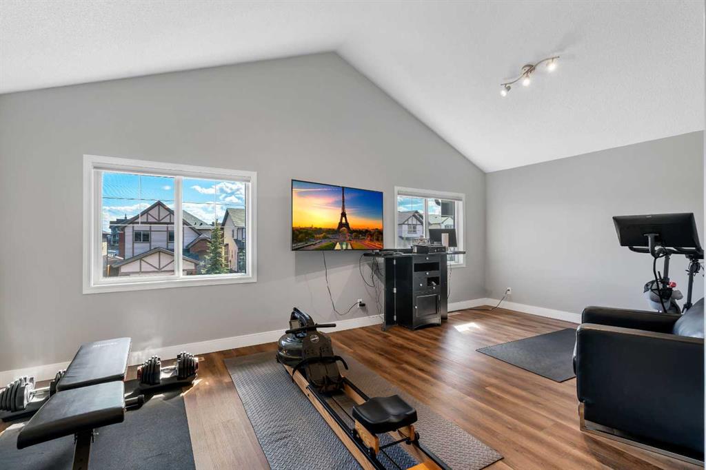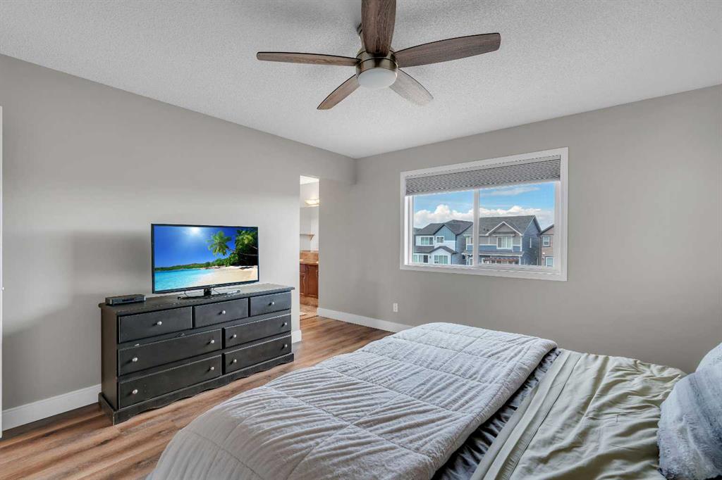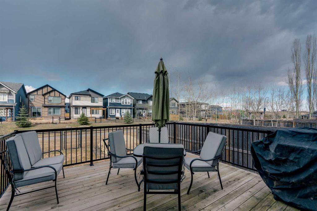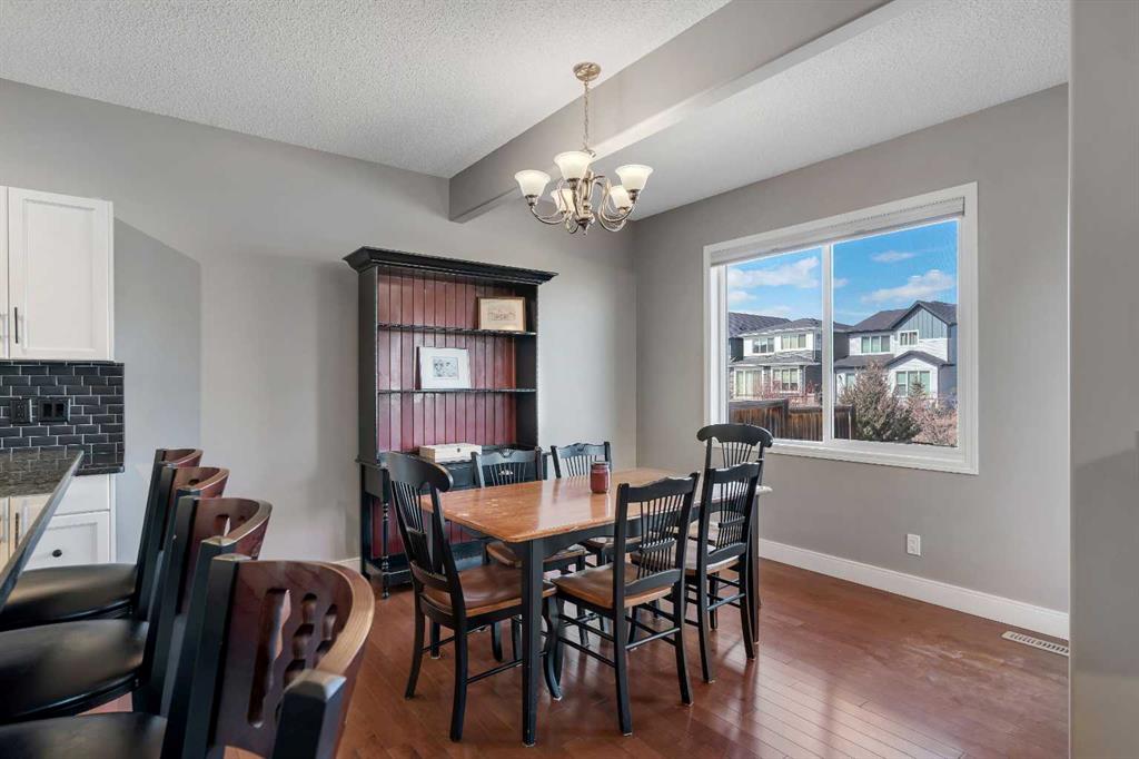 Welcome to 18 Silverado Skies Drive SW. Backing directly onto a green space and a walking path with, this fully updated Silverado home offers over 2,300 sq ft of developed living space with 4 bedrooms, a main floor office, and 3.5 bathrooms. The main floor is built for both everyday living and entertaining, featuring an open-concept layout with durable hardwood flooring throughout and a cozy gas fireplace anchoring the living room. The kitchen has been tastefully refreshed with crisp white cabinetry, modern black hardware, granite countertops, a central island with eating bar, corner pantry, and stainless steel appliances including a dual oven. A dedicated main floor office and laundry add function without sacrificing space. Upstairs, the vaulted bonus room creates an impressive second living area filled with natural light. The primary suite is spacious and well-designed, featuring a walk-in closet with added custom shelving and a 5-piece ensuite complete with dual sinks, a corner soaker tub, separate shower, and a private water closet. Two additional bedrooms and a full 4-piece bath and laundry room complete the upper level that has recently upgraded luxury vinyl plank flooring throughout. The fully developed basement (2020) expands your living space with a dry bar, electric fireplace, custom built-ins, a large bedroom with legal egress window, and a smart pass-through bathroom with heated floors. This home has seen major exterior and mechanical upgrades, including Hardie siding (2021), all new windows, and a hot water tank (2020). Out back, enjoy an expanded deck overlooking uninterrupted green space and direct access to walking paths. Finished with a double attached garage and located close to schools, parks, and shopping.