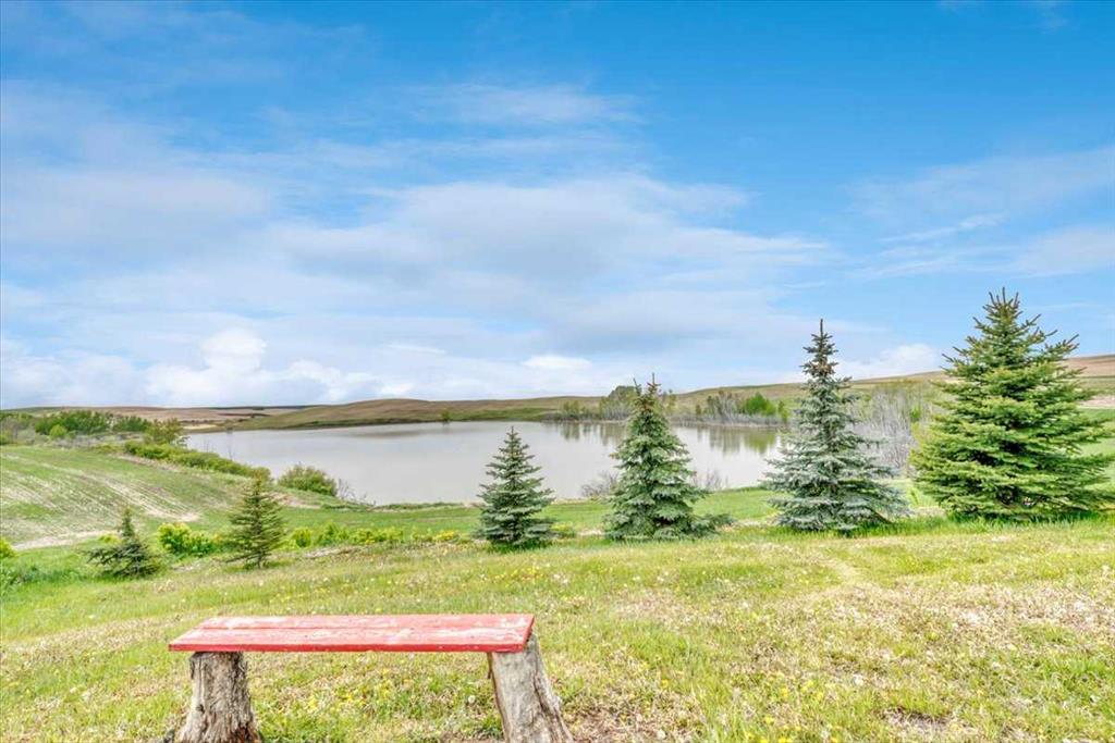 Located just 1 hour east of the Calgary airport, the property also offers access to a 25-acre private slough/pond ideal for water activities, wildlife viewing, or simple quiet time by the shore. A spacious hillside fire pit just off the back deck overlooks the water, creating the perfect setting for relaxing evenings and unforgettable views year-round