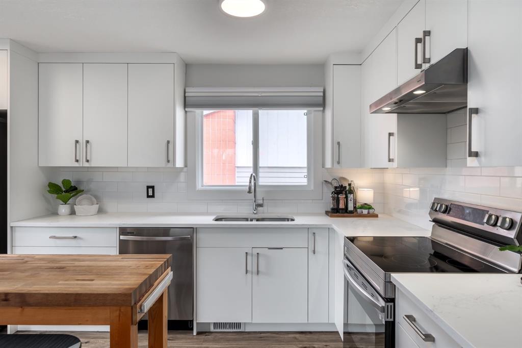 Set on a rare, expansive corner lot surrounded by green space, this fully renovated 4 bedroom, 2 bath, nearly 1600 sq ft, bi-level home offers an exceptional blend of privacy, style, and inner-city convenience. Just 10 minutes from downtown, the home is ideally positioned to enjoy both peaceful surroundings and quick access to the city core. Thoughtfully redesigned from top to bottom, the open-concept layout is elevated by a soaring vaulted ceiling in the living room, creating a bright, airy atmosphere that immediately feels like home.