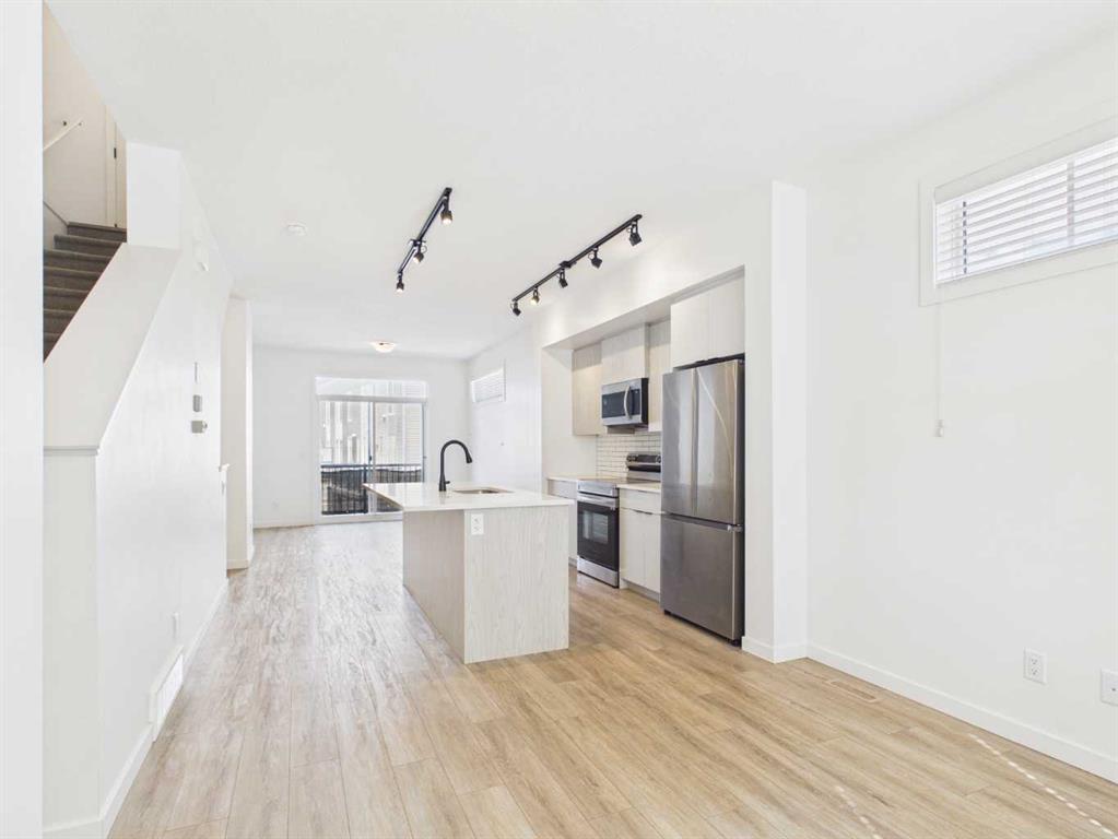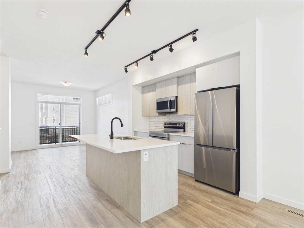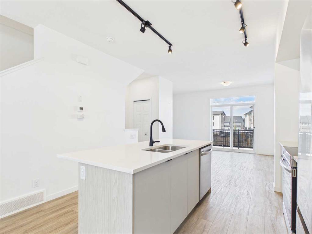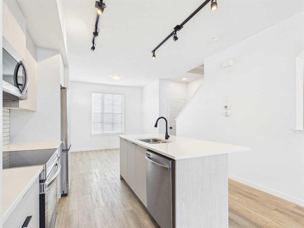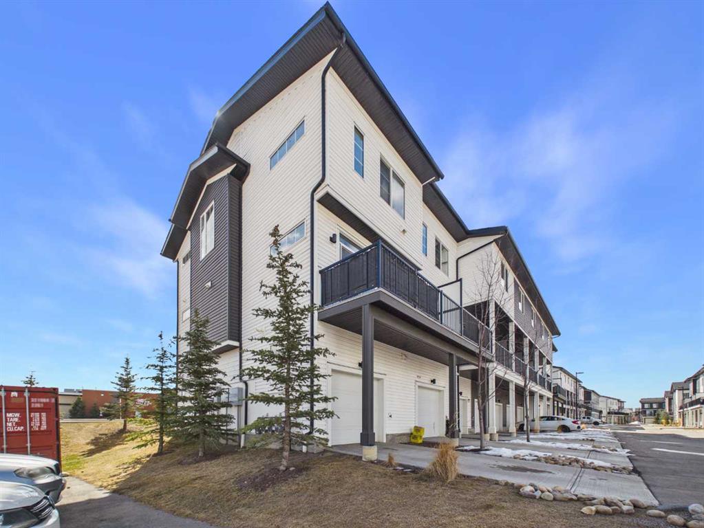 Welcome to this beautifully maintained end-unit townhouse in the desirable community of Walden. Built in 2022 and showing very well, this home offers 1279 sq. ft. of thoughtfully designed living space with 3 bedrooms, 2 full bathrooms, a convenient half bath, and a tandem garage with room for 2 vehicles or extra storage, plus driveway parking. The bright, open-concept main level features upgraded LVP flooring on main and upper floors ,access to a large north-facing balcony, creating a comfortable outdoor space with excellent shade during the summer months. The third bedroom offers flexibility for a home office, study area, or guest space. Ideal for first-time buyers, professionals, downsizers, or investors, this property combines low-maintenance living with everyday convenience. Located near Walden’s parks, pathways, ponds, and green spaces, and just minutes from the Township shopping district at 210 Avenue SE and Macleod Trail, you will enjoy easy access to groceries, restaurants, coffee shops, fitness, banking, health services, pet stores, and more.
