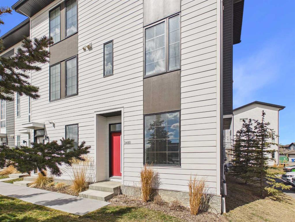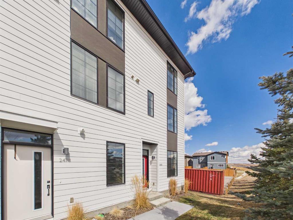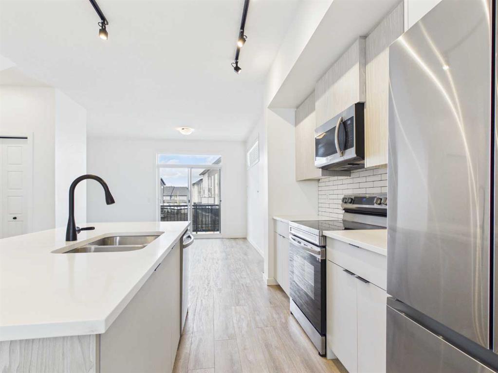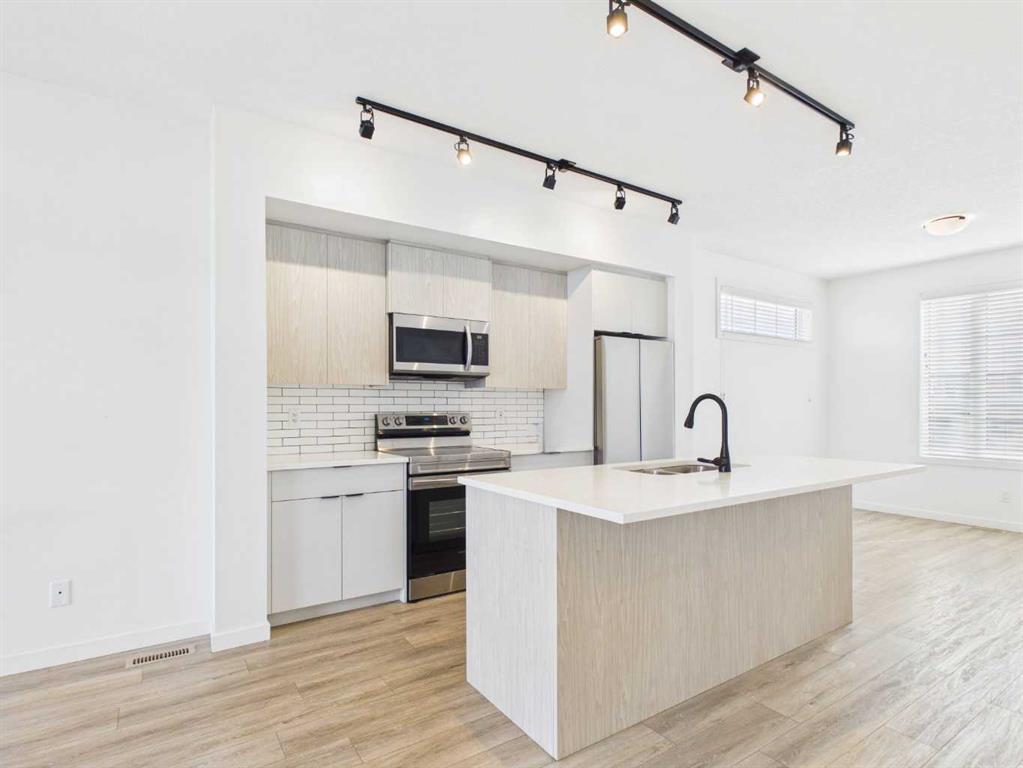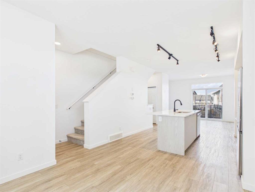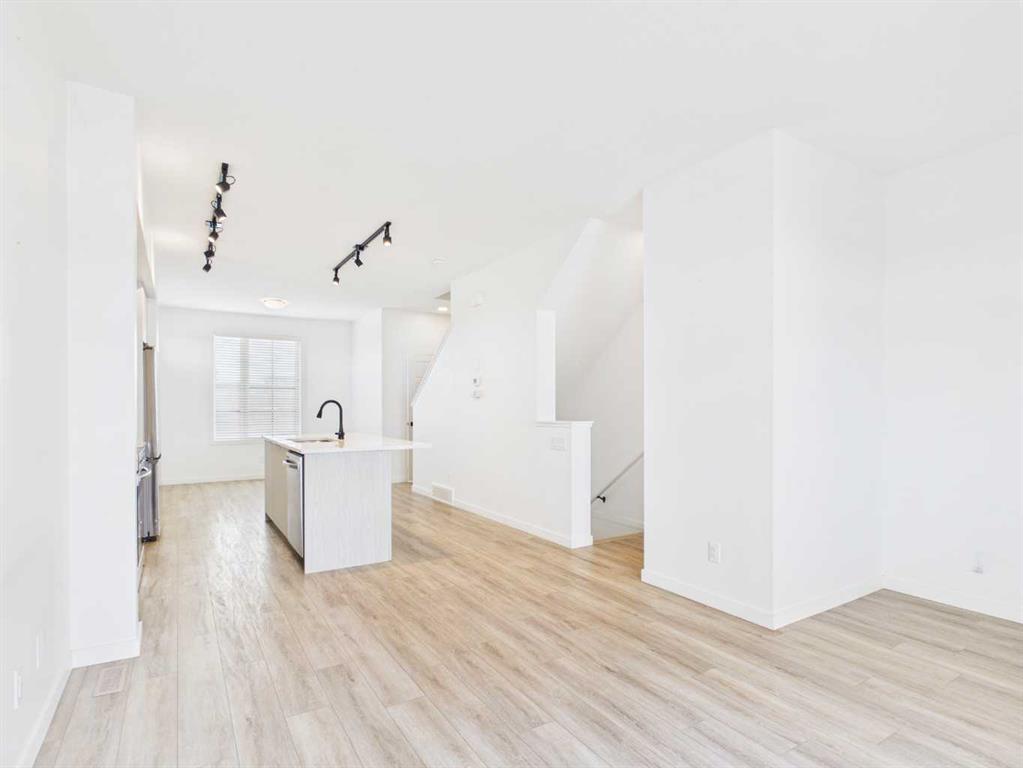 Welcome to this beautifully maintained end-unit townhouse in the desirable community of Walden. Built in 2022 and showing very well, this home offers 1279 sq. ft. of thoughtfully designed living space with 3 bedrooms, 2 full bathrooms, a convenient half bath, and a tandem garage with room for 2 vehicles or extra storage, plus driveway parking. The bright, open-concept main level features upgraded LVP flooring on main and upper floors ,access to a large north-facing balcony, creating a comfortable outdoor space with excellent shade during the summer months. The third bedroom offers flexibility for a home office, study area, or guest space. Ideal for first-time buyers, professionals, downsizers, or investors, this property combines low-maintenance living with everyday convenience. Located near Walden’s parks, pathways, ponds, and green spaces, and just minutes from the Township shopping district at 210 Avenue SE and Macleod Trail, you will enjoy easy access to groceries, restaurants, coffee shops, fitness, banking, health services, pet stores, and more.