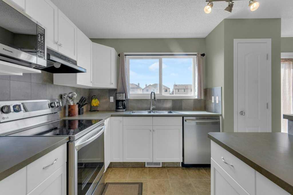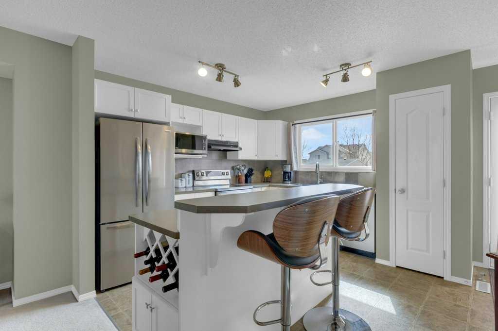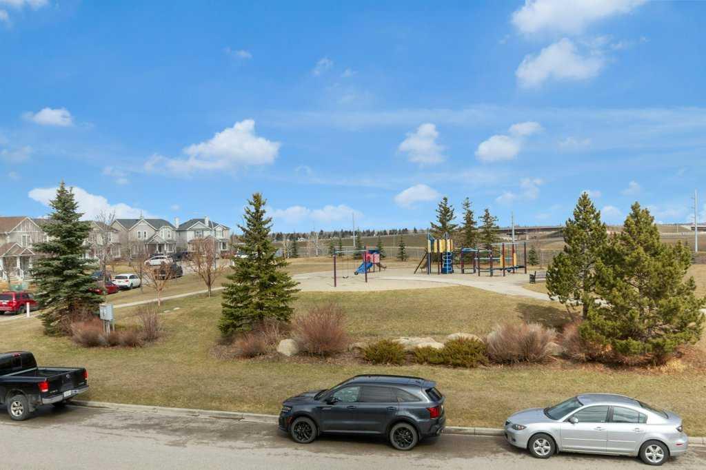 Welcome to this charming semi-detached home in Cranston, one of Calgary’s most desirable family-oriented communities, known for its strong amenities, and easy access to both urban conveniences and natural surroundings. Perfectly positioned facing a park and playground, this home also offers beautiful city views and an inviting, functional layout. Proudly owned by the original owner, the main floor features an open-concept design with a spacious foyer and convenient front closet, leading into a bright and welcoming living room highlighted by a large north facing bay window. The adjoining dining area and kitchen provide ample room for entertaining, complete with newer appliances, plenty of cabinet storage, a raised island, and a pantry. A 2-piece bathroom, large rear closet, and direct access to the rear deck complete this level. Upstairs, you’ll find a generous primary suite with city views and a spacious walk-in closet, along with a second bedroom and a well-appointed 4-piece main bathroom. The upper-level den offers flexibility and can easily be converted into a third bedroom with the addition of a closet. The unfinished basement provides excellent potential for future development and currently includes the laundry area with newer washer and dryer, and utility area with newer furnace and hot water tank. and a two year old roof. This is a fantastic opportunity to own a well-maintained home in a vibrant, family-friendly neighborhood, ideal for first-time buyers, young families, or investors alike.