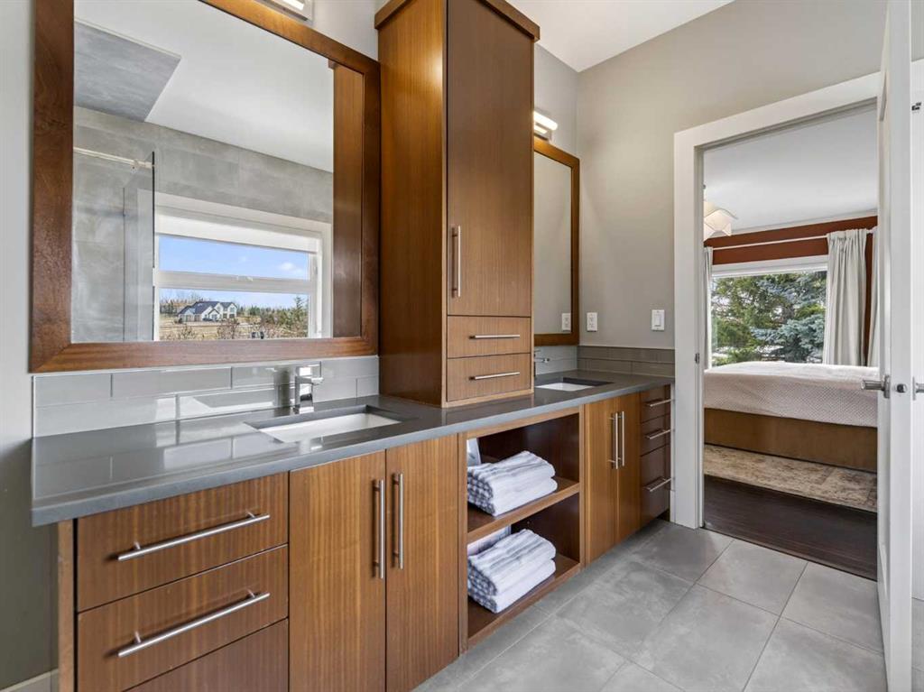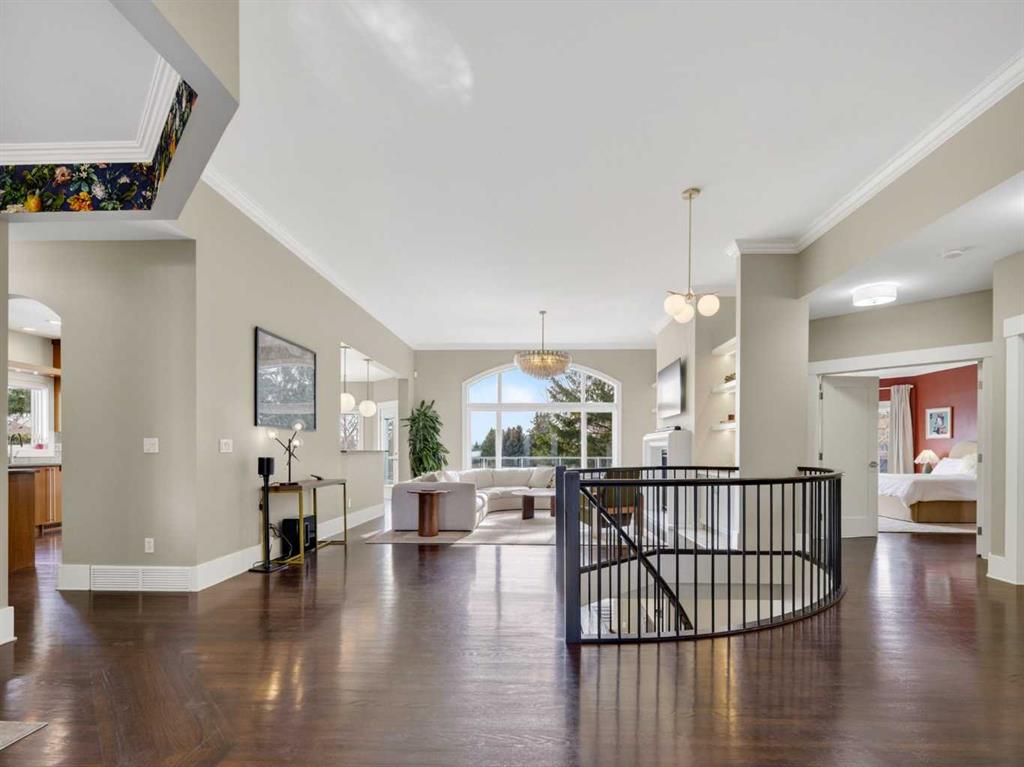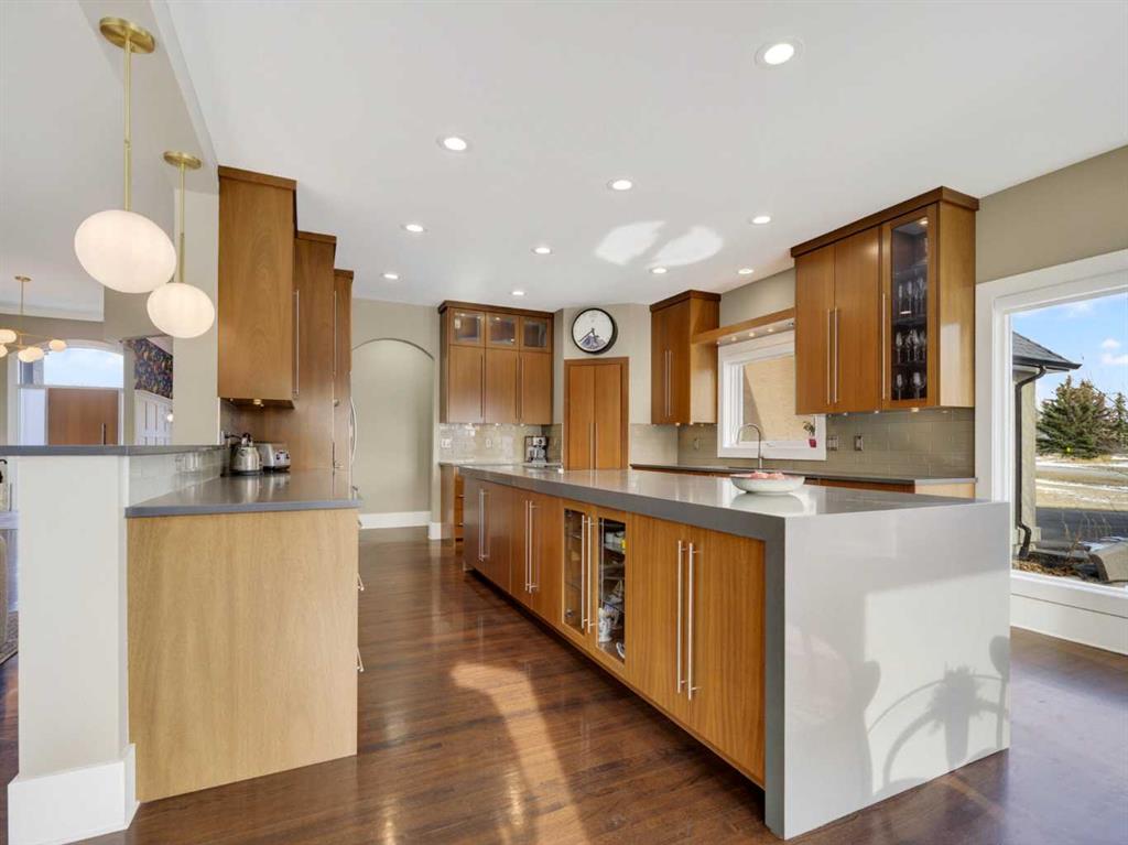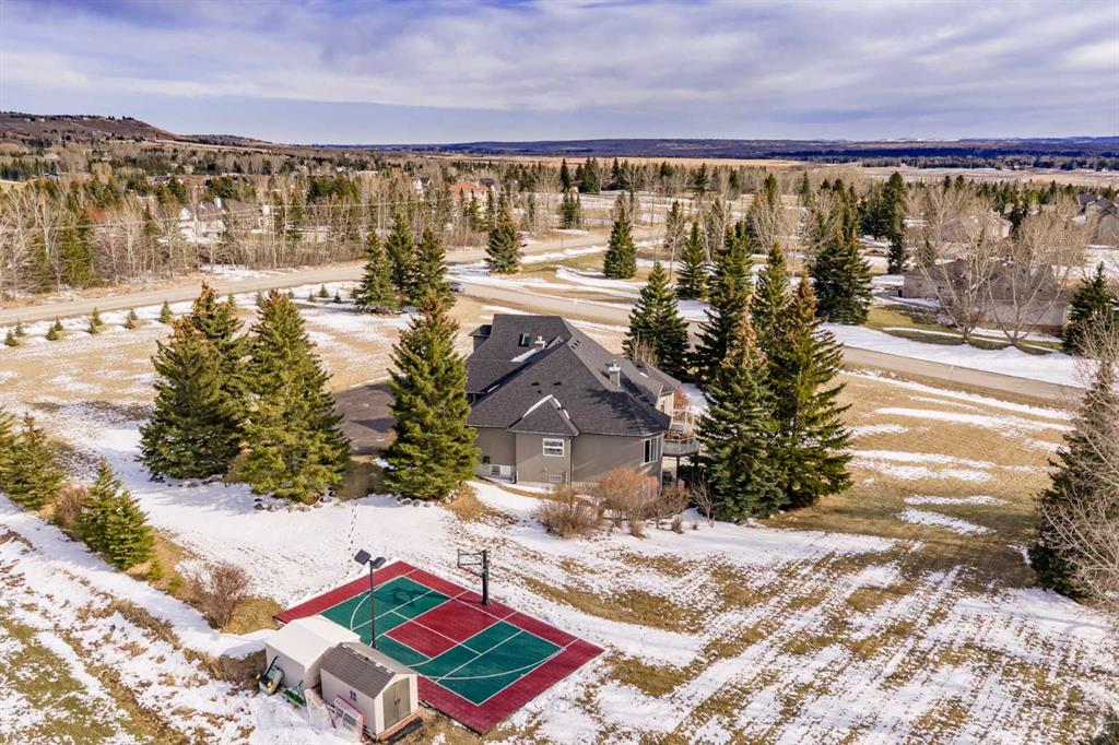 Introducing 3 Spring Meadows Lane, perfectly positioned on two acres in Springbank. This beautifully appointed home with over 4800 sq/ft of living space enjoys uninterrupted mountain views, an ever changing backdrop that brings both stillness and perspective to everyday living. Mature landscaping, thoughtfully enhanced with a newly planted screen of trees, creates a sense of privacy that feels both natural and refined. From the moment you step inside, there is a quiet sense of arrival. The entrance draws your eye through the home to expansive windows that frame the landscape beyond, allowing the views to become part of the living experience. Set on a well established street known for its strong sense of community, with school pick up just moments from your door, the setting feels both connected and considered. Originally intended as a forever home, the property has been thoughtfully refined. This is not a renovation for resale, but a careful evolution where quality, craftsmanship, and longevity have guided each decision. An extensive list of upgrades is available. The main floor offers a beautifully balanced layout. A custom designed office with custom cabinetry provides a quiet place to work or read, while the principal living room is both generous and inviting, centred around a reimagined fireplace with a custom cast mantle by DreamCast, a microcement surround, and a Kozy Heat Nordik 48 inch gas fireplace with herringbone detail. Soaring ceilings and expansive windows fill the space with natural light. The kitchen is designed for both everyday living and hosting, anchored by a substantial island with an integrated induction cooktop, solid walnut cabinetry, and generous storage throughout. The primary suite is quietly set apart, with large windows capturing the surrounding landscape, a beautifully updated ensuite, and a generous walk in dressing room. A lofted area offers flexibility for guests, a studio, or additional living space. Practicality has been carefully considered, with an organised mudroom, dedicated dog entry, and direct access to the triple heated garage. A secondary stair leads conveniently to the lower level from the garage. The lower level extends the home beautifully, offering a dedicated gym, private cinema room, and a spacious recreation area with a custom arched walk up bar. Two well proportioned bedrooms and a five piece bathroom complete the space, along with walkout access to a sheltered patio and swim spa. Outdoors, a professionally lit sport court extends the home’s versatility, offering a wonderful setting for both recreation and relaxed evenings. A rare opportunity to enjoy acreage living in an established pocket of South Springbank, where thoughtful design, community, and mountain views come together with ease. Don't miss your opportunity to live in an updated home in Springbank with mountain views.