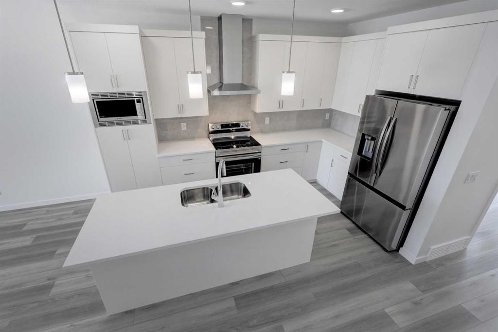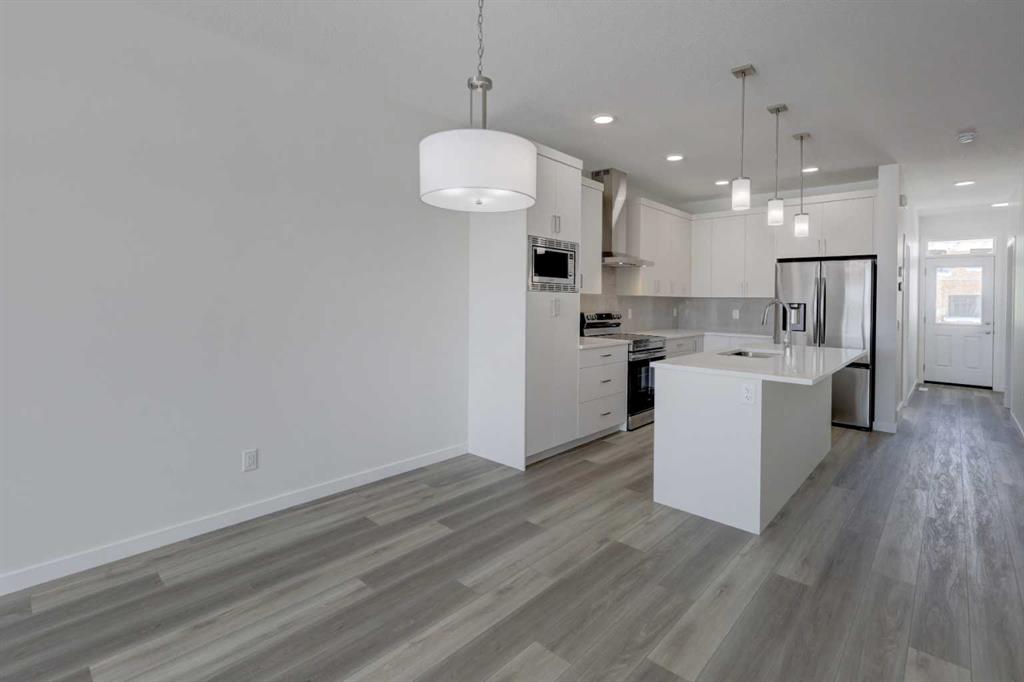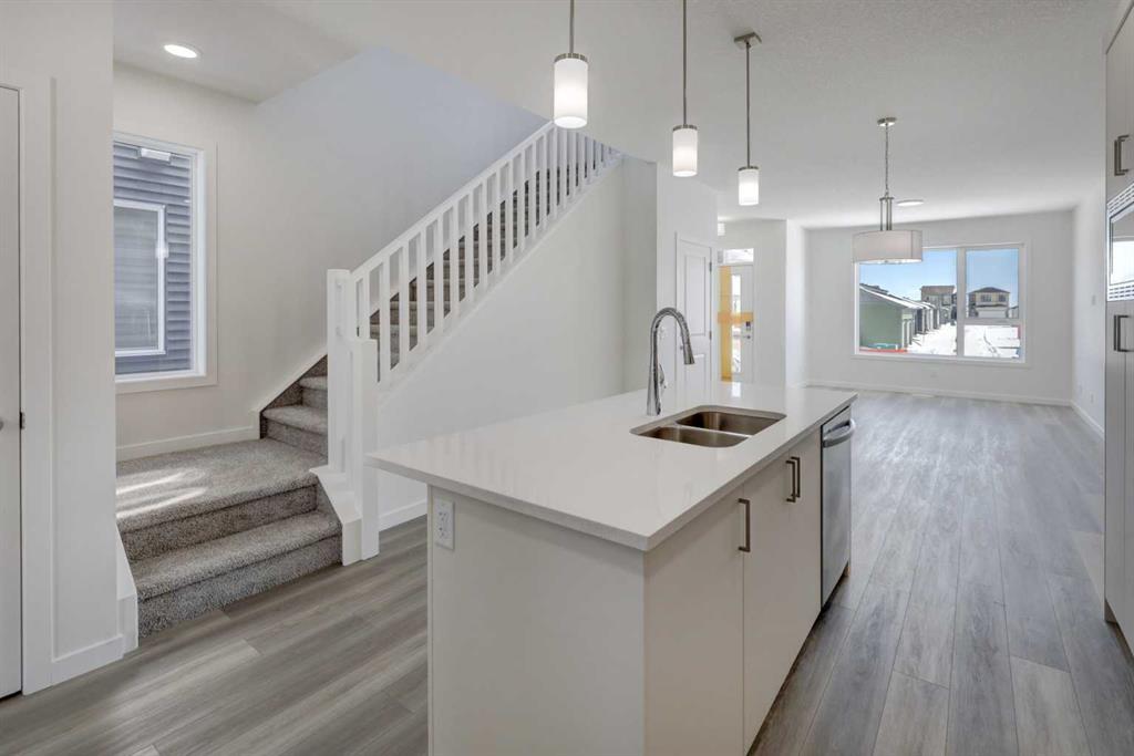 Uncover the charm of Lewisburg where residents will enjoy three neighborhood parks, convenient commercial spaces bringing everyday essentials close to home, and an extensive network of multi-use pathways connecting green spaces, recreational areas, and community amenities. A future town center will bring shopping, dining, and services into the heart of the community, while nearby schools make it an ideal place for families to grow. Just outside your front door, thoughtfully designed pathways lead to parks, natural spaces, and transit connections. With quick access to Stoney Trail and major routes, getting around the city, or out of it, is easy. Introducing the COHEN: an amazing, BRAND NEW attached home by EXCEL HOMES offering 1750 SF above grade with a FULLY DEVELOPED, LEGAL SUITE, W/SEPARATE ENTRANCE, TWO BEDROOMS AND FULL KITCHEN. Step into a life of luxury and convenience with this stunning residence, where every detail has been meticulously crafted for comfort and style. The open floor plan, complemented by neutral designer tones, creates a welcoming atmosphere that is both elegant and comfortable. The chef-quality kitchen stands as the heart of the home, equipped with ceiling-height cabinets, two banks of pot/pan drawers, and upgraded stainless steel appliances, including chimney fan and built-in microwave. The expansive engineered stone countertops, a large island with seating, and a convenient pantry make it a dream kitchen for those who love to cook and entertain. The main floor also uniquely features a 4th bedroom & a 4 pce bathroom. Ascend to the second level where leisure meets luxury in the large central bonus room featuring vaulted ceilings & pot lighting — ideal for movie nights and family gatherings. The primary bedroom is a true retreat, boasting a walk-in closet and a spa-like ensuite with dual sink & stone vanity tops. Additionally, two more generously sized bedrooms provide ample space and easy access to the main bathroom. The convenience continues with a laundry room strategically located on the same floor. The possibilities extend into the FULLY DEVELOPED basement - SEPERATE SIDE ENTRY to your LEGAL TWO BEDROOM BASEMENT SUITE. Your suite is built to upstairs standards & offers TWO bedrooms, 4 pce bathroom, full kitchen w/lots of storage cabinets, SS appliances, PRIVATE LAUNDRY, vinyl plank flooring. This is a certified BUILT GREEN HOME WITH GOLD RATING. This home comes with all the built green features that makes Excel Homes a wise choice. Front yard sod is included.