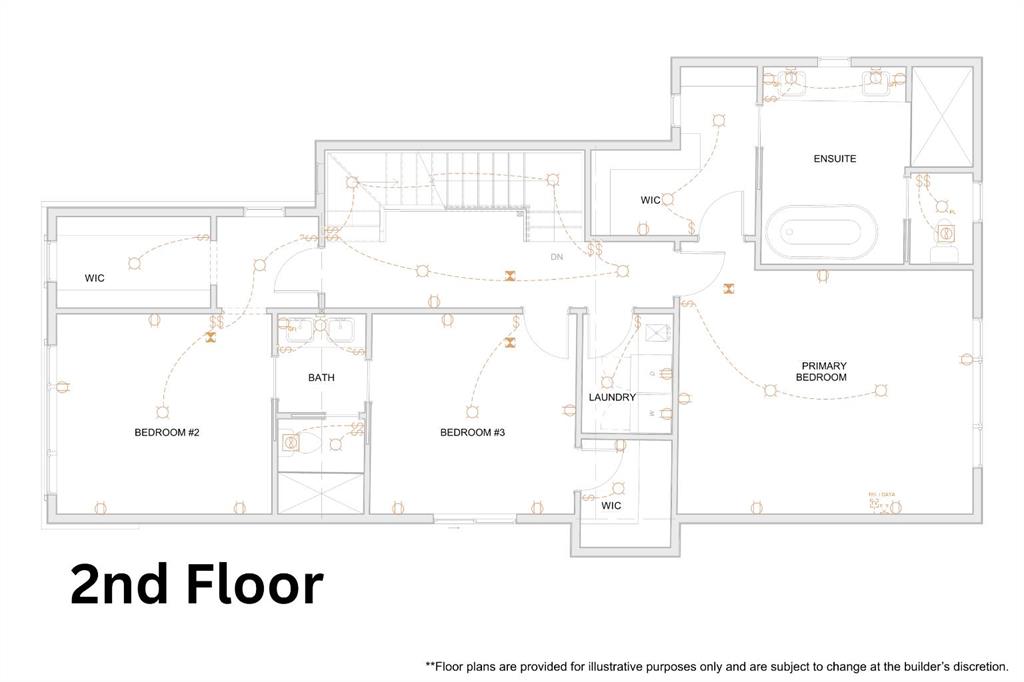 Upstairs, the second level offers two spacious bedrooms, both with walk-in closets and connected by a Jack-and-Jill bathroom, along with a full laundry room with walk-in storage. The primary retreat is designed as a private escape, featuring a large walk-in closet, double vanity, and a statement soaker tub in the spa-inspired ensuite.