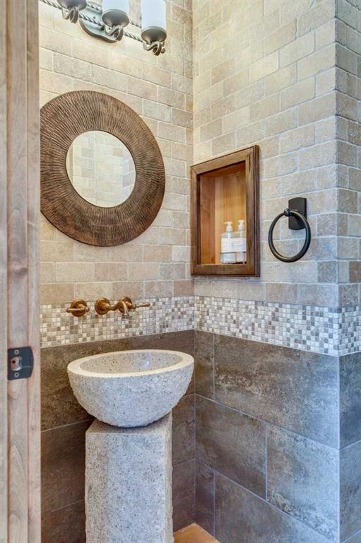 25 minutes from southwest Calgary city limits, this timber and stone masterpiece is set against the backdrop of the majestic Rockies, embraced by rolling ranch lands that offer endless natural beauty. Nestled between Brown-Lowery Provincial Park and Kananaskis Forest Reserve the home promises a lifestyle rooted in nature and refined living . The nearby charming towns of Millarville, Black Diamond and Bragg Creek host festivals and markets year round along with access to esteemed schools, shopping, entertainment and medical facilities. This 2011 SAM Award–Best New Custom Home-winning residence captivates with its stone fireplaces, exposed timber beams, tall French doors under vaulted ceilings. By design, mornings begin in a bright courtyard featuring a serene fountain, while evenings are reserved for unwinding on a west-facing deck that showcases sunsets and mountain vistas “as far as the eye can see.” With amenities like a built-in gas BBQ, an outdoor stone fireplace, and overhead heaters beneath the shelter of a timber truss roof, every season is met with inviting warmth and style. The home’s seamless flow unites a one and half story main floor, a walkout lower level, and an upper loft that can be converted to feature a fourth bedroom, ensuite bath and private den—totaling 6,561 square feet of thoughtfully planned living space. The chef’s kitchen is a dream come true, featuring custom-built alder cabinets, an Aga vented gas range, an integrated fridge and freezer, and a plumbed coffee maker. This culinary space adjoins rooms that facilitate both formal dining and casual family gatherings, ensuring that every meal becomes a shared experience. True to its natural spirit, the home is built almost entirely of organic materials. A copper-seamed Coppola roof crowns the exterior alongside natural stone and brick facades, while reclaimed hardwoods and honed stone floors lend an artisanal touch throughout. Metal-clad fir windows and oversized French doors open onto wood-planked decks that embrace the walkout patio and extend to the hot tub area—perfect for relaxing or entertaining in style. A Scandinavian-inspired spa, a three-piece bath, and a dedicated gym further round out a suite of wellness-oriented features. Inside, vaulted ceilings accented by fir timber beam trusses create a grand yet inviting atmosphere. Stone and granite countertops provide a luxurious touch in every room. Additional highlights include a home theater, wine cellar, billiards room, and a striking Tulikivi fireplace that anchors memorable family moments. An ensuite bedroom on the lower level ensures comfort and privacy for guests or extended family. Modern living integrated with timeless design. State-of-the-art equipment all working together to keep the air, water, and environment healthy, clean, and comfortable year-round. This move-in ready estate awaits your private viewing.