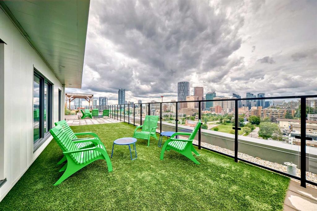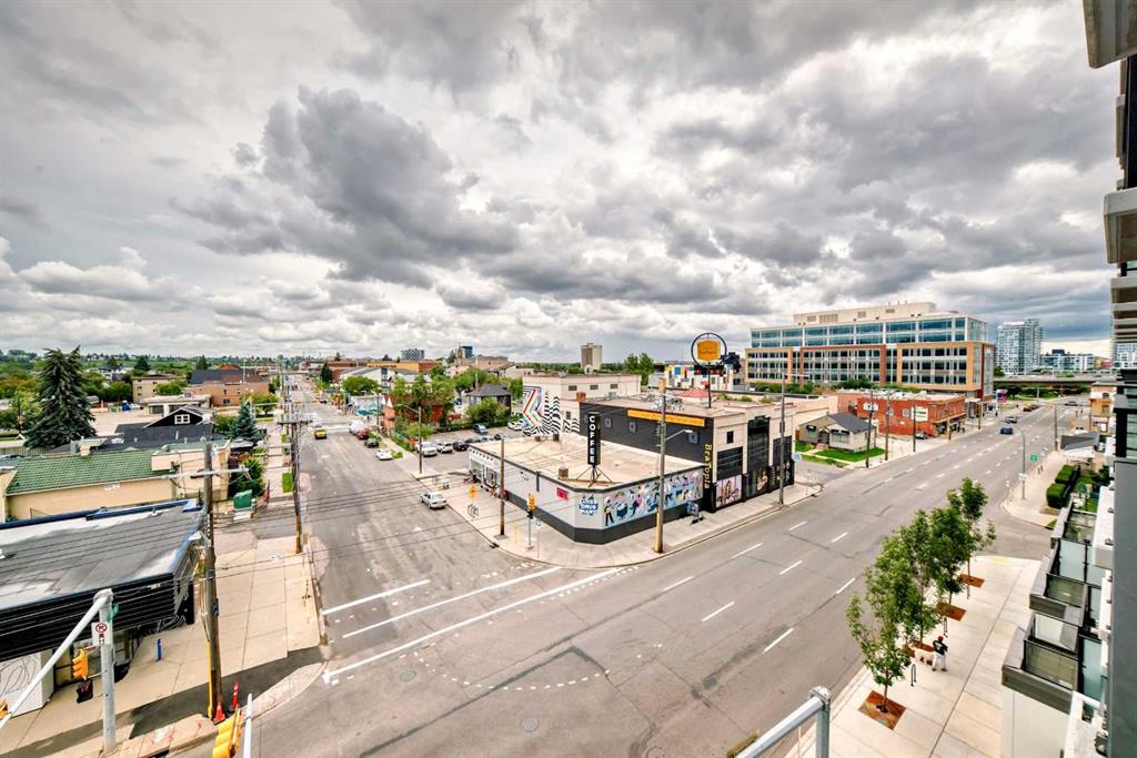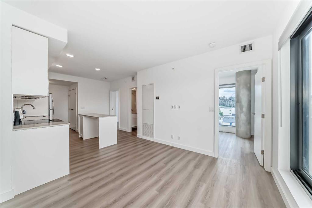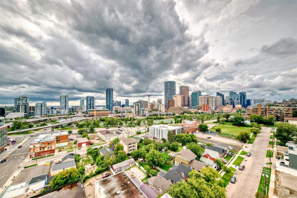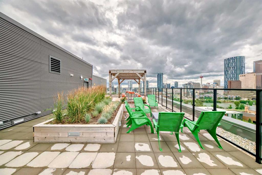 CORNER UNIT 12TH FLOOR. GREAT VIEW! Welcome to Era by Minto Communities—modern, elevated living in this well-designed 2 bedroom, 1 bathroom unit in the heart of Bridgeland. Perched on the 12th floor, this home offers unobstructed views and abundant natural light, all within one of Calgary’s most walkable neighborhoods (Walk Score of 98). You’re just steps from Bridgeland Market, Shiki Menya, Luke’s, local cafés, parks, playgrounds, and the Bow River pathway system. The Bridgeland/Memorial LRT station is nearby for quick access to downtown and the East Village. Inside, the open-concept layout seamlessly connects the kitchen and living area to a private balcony—perfect for morning coffee or evening relaxation with a view. The kitchen features a large eat-in island, quartz countertops, stainless steel appliances, and full-height cabinetry. Durable vinyl plank flooring, air conditioning, in-suite laundry, a titled underground parking stall, and a titled storage locker add everyday comfort and convenience. Built to LEED Gold standards, Era emphasizes energy efficiency and smart living, offering features like video entry, facial recognition access, secure package lockers, community messaging, and virtual concierge services. Residents also enjoy a rooftop patio with firepits and BBQs, offering stunning downtown views, along with an indoor lounge and workspace for year-round use. This well-appointed unit in a professionally managed building is an excellent opportunity to own in one of Calgary’s most desirable inner-city communities. Book your showing today. Photos are from a similar unit with an identical floorplan and may not reflect the exact finishes or views of Unit 1202.
