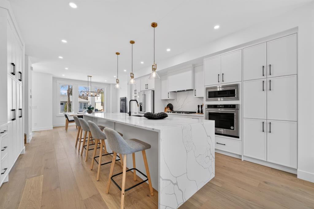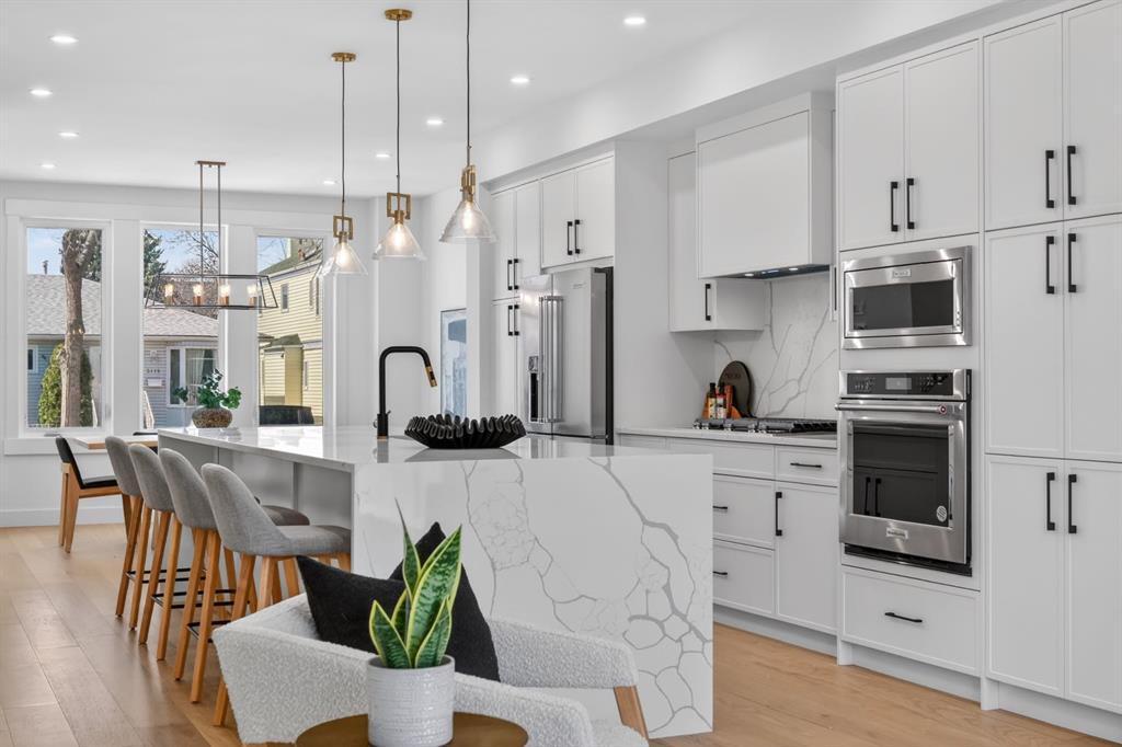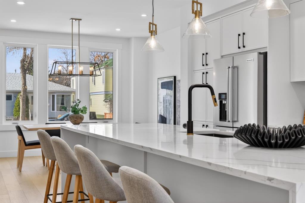 This move-in ready semi-detached home in Mount Pleasant delivers that rare mix of thoughtful design, modern luxury, and everyday comfort. Situated on one of Mount Pleasant’s most beautiful, quiet, tree-lined streets, this immaculate 3-storey offers a total of 3,466 Sq.ft of living space, including a basement suite with a separate entrance ! Wide-plank hardwood, custom built-ins, and oversized windows set the tone. The open concept floor-plan throughout the main floor makes the home feel both expansive and incredibly functional. The living room sits at the back with a gorgeous feature fireplace and built-in shelving that brings a clean, designer feel to the space offering double sliding glass doors to the back patio which fill the space with natural light and make indoor & outdoor entertaining a breeze! The dining area sits comfortably at the front featuring large windows open to mature street trees, giving the room a soft, natural backdrop. The kitchen is where everything really comes together. Full-height custom cabinetry, quartz counters, designer lighting, and an upgraded appliance package make the room feel elevated yet approachable. A massive island with seating keeps the space social. The Mudroom includes custom storage and easy access to the backyard and garage, keeping daily life organized. A stylish 2-piece bath completes the main floor. Upstairs, the Bonus Room feels like a true retreat, bright and spacious with room for a full furniture layout. On each side, 2 bedrooms, both with their own en-suite bathrooms, walk-in closets with custom shelves & large windows. A full wet laundry room on this level adds convenience and extra storage. The 3rd floor is entirely dedicated to a massive primary bedroom with access to your west-facing balcony. 5pc ensuite is straight out of a spa! It’s got a soaker tub, two vanities, heated floors, and an oversized glass rainfall shower. The walk-in closet is massive! It’s got tons of drawers and custom shelves, plus a full-body mirror so you can get ready in style. The lower level offers even more flexibility with an extended legal basement suite. With a full kitchen, large family room, 1 bedroom +1-3pc bathroom, laundry & plenty of storage. This level opens the door to multigenerational living, long-term guests, or additional rental income. The layout is practical, the rooms are well-sized, and the finishes are clean & modern. The location ties it all together. You’re in the heart of a walkable, established community surrounded by tree-lined streets. Confederation Park, SAIT, and the downtown core are all within easy reach. Quick access to 4th Street, 16th Ave, Centre St, & major transit routes makes commuting simple, while nearby cafes, local restaurants, playgrounds, and green spaces create that everyday convenience everyone’s looking for. This truly is one of a kind. Don’t miss out on this exceptional Buy, call today for your private tour!