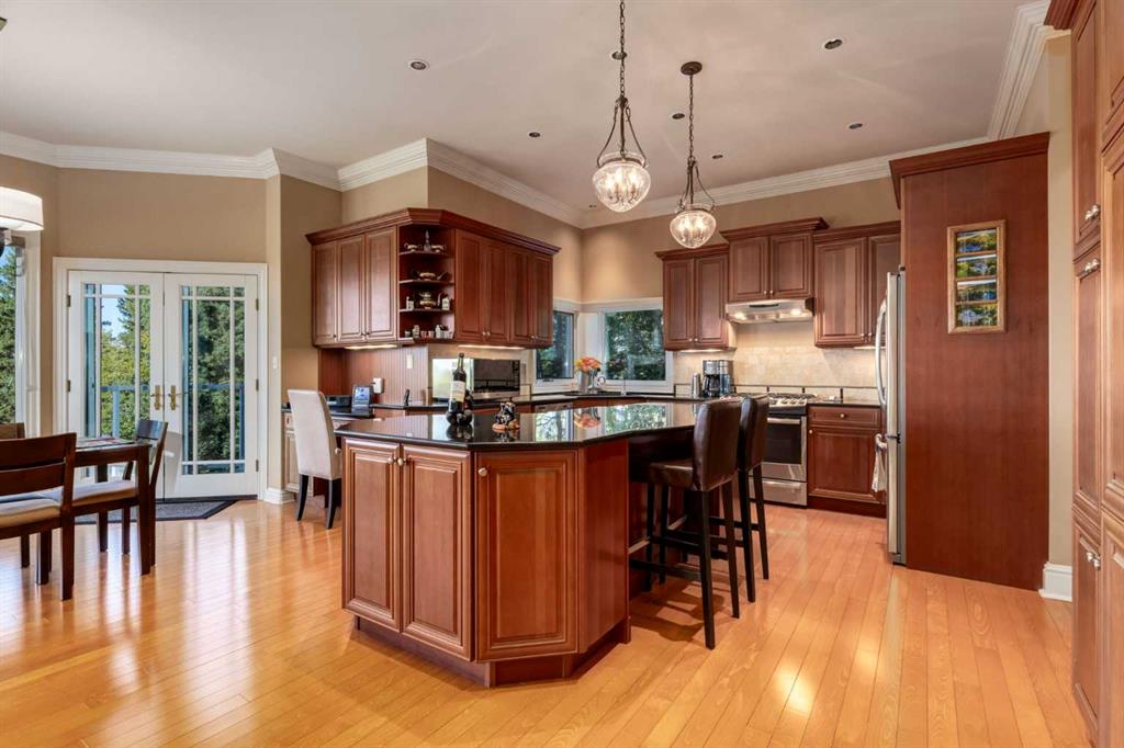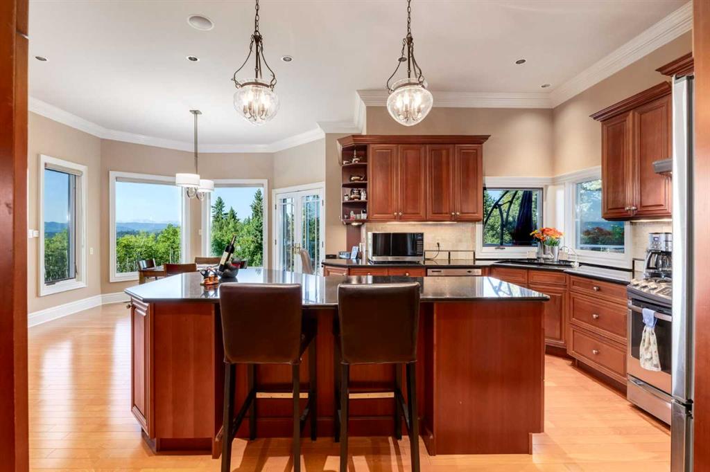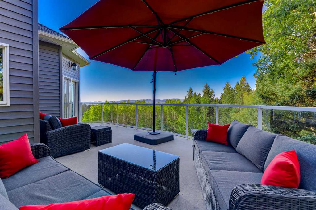 We’re extremely pleased to present one of the most impeccably maintained luxury acreages to hit the market—an extraordinary 9.86-acre estate blending pristine natural beauty with refined, executive living. Surrounded by mature trees and picturesque horse meadows, this stunning two-storey home is perfectly positioned to capture the Northern Lights and sweeping, unobstructed views of the Rocky Mountains and the valley stretching toward John Ware Ridge. Designed for both elevated family living and sophisticated entertaining, the home offers 5 spacious bedrooms (4 up, 1 down) and an exceptional layout. The main floor features gracious principal rooms, a private office, and expansive windows that flood the space with natural light while framing the breathtaking scenery. The kitchen is a gourmet chef’s dream, with pristine cabinetry, granite counters, stainless steel appliances and an open concept that was designed with the mountain views at the top of mind. The wood burning fireplace and the country aesthetics suit the property perfectly. Upstairs, the family quarters provide comfort and privacy, including a big primary bedroom; showcasing the view and west sunsets, along with a walk-in closet and 5-piece ensuite. While the fully developed walkout basement is an entertainer’s dream—complete with a large family/games room, bedroom, and a dedicated home theatre room to design your ultimate movie-night experience. This residence showcases true pride of ownership, with meticulous attention to detail and condition that is simply unmatched. Highlights include t 30-year fibreglass shingles (original) with new ridge caps (installed 2023), dual central A/C (2019), and a high-efficiency combination boiler system (2021) delivering on-demand hot water and in-floor heating in basement and attached garage. 2-Lennox furnaces with electronic air filtration further enhance comfort and air quality and an electronic gate. Outdoors, the property is equally impressive. Enjoy the expansive upper deck, walkout patio, and composite wraparound porch —perfect for taking in the panoramic views from every level. A beautifully terraced firepit area finished in unistone complements the turnaround parking pad, interlocking stone driveway and landscaped garden walls. The grounds are meticulously maintained and cleared of deadfall, with forest pathways, horse pasture, a charming bridge over a seasonal run-off stream, and endless usable space, including a tee-box and chipping green too keep that short game in order. Additional features include an oversized-heated double attached garage (32'2" x 24'6"), a single heated detached utility garage with work benches and 100amp panel, trailer parking, under-deck storage, and a separate shed with lights—offering exceptional functionality for acreage living. This is a rare opportunity to own a truly immaculate, turnkey estate where luxury, privacy, and nature converge. Properties of this caliber are seldom offered—experience acreage living at its absolute finest.