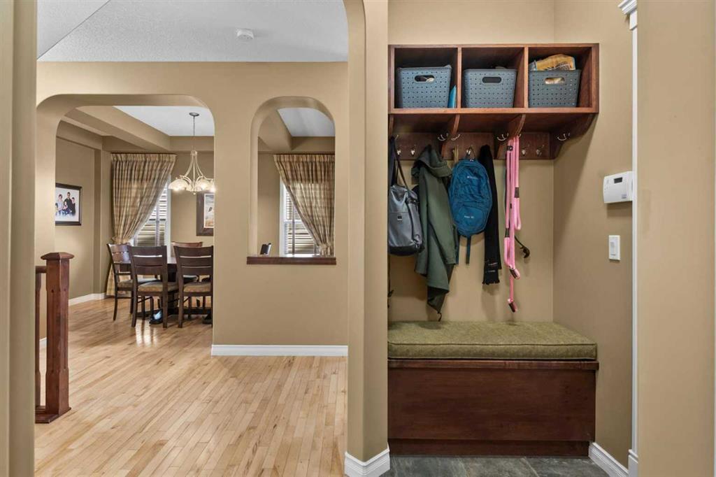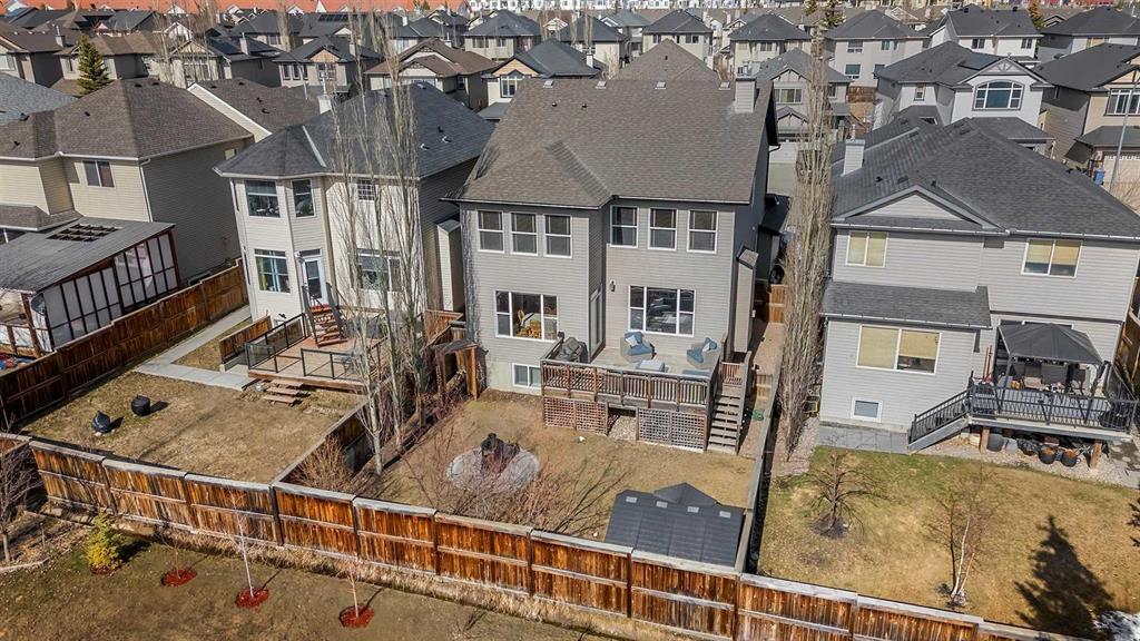 Finally, an exceptional opportunity to own a spacious and versatile home in one of Calgary's most sought-after northwest communities. Royal Oak is complete with walking paths that connect to parks where little ones learn to ride bikes, top-rated schools are just minutes away on foot, and the Shane Homes YMCA at Rocky Ridge gives everyone from toddlers to grandparents a place to swim, skate, and stay active all year long. Quick Stoney Trail access means you can be anywhere in the city in minutes, yet coming home to this quiet, tree-lined street always feels like leaving the city behind. The Rocky Mountains sit on the horizon as a daily reminder that an extraordinary quality of life is simply part of living here. Step inside and you immediately feel the scale this home offers with over 3,500 square feet of developed living space. A formal dining room with coffered ceiling and chandelier is where milestones will be celebrated, and holiday traditions will take root for years to come. The open-concept kitchen flows naturally into a bright eating nook and a comfortable family room anchored by a gas fireplace, creating the kind of connected, inclusive space where parents can cook while keeping an eye on the kid’s doing homework at the island. Breakfast bar seating, a glass-panel pantry, and stainless appliances make this kitchen genuinely functional for busy weekday mornings and relaxed weekend cooking alike. Sliding doors from the nook open directly onto the rear deck, making summer barbecues & outdoor dinners an effortless extension of daily life. A dedicated main floor office means working from home does not have to compete with living space, and the thoughtfully designed mudroom with built-in bench, cubbies, and coat hooks is the kind of detail that keeps a busy household running smoothly every single day. Upstairs, 5 bedrooms mean no one must share unless they want to. The primary bedroom is a genuine retreat, connecting to an ensuite with double vanity, deep soaker tub, glass-door shower, and a walk-in closet. The 4 additional bedrooms each offer their own character and space, giving kids and teenagers room to study, create, and truly make their own. A double-sink main bathroom keeps the morning rush manageable, and the upper-level laundry room with front-load appliances is one of those practical touches that households with children quickly wonder how they ever lived without. The fully developed lower level adds significant room and features a large open recreation room perfect for movie nights, playdates, or a teen hangout, a dedicated home gym area, a fifth bedroom for guests or extended family, and a full bathroom. Outside, the fully fenced backyard gives children a safe place to play freely while adults relax on the generous deck with outdoor seating and a gas BBQ. The circular paver patio with a chiminea creates a natural gathering spot for weekend evenings spent making memories around the fire. A storage shed keeps bikes and seasonal gear neatly tucked away.