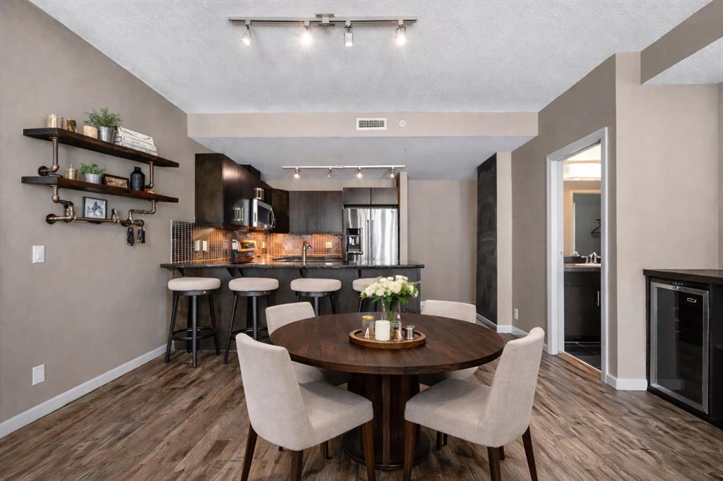 Your urban retreat at VETRO - where value meets presence and lifestyle meets location. Step inside this nearly 1,000 sqft space and feel the tone immediately. A moody, masculine kitchen sets the stage - rich espresso cabinetry, granite counters, stainless steel appliances and a breakfast bar island built for connection. Morning coffees, late-night pours and conversations that linger. Just off to the side, a built-in bar niche with beverage cooler quietly elevates the experience. The layout is smart and intentional. A true 2-bedroom, 2-bathroom split design that gives space where it matters. Whether it’s guests, a roommate or a work-from-home setup - this floor plan adapts. The primary retreat comfortably fits a king, with a walk-through closet leading into your private ensuite. The open-concept living and dining areas flow effortlessly, creating a space that feels larger than it is - designed for both quiet nights in and hosting when it counts. Function meets ease with in-suite laundry, heated underground parking and a dedicated storage locker. And then there’s the building itself. VETRO delivers with a full lineup of amenities: fitness centre, hot tub, games area and a private theatre room - everything you need without ever leaving home. But the real story? It's the location. Steps to the new arena district. Moments to Stampede Park and the BMO Centre. Surrounded by restaurants, pubs, cocktail bars and everyday essentials. A quick walk to the downtown core. Victoria Park C-Train Station right there when you need it. This isn’t just convenience - it’s access, energy and movement. A sharp, lifestyle-driven condo in one of Calgary’s most connected pockets - offering undeniable value in a market that doesn’t wait.