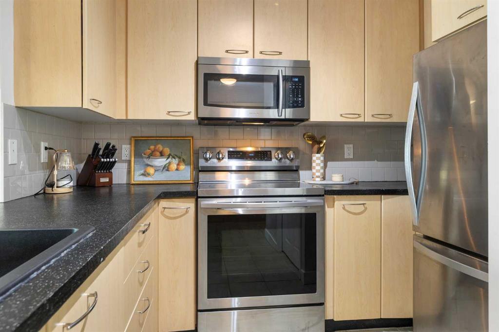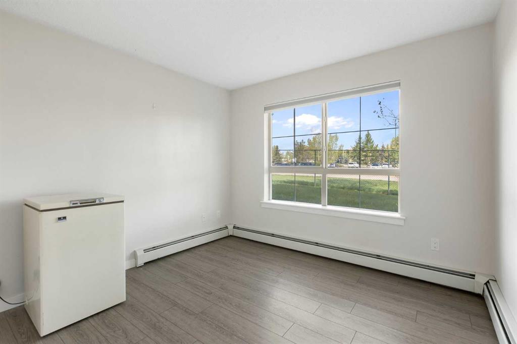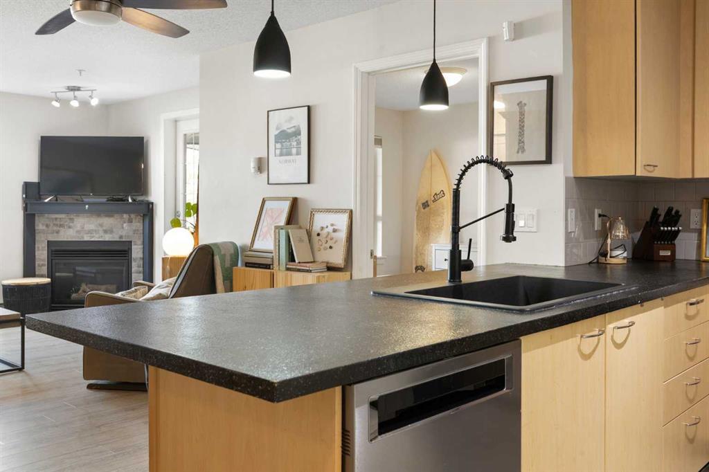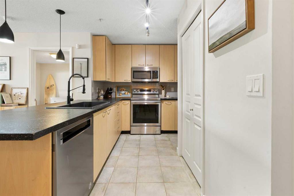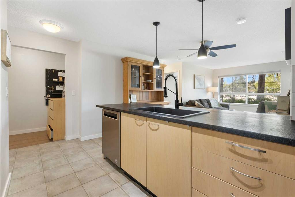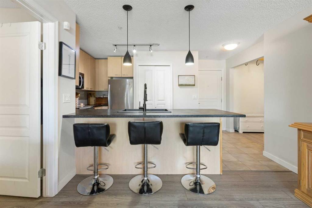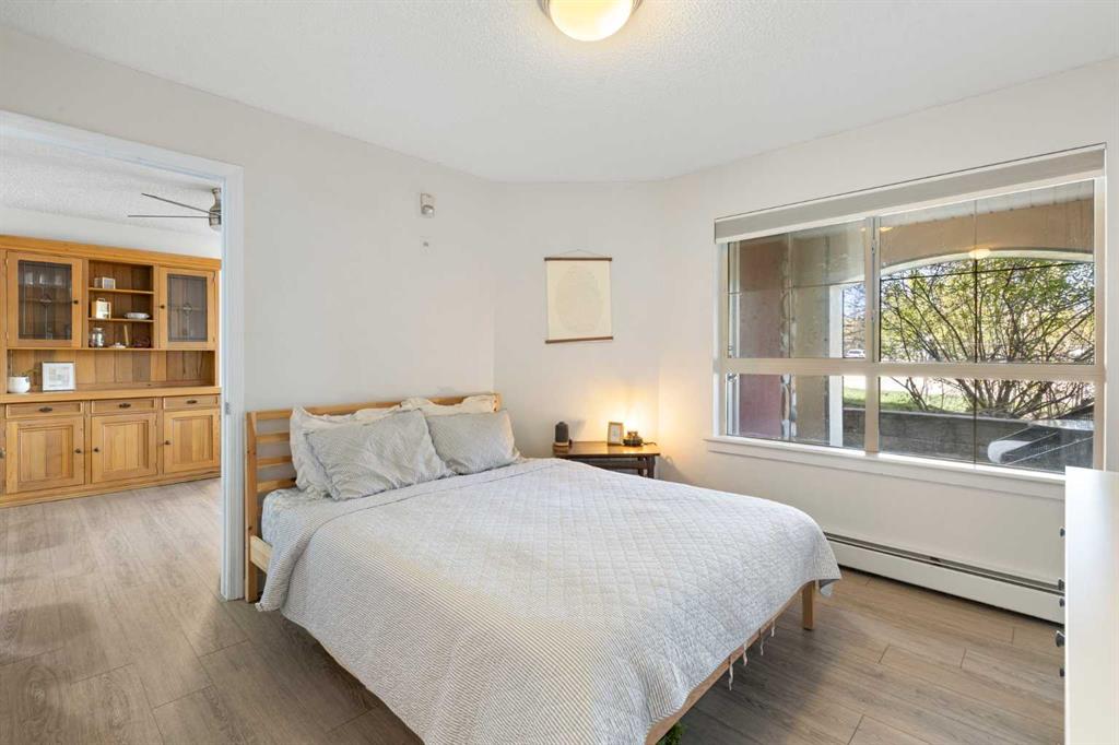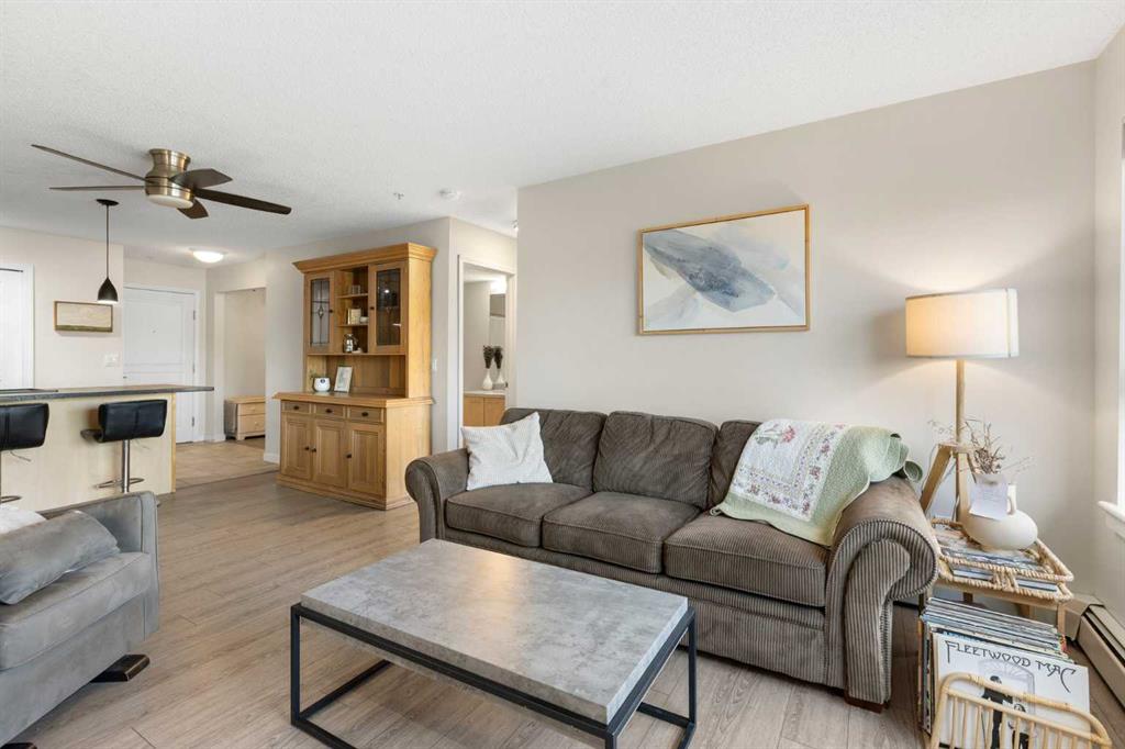 WELCOME HOME – amenities galore! This spacious and beautifully updated main floor unit features 2 bedrooms and 2 bathrooms, offering an ideal layout with bedrooms split by a spacious living and dining area. The unit opens up with a large front entryway, open-concept living, and stylish finishes throughout including newer vinyl plank flooring and a fresh modern colour palette. The well-appointed kitchen features upgraded stainless steel appliances, pantry, and plenty of cabinetry. The bright living room is highlighted by large windows and a cozy corner gas fireplace and opens onto a generous covered patio that backs onto green space—ideal for relaxing or for owners looking for easy outdoor access. The large primary bedroom includes a 4-piece ensuite, a walkthrough closet & a window overlooking the patio. A second bedroom sits across from a 3 piece bath, perfect for guests or roommates. There's also flexible den space—ideal for a home office or extra storage. Additional features include 2 titled underground parking stalls, in-suite laundry, and access to premium building amenities such as a fitness centre, party room, bike storage, visitor parking, and a beautiful private courtyard. Ideally located just steps from Mount Royal University, with easy access to Stoney Trail, Crowchild Trail, Glenmore Trail, downtown, and within walking distance to transit, coffee shops, restaurants, and shopping—this is a fantastic opportunity for first-time buyers, students, investors, or those looking to downsize without compromising lifestyle. Get in touch today and snag one of the best units in the building!