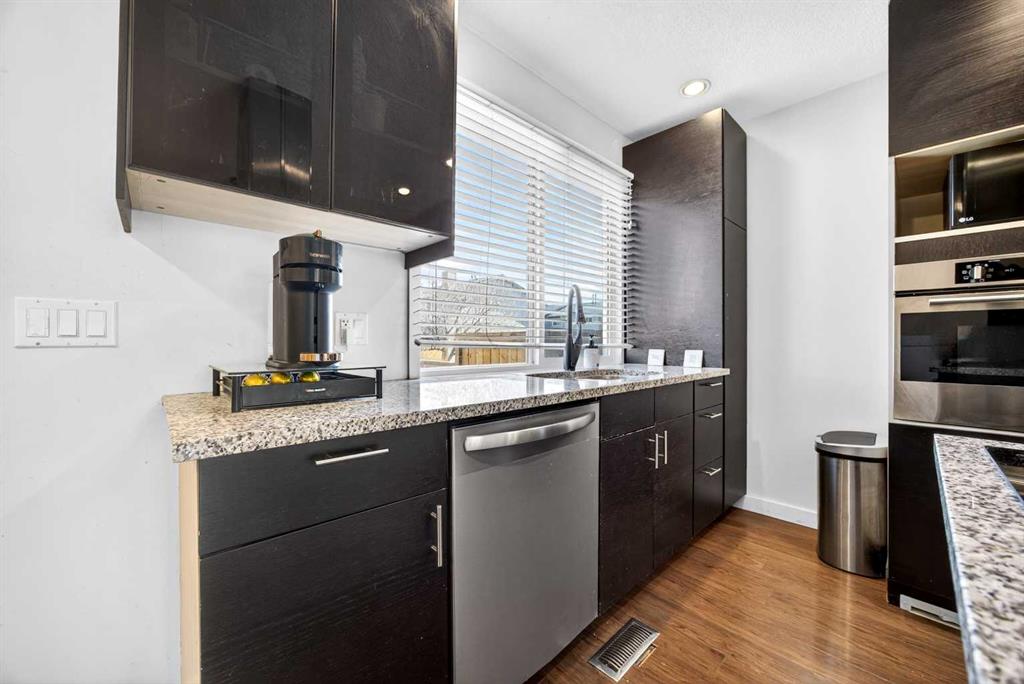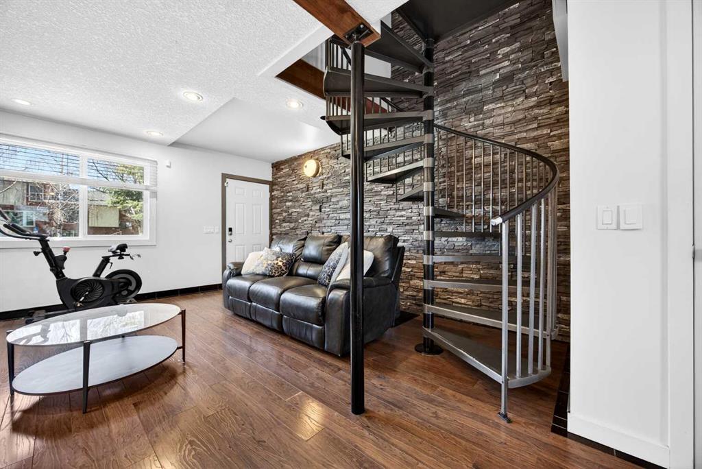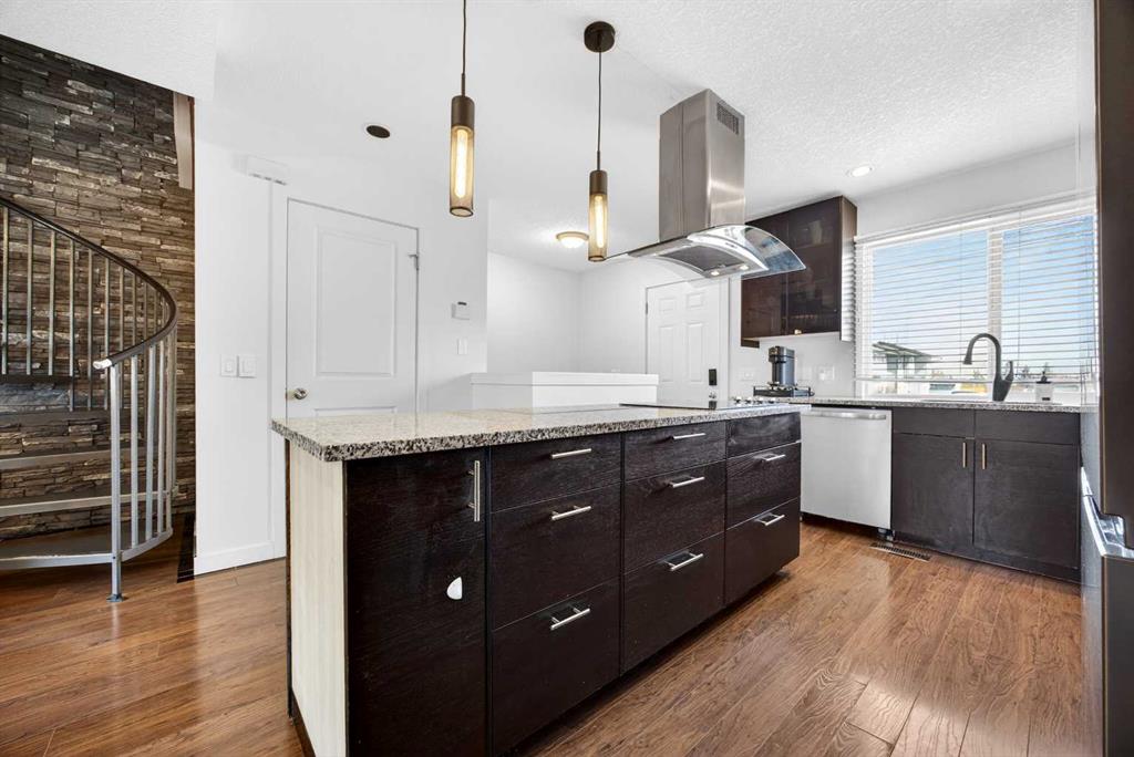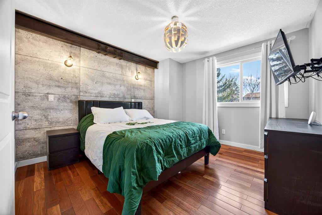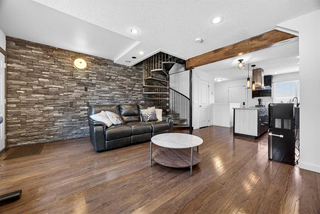 Welcome to this bright and beautifully maintained end-unit townhome in the heart of Temple. With 3 bedrooms, 2.5 bathrooms, and a fully developed basement, this home is ideal for families, first-time buyers, or investors alike. Step inside to a sun-filled, open-concept main floor featuring gleaming hardwood floors and an abundance of natural light. The kitchen is both modern and functional, showcasing floor-to-ceiling cabinetry, granite countertops, and a spacious island with built-in cooktop and upgraded hood fan—perfect for entertaining. A built-in oven, stainless steel appliances, and a French door fridge complete the space, all seamlessly flowing into the inviting living room. A convenient 2-piece bathroom rounds out the main level. A striking spiral staircase adds architectural charm and leads you upstairs to three well-sized bedrooms and a full 4-piece bathroom. The primary bedroom offers a walk-in closet. The fully developed basement extends your living space with a newer 4-piece bathroom—ideal for guests, a home office, or recreation area. Enjoy your east-facing, fenced backyard with morning sun—perfect for your coffee. Additional features include air conditioning, an assigned parking stall, and the added natural light of an end unit. Located within walking distance to St. Thomas More School, and just minutes from shopping, restaurants, and Stoney Trail, this home offers unbeatable convenience for commuters and families alike. Call your favourite realtor today to book a private showing.