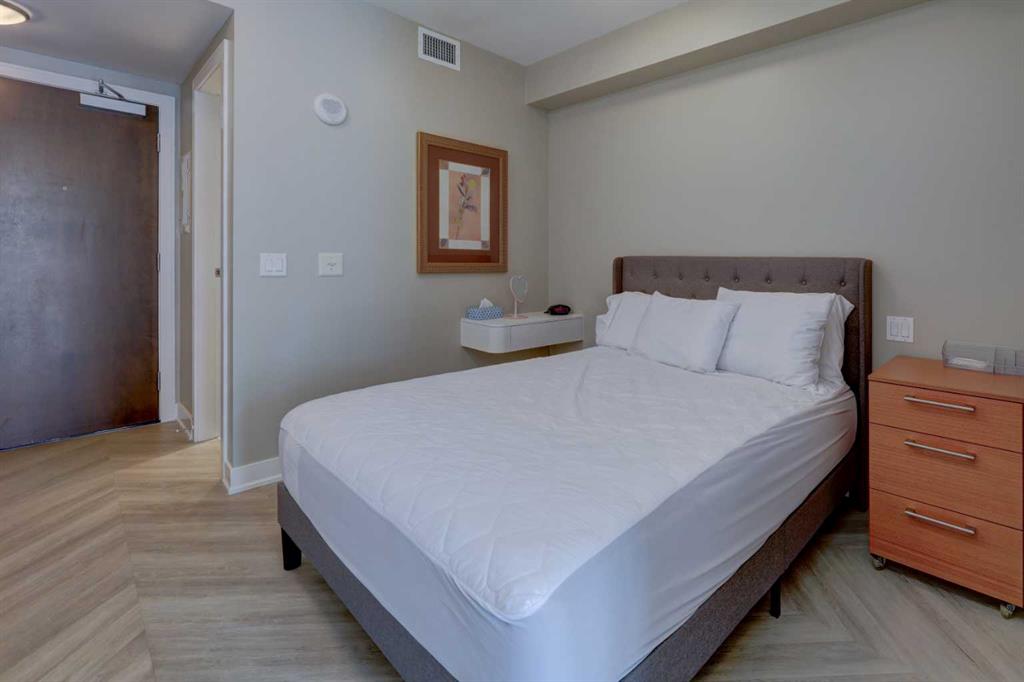 Welcome to this WEST FACING, 480 sq.ft, 1 Bedroom, 1 Bath condo situated in Luxurious Waterfront Tower 2. The size is misleading…very useful space w/ 9' Ceilings + floor to ceiling Low E windows makes it bigger than it is. NEW LVP FLOORS throughout! Functional Chef Inspired kitchen features undermount sinks, full height mosaic backsplash, under-cabinet lighting, stone countertops & top of the line S/S appliances (Panasonic under-counter microwave, wood paneled Sub-Zero fridge w/ lower freezer, new dishwasher, gas cooktop & electric wall oven). Double Closets for bedroom, luxurious bathroom with marble counter tops, under-mount sinks & large standup shower. Air conditioned for those hot sunny days! Balcony, 1 Assigned underground parking spot and storage unit on same floor as the Unit. Walking Distance to Eau Claire, walking paths, shops, restaurants. All Furniture & Furnishings included, just bring your suitcase. Amenities include: Full Size Gym with Yoga studio, Theatre Room, Jacuzzi Tub, Steam Room, Car Wash, Recreation Room with Fireplace and Washroom, Visitor Parking.