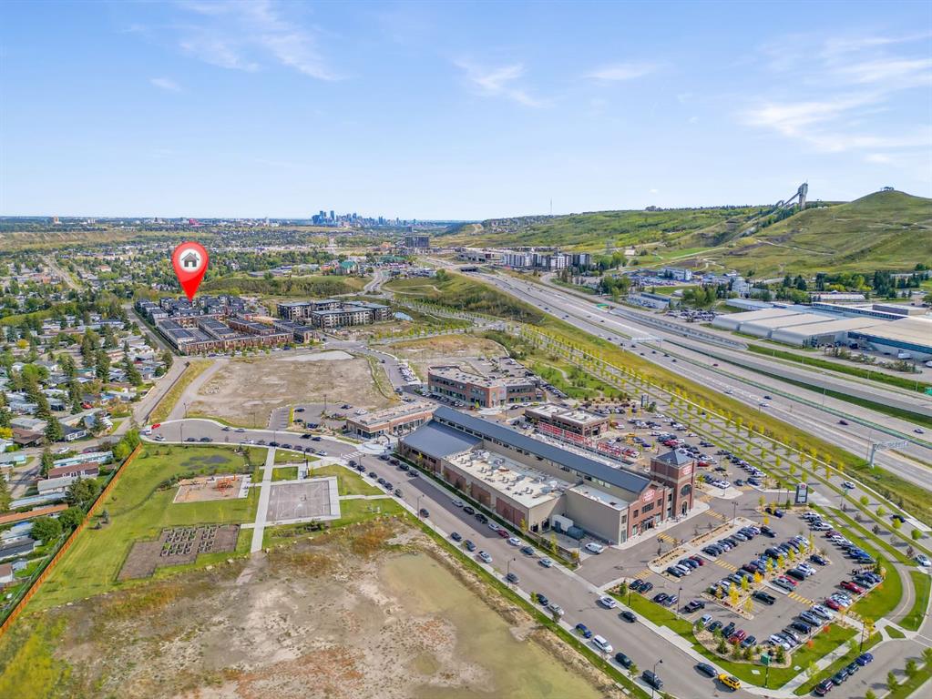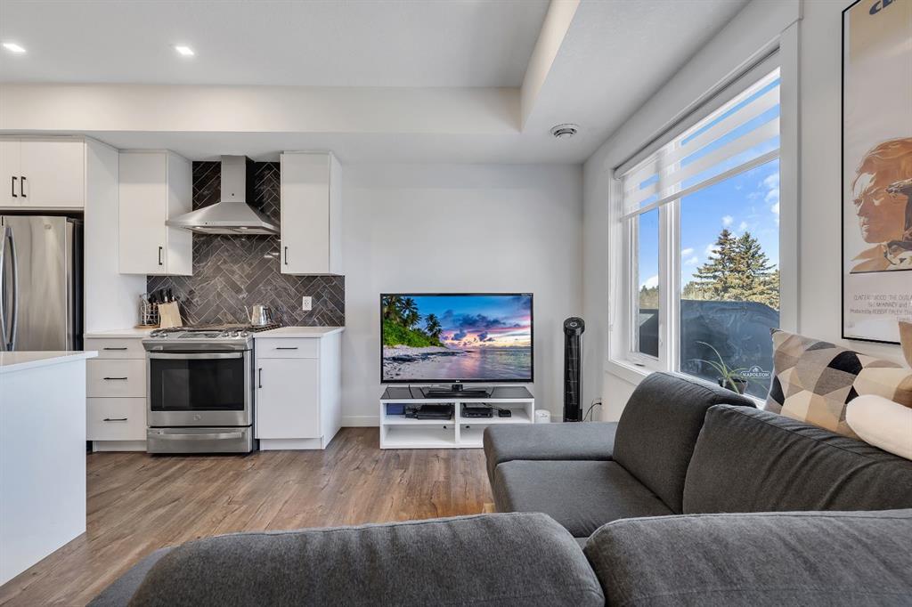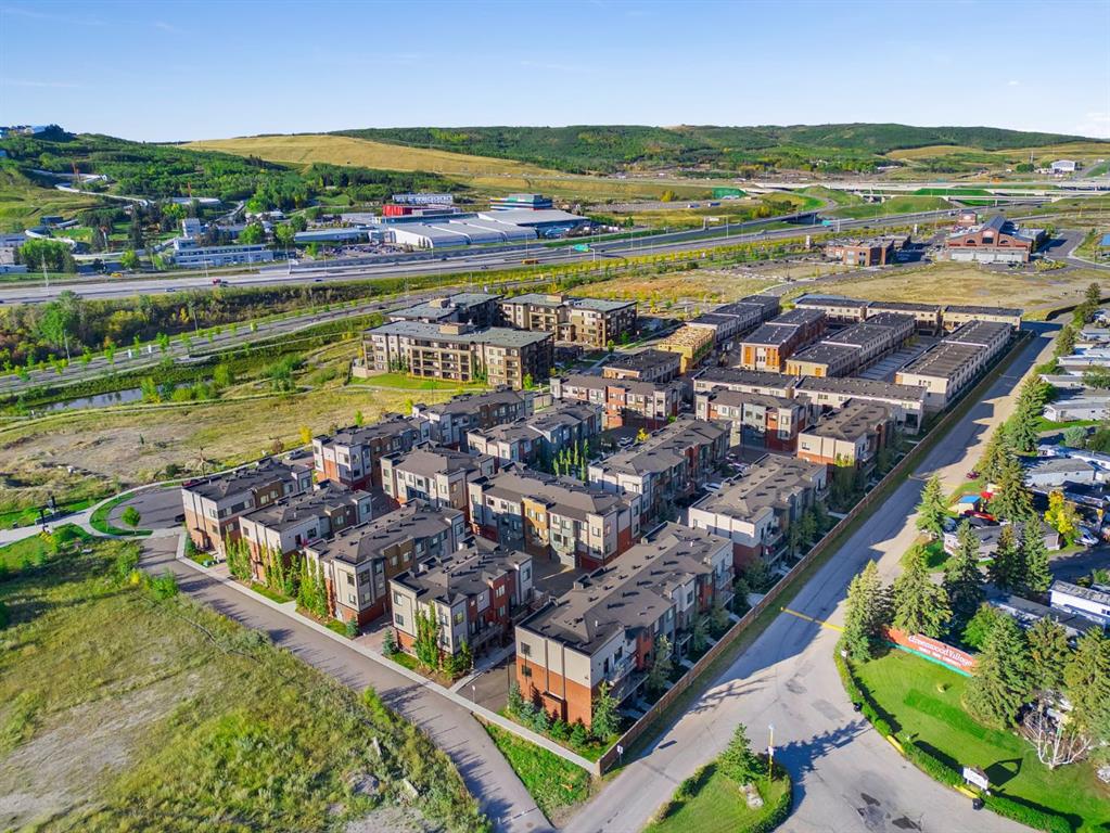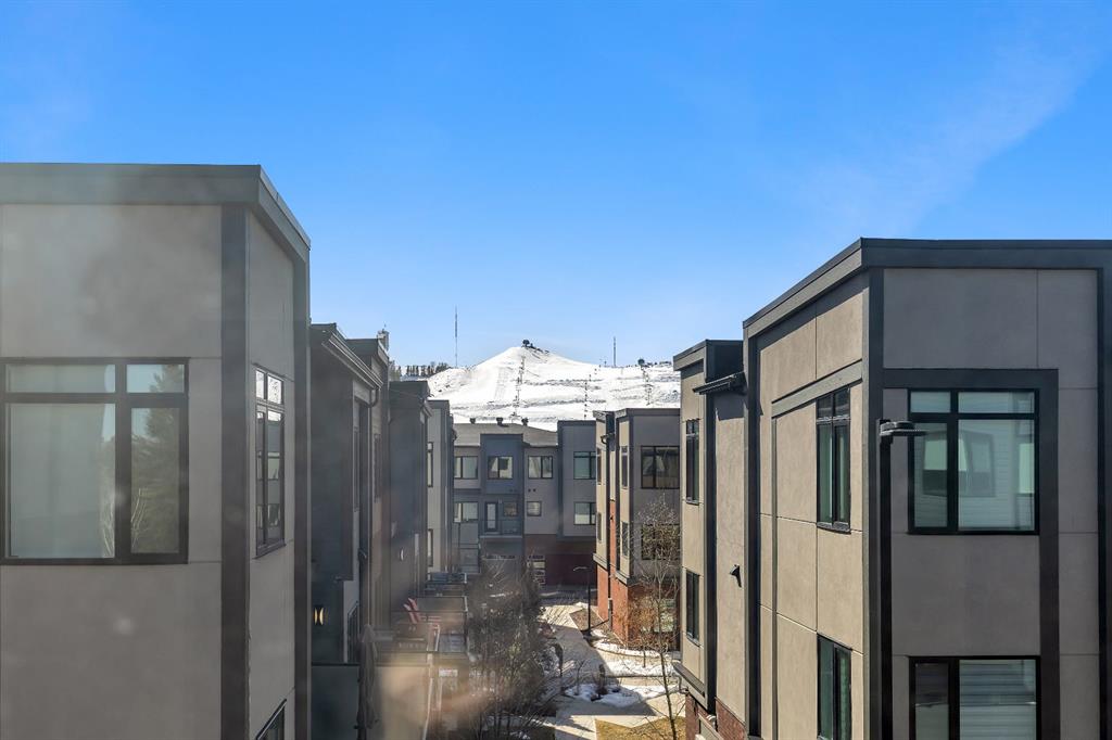 Welcome to 516 Greenbriar Common NW, located in the highly sought after community of Greenwich in Calgary. This top floor, end unit stacked townhome showcases upgraded luxury finishes and a bright, open concept layout designed for modern living. Offering over 1,000 sq ft of living space, this thoughtfully designed home features 2 bedrooms and 2 full bathrooms, along with a private, secure single attached garage and a full builder show home upgrade package. It perfectly blends the privacy of a townhome with the convenience of an apartment style layout. Upon entry, you are greeted by a welcoming foyer with under stair storage, leading to two flights of stairs up to your exclusive top floor retreat. The upper level opens into a spacious living and dining area, complemented by a beautifully upgraded kitchen featuring stainless steel gourmet appliances, a gas stove, chimney hood fan, built in microwave, and a full herringbone tile backsplash. Just off the living room, enjoy a large glass panelled balcony with sweeping views toward Bowness and the surrounding green space, perfect for relaxing or entertaining. With only a limited number of upper level units, just 8 in the community, this home offers a rare opportunity for elevated privacy and scenic outlooks over established greenery and ridge pathways. The single level floor plan includes two well appointed bedrooms and two full bathrooms. The primary suite is enhanced by additional corner windows, providing abundant natural light with east facing and south backing exposure. It also features a spacious closet and a private ensuite with a walk in shower, upgraded tile work, and quartz countertops. Built with quality and attention to detail, this home includes vinyl plank flooring from Divine Flooring’s Voyage line, quartz countertops throughout, upgraded stainless steel appliances, enhanced tile work in the kitchen and bathrooms, upgraded carpet and underlay, window coverings, and 9 foot ceilings. Greenwich is a vibrant, growing community offering excellent walkability to nearby amenities such as the Calgary Farmers’ Market, Analog Coffee, Market Wines, and Mash Pizza. Residents also enjoy access to established walking and biking trails, two playgrounds, and an off leash dog park. Conveniently located just 18 minutes to downtown Calgary, 12 minutes to the University of Calgary and Foothills Hospital, and only 45 minutes to the mountains, this home offers the perfect balance of urban convenience and outdoor lifestyle.