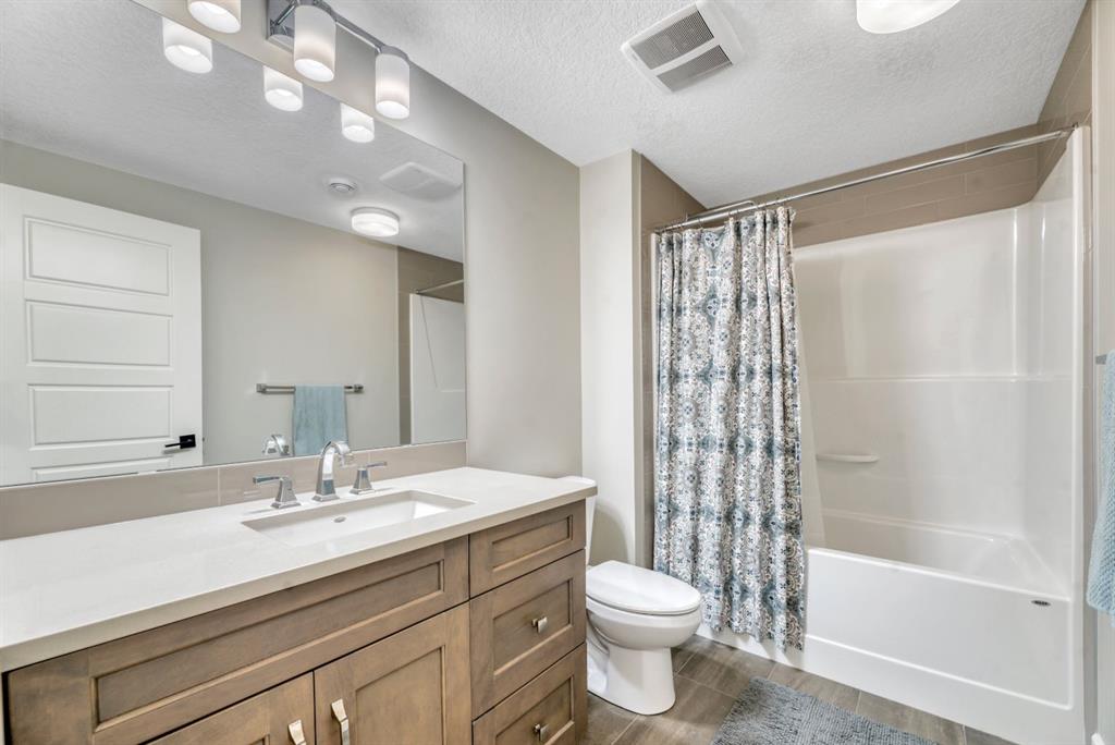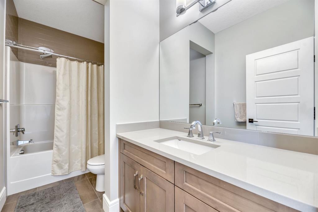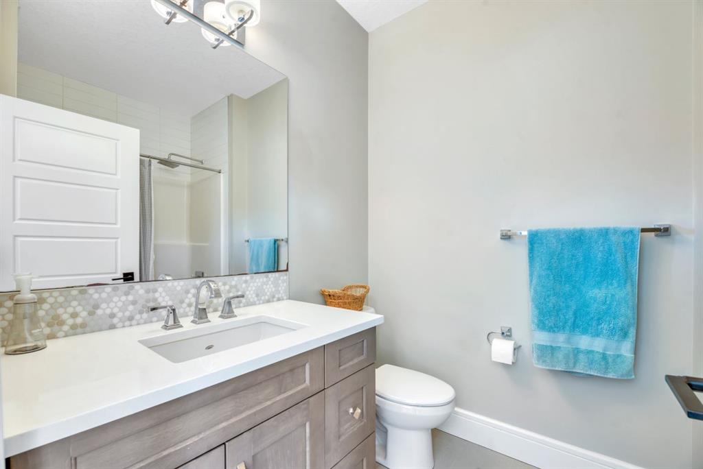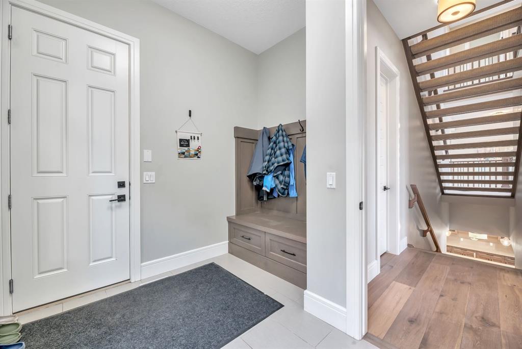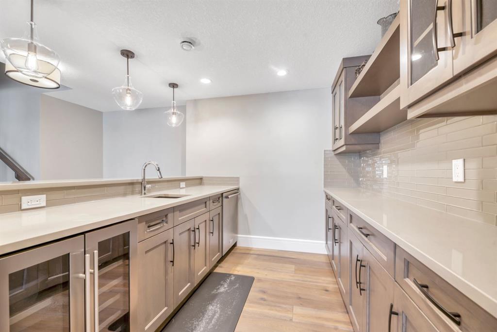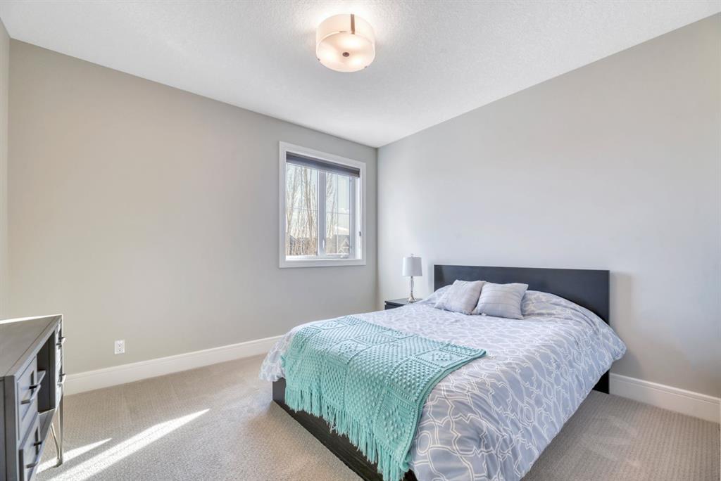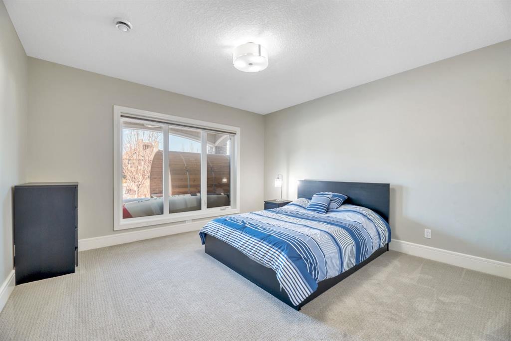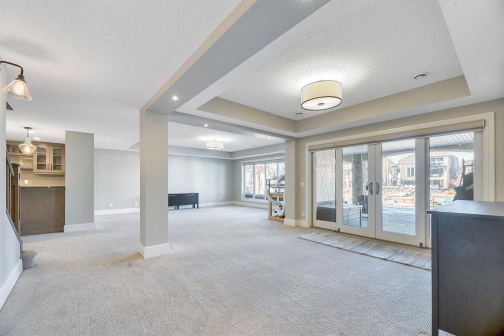 The fully finished walkout basement with in-floor heating slab extends the living space with comfort and versatility, a generous entertainment area with wet bar, a full bathroom, and a fifth bedroom plus ample storage space in the mechanical room.
