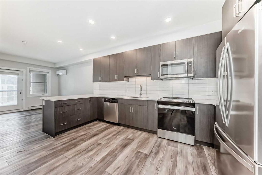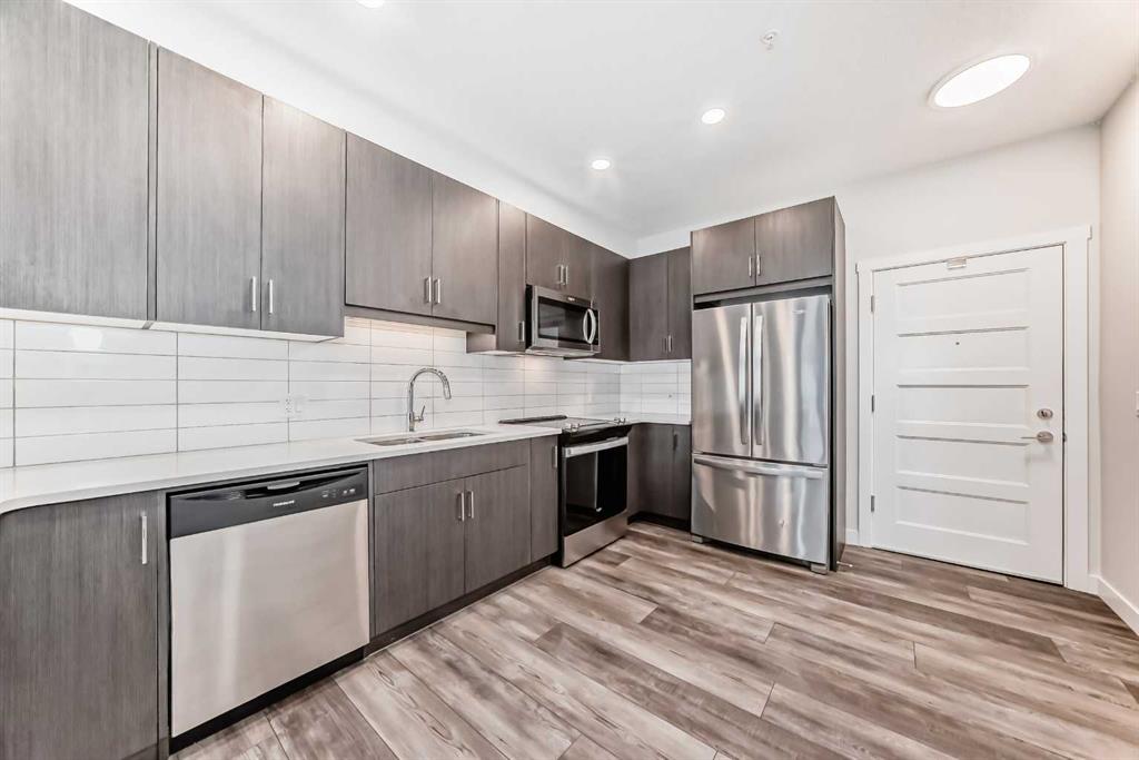 Experience elevated living in this beautifully appointed third-floor condo in the sought-after Bow360 complex, nestled in the peaceful and prestigious community of Wolf Willow, one of SE Calgary’s premier golf course neighborhoods. Perfectly suited for first time buyers or young professionals, this thoughtfully designed 1 bedroom, 1 bathroom home offers a stylish and functional living space. Step inside to discover a bright, open-concept layout featuring 9-foot ceilings, expansive windows, and durable vinyl plank flooring that complements the home’s clean, contemporary aesthetic. The spacious kitchen is a true highlight, complete with elegant quartz countertops, ample cabinetry, and a seamless flow into the living and dining areas, ideal for both everyday living and entertaining. From here, step out onto your generous size balcony, perfect for relaxing evenings and taking in stunning sunset views. The well designed bedroom serves as a private retreat, featuring a walk through closet and direct access to a modern ensuite bathroom. Additional conveniences include in-suite laundry, air conditioning, titled UNDERGROUND HEATED parking, and secure storage, ensuring comfort and ease year round. Low condo fees cover nearly all utilities except electricity, offering exceptional value. Surrounded by natural beauty and urban convenience, this prime location places you just moments from Blue Devil Golf Course, scenic walking and biking trails, parks, and nearby shopping and dining. With quick access to Stoney Trail, Deerfoot Trail, and major transit routes, commuting is effortless. Combining modern elegance, practical design, and an unbeatable location, this home offers the perfect balance of comfort, style, and lifestyle, an exceptional opportunity to make Wolf Willow your home.