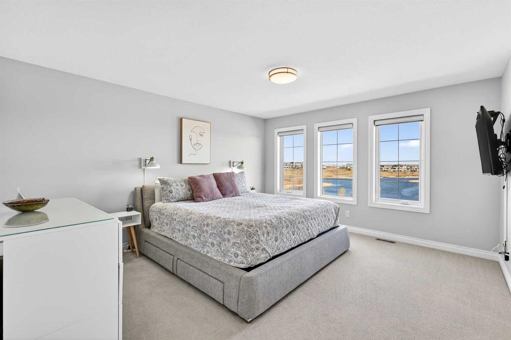 ** Please click on "Videos" for amazing video Tour ** Stunning views from this fabulous, fully developed 2 storey home, with walkout basement backing directly onto an environmentally protected pond - VERY RARE! Features include: 4 bedrooms up/5 total bedrooms, 3.5 bathrooms, almost 4000 total square feet developed, whisper quiet cul-de-sac, "Gemstone" lights front & back, power blinds, central A/C, insulated/drywalled double attached garage, water softener, Hardie Board siding, main floor office, putting green, newer pergola & fence, heated bathroom floor in basement, upper laundry (attached to primary), solar panels, kitchen under cabinet lighting, touch-less taps, large deck with BBQ gas line and much more! Location is outstanding - super quiet cul-de-sac, backing onto pond, right in the heart of Mahogany, all schools & amenities close by and very easy access to all major routes! HOA fee includes access to Mahogany Lake/Beach Club & all the amazing amenities Mahogany has to offer.