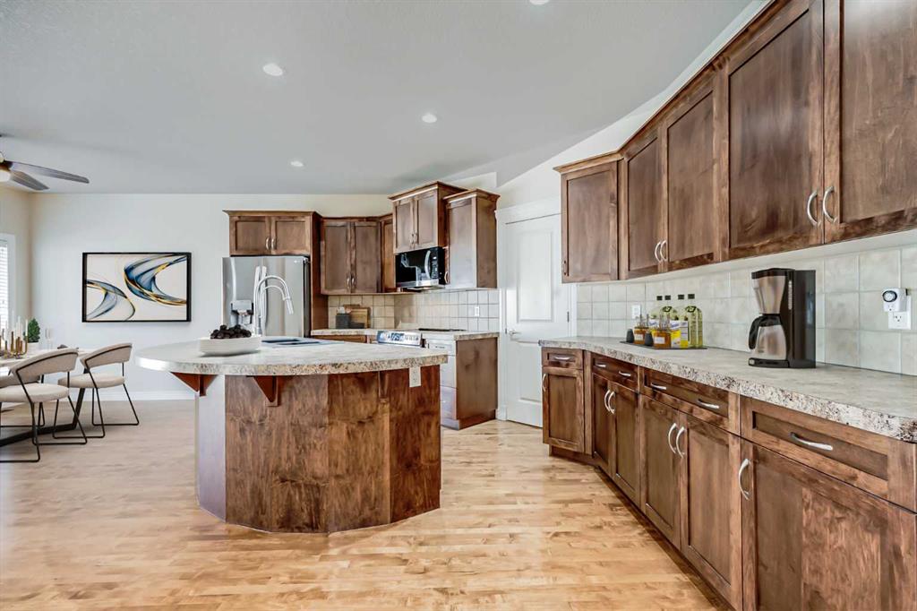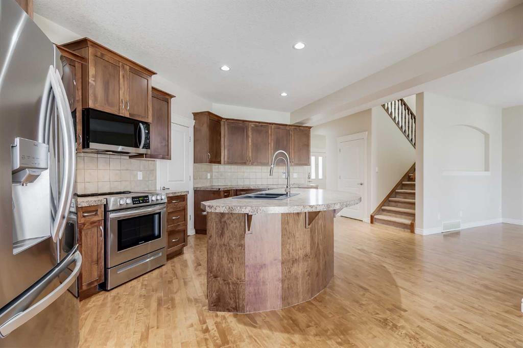 Welcome to over 3,000 square feet of developed living space inside a quiet community in Airdrie. Out front you'll immediately notice the extra stonework on this home, giving it great curb appeal. Don't forget the UNDERGROUND SPRINKLER SYSTEM as well. Moving inside you'll come into the open main level, with just the right amount of separation between spaces. The kitchen features a ton of cabinet space, a large island, and a Walk-Through Pantry. The gas fireplace perfectly separates the dining & living rooms, both of which are great size for all your family furniture. Completing the main level you have a large mud room & Laundry area. Moving upstairs you'll come to the Central Bonus Room. Towards the back of the home you'll come to the large master bedroom that easily fits your king bed and other furniture. The master is complete with a walk-in closet and 5 Piece En-Suite Bathroom with a MASSIVE SHOWER. Both secondary bedrooms at the front of the house are both great size for kids, guests, or office space. Completing the upper level is a 4-piece main bathroom. Moving downstairs you'll come to the huge basement rec room. Plenty of space for anything you want down here! Also in the basement is the large 13' x 15' bedroom, and another full bathroom. Now moving outside... Here you'll find a tiered deck with COMPOSITE DECKING & Aluminum Railings, lot of mature tree around giving you plenty of summertime privacy, a storage shed, and plenty of grass space for kids or dogs. Book your showing today!