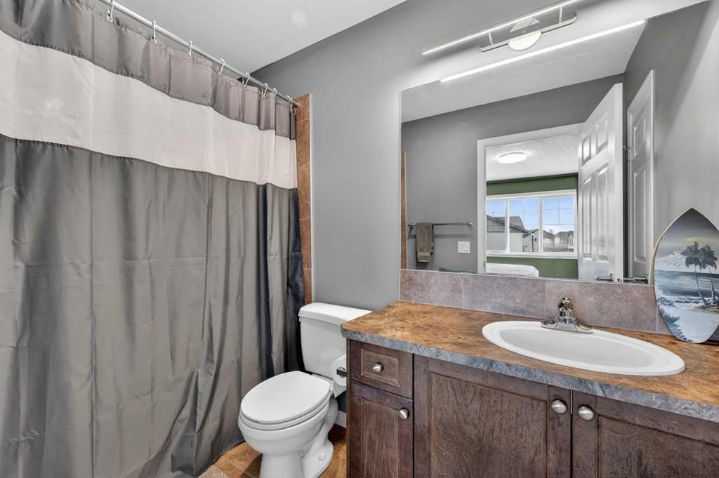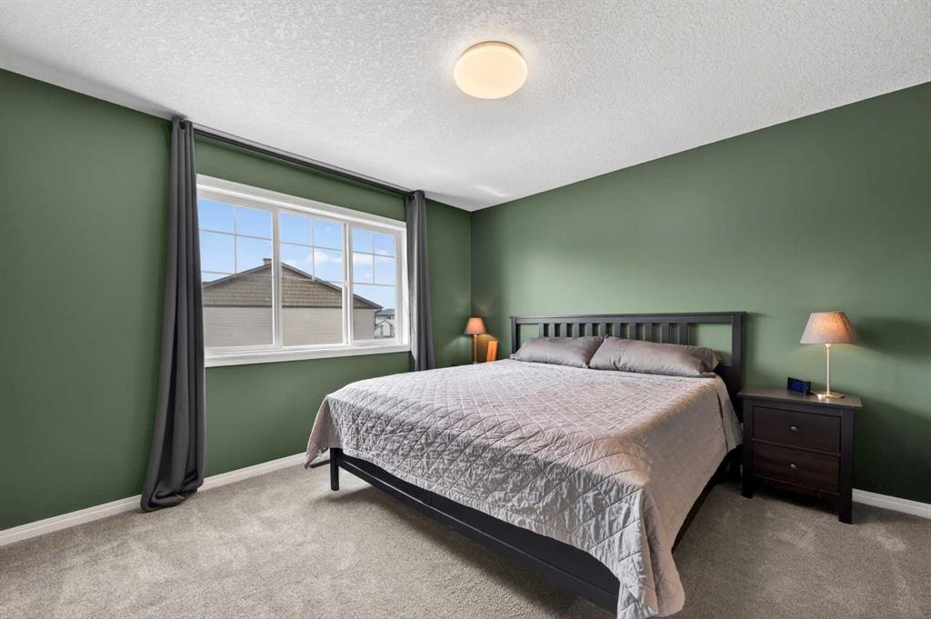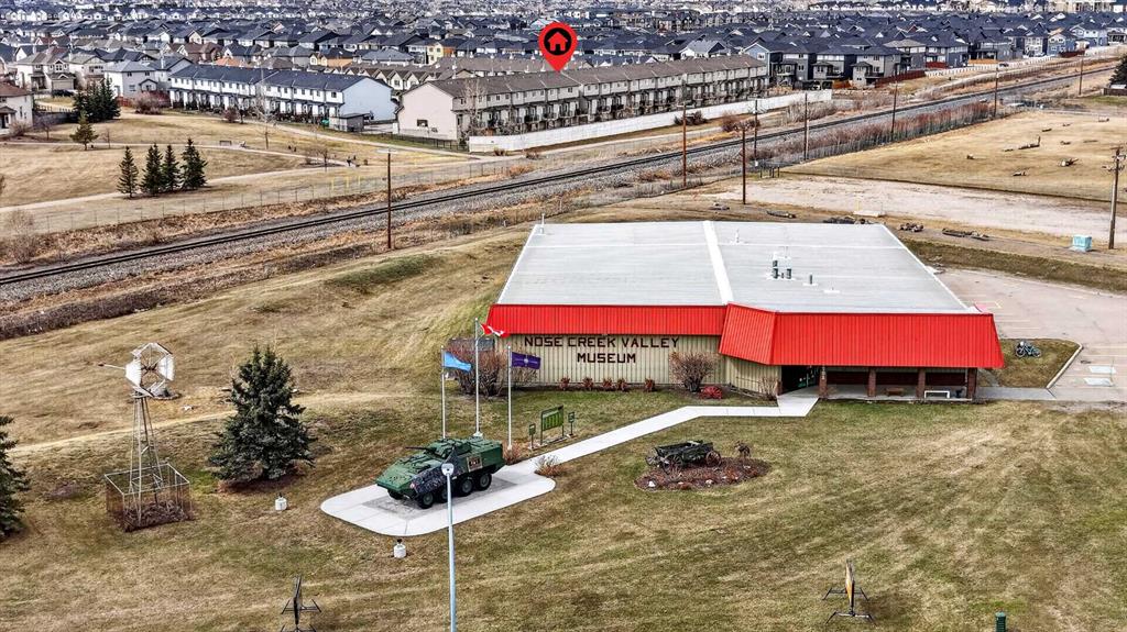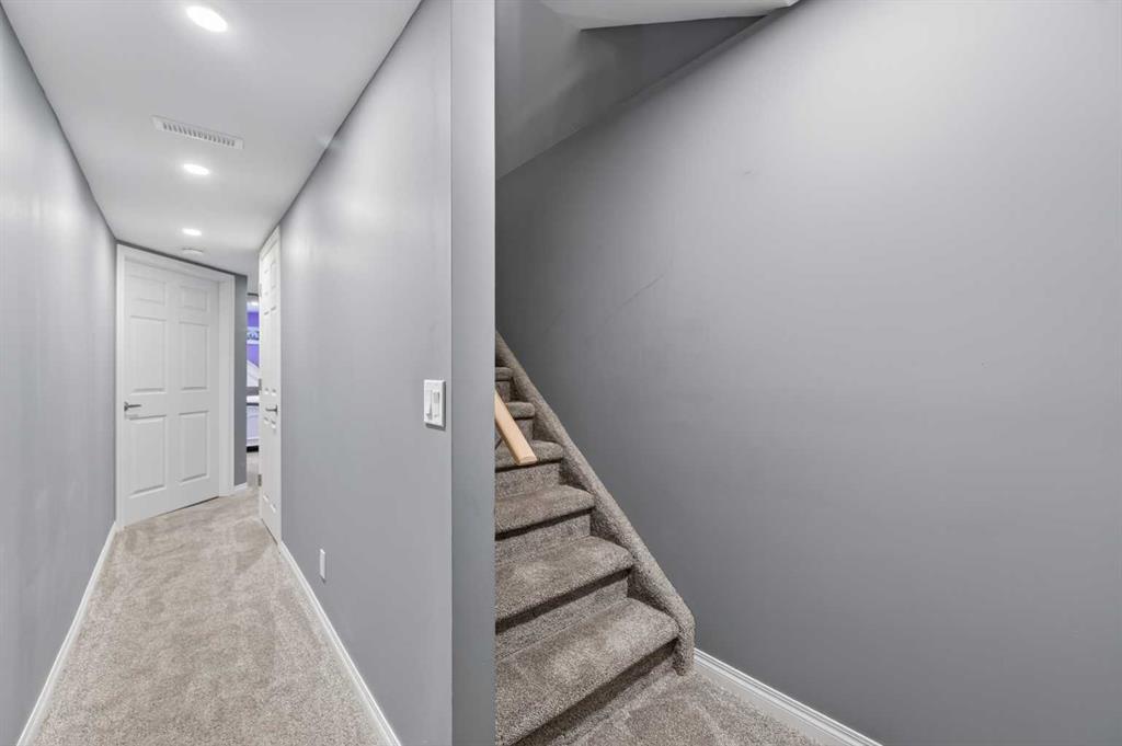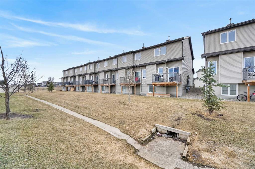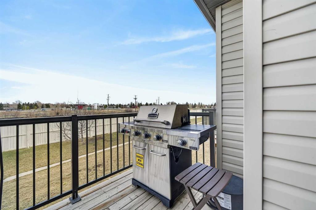 The adjacent dining and living areas are filled with natural light and flow seamlessly to the east-facing balcony, where you can enjoy peaceful views of Nose Creek Park and morning sun with added privacy and no rear neighbours. A convenient 2-piece powder room on the main level adds everyday functionality for guests.