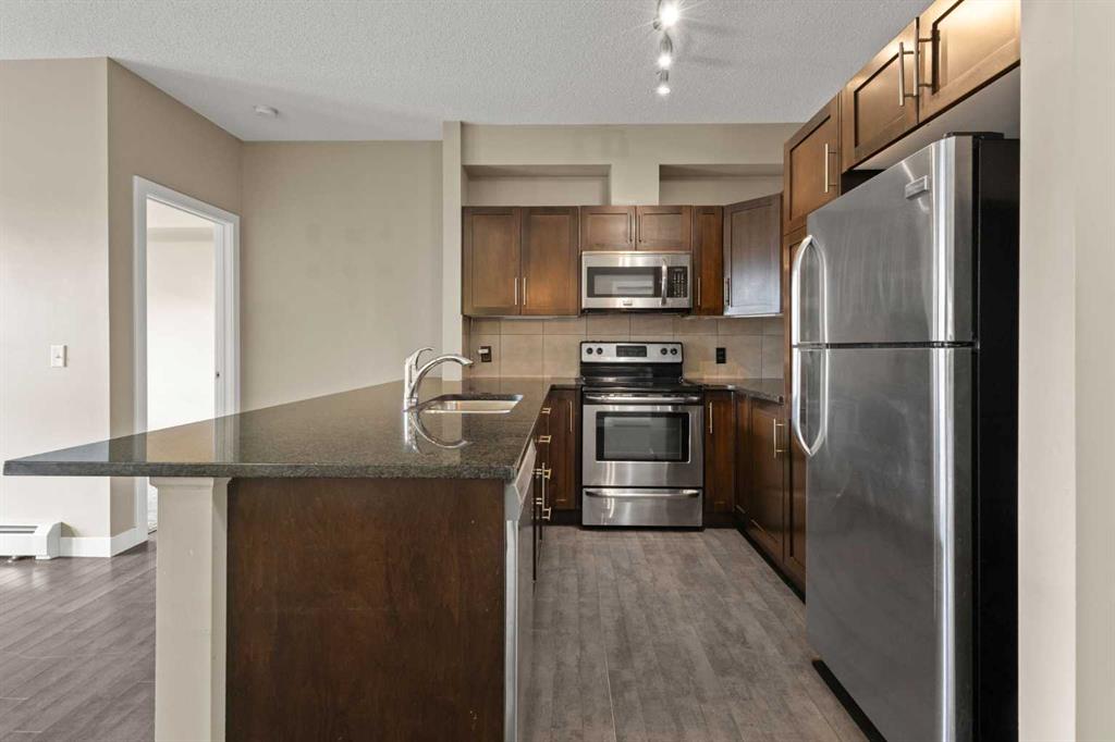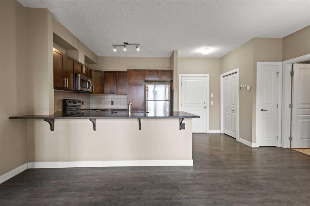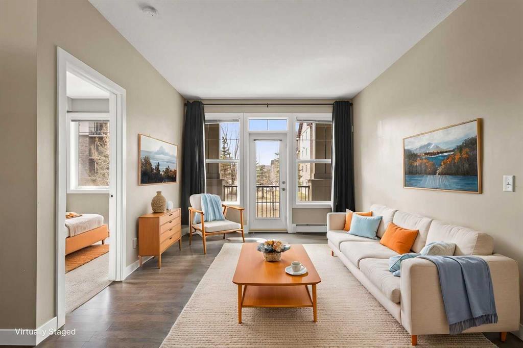 Discover the beautiful Milano complex in the sought-after NW community of Panorama Hills. This well-maintained unit offers over 750 sq ft of living space, featuring 2 bedrooms, 2 full bathrooms, and a secure underground parking stall. Step inside to an inviting open-concept layout highlighted by stylish laminate flooring. Large west-facing windows fill the space with natural light, creating a warm and welcoming atmosphere. The modern kitchen showcases dark wood cabinetry, granite countertops, a convenient island with breakfast bar, and stainless-steel appliances, perfect for both everyday living and entertaining. The spacious living room opens onto a private balcony, ideal for enjoying your morning coffee or unwinding in the evening. Both bedrooms are generously sized with large windows, including the primary suite, which features a walk-through closet with organizers and a 4-piece ensuite. A second full bathroom and in-suite laundry add to the home’s functionality and comfort. This unit also includes titled, secure underground parking and an assigned storage locker. Ideally located close to shopping, restaurants, schools, parks, playgrounds, and public transit, this home offers both convenience and lifestyle. Whether you're looking for a place to call home or a smart investment opportunity, this property delivers. Book your private showing today!
