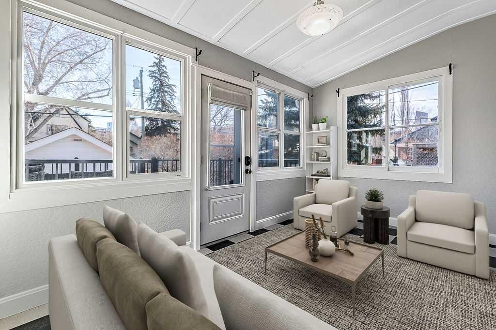 Charming bungalow on one of Calgary’s best streets! Nestled on a picturesque, tree-lined street, this delightful bungalow is brimming with character and modern updates. From the moment you arrive, the inviting front porch welcomes you into a home that perfectly blends vintage charm with contemporary comfort. Step inside to spacious rooms, soaring high ceilings, and hardwood floors, creating a warm and inviting atmosphere. The east-facing, four season heated sunroom offers pretty city views, your perfect spot for morning coffee, no matter the season. The stunning kitchen is a true showstopper, featuring ceiling-height cabinetry, an abundance of counter and storage space, and a striking red Fulgor stove that feels more like an art piece than an appliance. A quaint island with included stools completes this cozy yet highly functional space. The gorgeously remodeled 4-piece bathroom is thoughtfully designed, while the partially developed basement provides additional living space with a family room, bedroom, and a 2-piece bathroom, ideal for guests or extra relaxation. This freshly painted, move-in-ready home boasts solar panels, mature landscaping, some updated plumbing & electrical, and a newer high-end Sync furnace/water heater combination for ultimate comfort. Some newer windows enhance efficiency while preserving the home’s timeless appeal. All of this is just steps away from Calgary’s finest restaurants, boutique shops, and exercise studios, making it the perfect location for those who love to be at the heart of it all. If you’re searching for a quaint and charming bungalow with the perfect mix of character and modern convenience, this is the one!