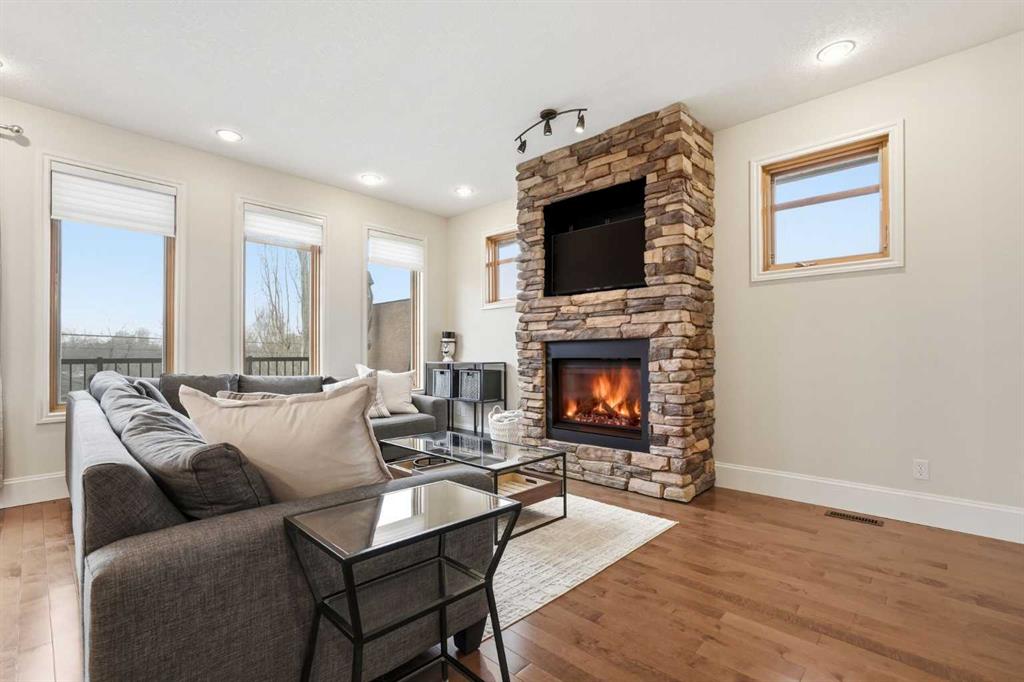 OPEN HOUSE SATURDAY, APRIL 18TH FROM 11:30 AM - 1:30 PM & SUNDAY, APRIL 19TH FROM 1-3 PM. Located on a quiet street in the desirable inner city community of Richmond, this 2+1 bedroom home offers over 2,700 sq ft of well designed living space, including a FULLY DEVELOPED WALK OUT BASEMENT. The main level features hardwood floors and lofty ceilings, showcasing a spacious living room anchored by a striking floor to ceiling stone fireplace. The living area flows effortlessly into a casual dining space and a beautifully finished kitchen with granite countertops, an island with eating bar, abundant cabinetry (including a walk in pantry), and stainless steel appliances. A private office is thoughtfully positioned just off the foyer—ideal for a dedicated work from home setup. A 2 piece powder room completes the main level. A sweeping curved staircase leads to the upper level, which hosts two generous bedrooms, a 4 piece main bath, and a convenient laundry room with sink and storage. The primary retreat features a walk in closet and a luxurious 5 piece ensuite with dual sinks, a relaxing jetted tub, and a separate shower. The fully developed walk out level expands your living space with a huge family/recreation room, a third bedroom, and a 3 piece bath. Additional highlights include central air conditioning, and a sunny west-facing back yard with upper deck off the living room, and a covered patio. Parking is effortless with a double detached garage. This prime location offers exceptional walkability—just minutes to vibrant Marda Loop, excellent schools, shopping, public transit, and with quick access to 26th Avenue and Crowchild Trail.