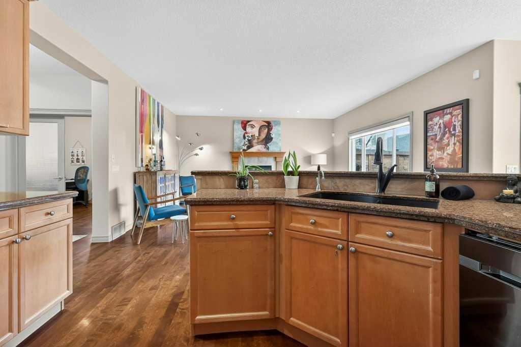 Welcome to this exceptional residence in the highly sought-after lake community of Crystal Green, offering an outstanding blend of comfort, functionality, and lifestyle. Perfectly positioned across from Crystal Ridge Golf Club and with year-round Lake Access, this home presents a rare opportunity to enjoy both scenic surroundings and resort-style amenities. From the moment you step inside, you are greeted by a bright and spacious entryway that sets the tone for the thoughtfully designed layout. The open-concept main floor has 9' ceilings and is both elegant and practical, featuring a private den with glass French doors, ideal for a home office, study, or quiet retreat. The heart of the home is the beautifully appointed kitchen, complete with a large central granite island, modern Samsung appliances, an instant hot tap at the sink, tile backsplash and a highly functional walk-through pantry that seamlessly connects to the mudroom—perfect for busy households and effortless entertaining. The inviting living room is anchored by a cozy gas fireplace and framed by large windows that flood the space with natural light while offering views of the backyard. The adjacent dining area creates the perfect setting for hosting family and friends, with easy access to the outdoor living space. Upstairs, you’ll find a generous bonus room, ideal for movie nights, a play area, or a secondary lounge space. The primary suite serves as a relaxing retreat, featuring a walk-in closet and a luxurious 5-piece ensuite with a jetted soaker tub, dual vanities, and ample space to unwind. Two additional well-sized kids' bedrooms are a good size and close to the 4pc bathroom. Step outside to your private west-facing backyard oasis, where you can enjoy long summer evenings on the expansive deck. The deck is thoughtfully designed with a gas line for your BBQ, privacy walls, privacy shades, a pergola, and an outdoor fan for added comfort. This outdoor space is perfect for relaxing, entertaining, or simply taking in the peaceful surroundings. The unfinished basement offers endless potential, with 3 oversized windows allowing you to customize the space to suit your lifestyle—whether that be a home gym, recreation room, or additional living quarters. The home has been well-maintained and upgraded with A/C, central vac, and new hot water tank. Located in one of the area’s most desirable communities, residents of Crystal Green enjoy exclusive lake privileges, walking paths, parks, and proximity to golf, schools, and amenities. Don’t miss this incredible opportunity to own in Crystal Green. Book your showing and come on Buy!