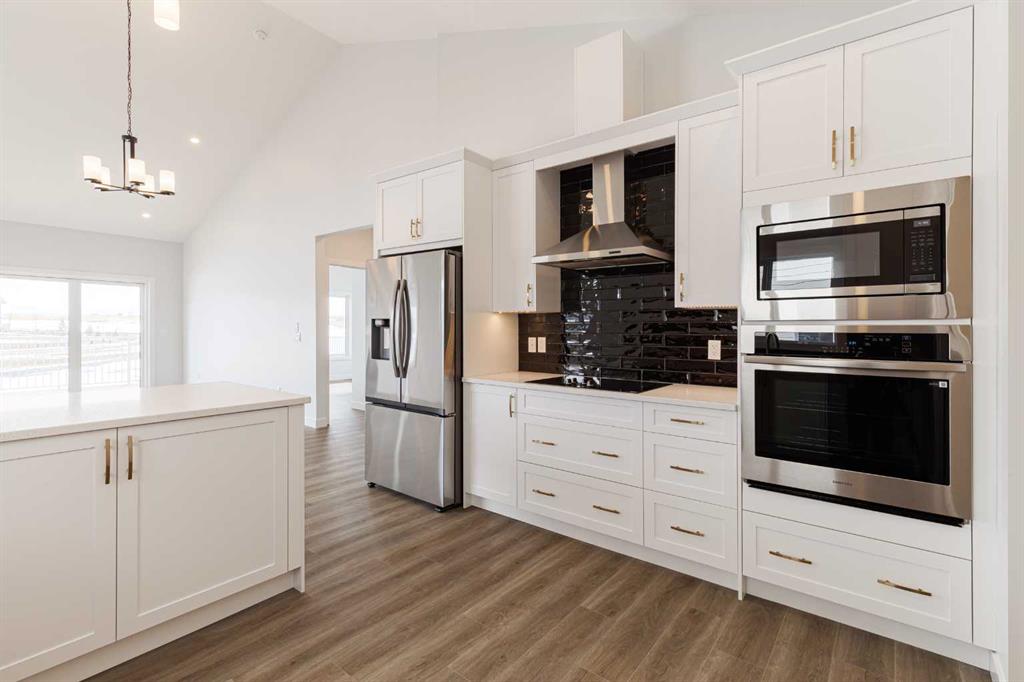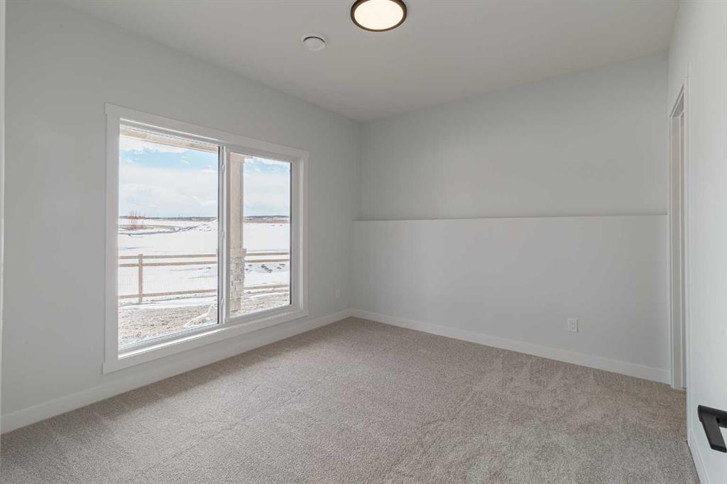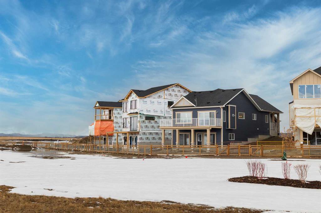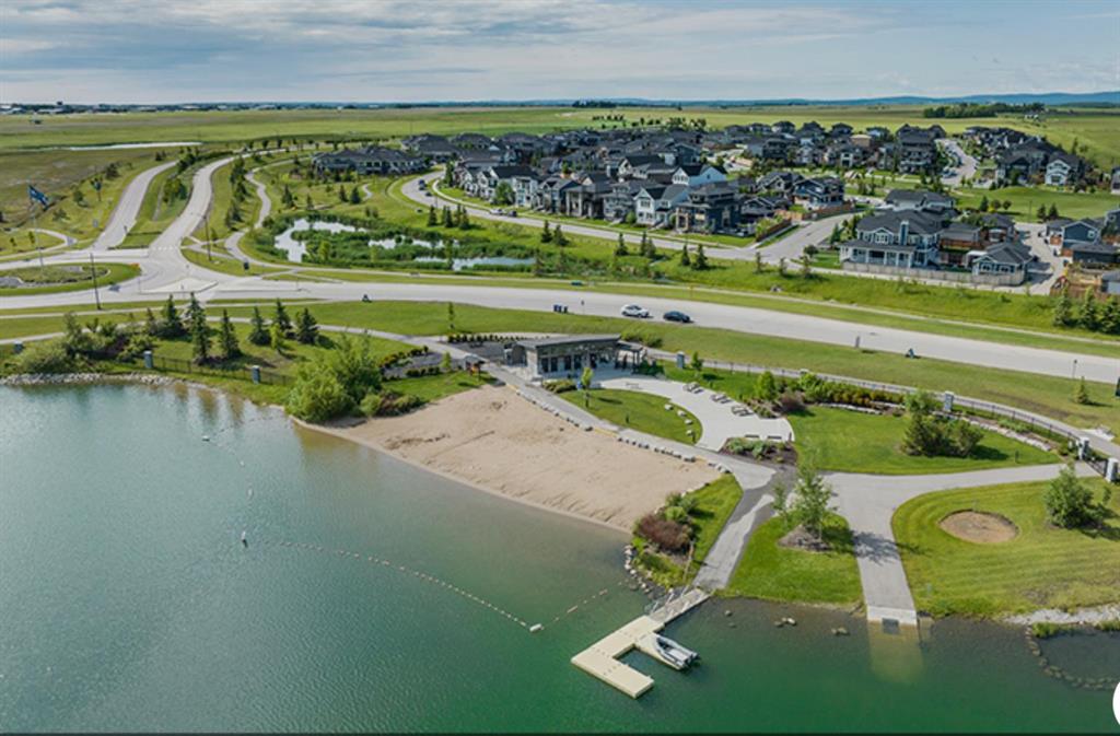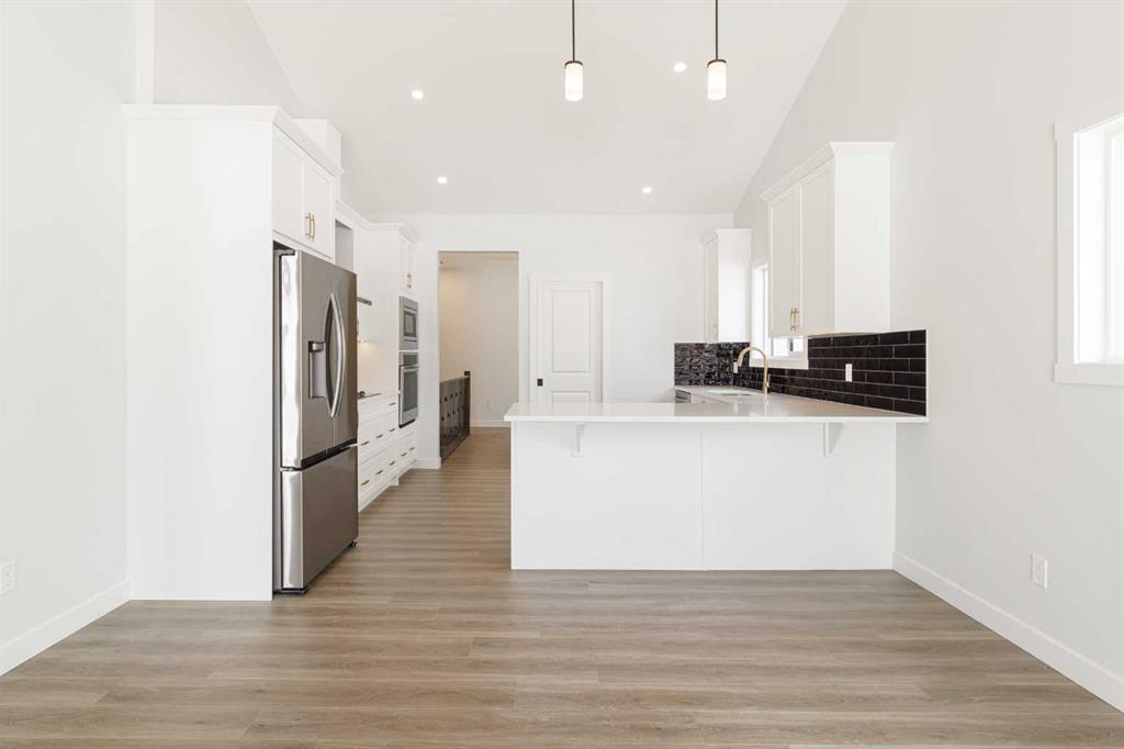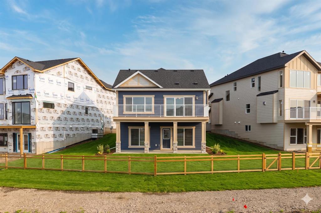 Welcome to this exceptional bungalow offering over 2,500 sq. ft. of fully developed luxury living, ideally positioned on a premium pie-shaped lot backing onto tranquil green space in the prestigious lake and golf community of Harmony in Springbank. Designed for elevated living, this residence features an open-concept layout with soaring vaulted ceilings, expansive windows, and abundant natural light, creating a seamless connection between indoor comfort and the beauty of its natural surroundings. The main floor offers 1,350 sq. ft. of refined living space, complete with two spacious bedrooms and two full bathrooms, thoughtfully designed for comfort and privacy. The chef-inspired kitchen showcases an island, quartz countertops, full-height cabinetry, soft-close finishes, and a subway tile backsplash. The kitchen flows effortlessly into the dining and living areas, anchored by a warm gas fireplace, perfect for both everyday living and elegant entertaining. The primary suite is a private retreat with peaceful greenspace views, a generous walk-in closet, and a spa-inspired ensuite featuring dual quartz vanities and an oversized glass shower. The fully developed walkout lower level expands the living space with two additional bedrooms, a full bathroom, and a spacious recreation area, opening directly to a covered patio and the outdoors, ideal for entertaining or relaxed family living. Outdoor living is elevated with a walkout patio overlooking open green space, offering tranquility and year-round enjoyment. Additional highlights include luxury vinyl plank flooring, vaulted ceilings, zebra blinds, roughed-in central vacuum, and a front-attached double garage. Residents of Harmony enjoy an exceptional lifestyle with access to 140 acres of lake, Mickelson National Golf Club, scenic pathways, parks, and future Village Centre amenities, all just minutes from Springbank Airport, top-rated schools, and Calgary. A rare opportunity to own a luxury walkout bungalow on one of Harmony’s most desirable green space lots, offering a refined blend of privacy, thoughtful design, and elevated resort-style living.