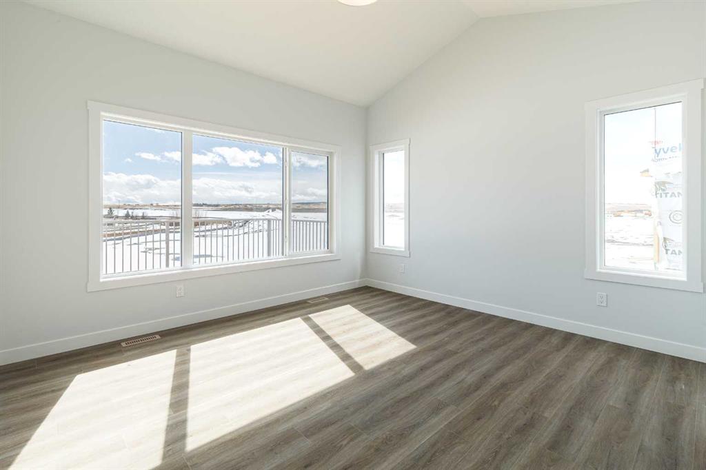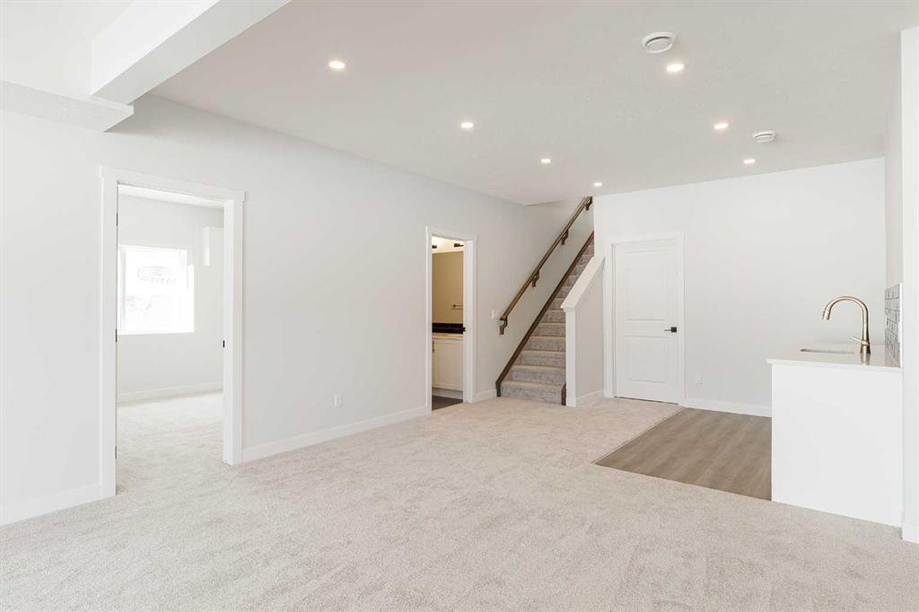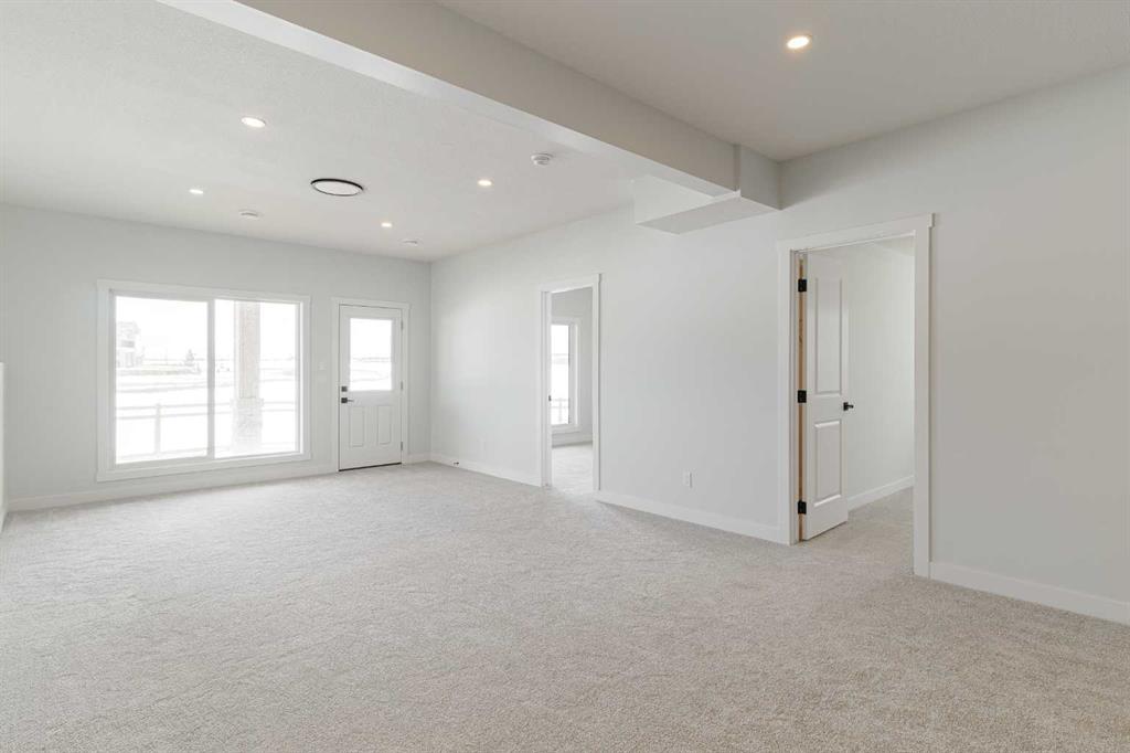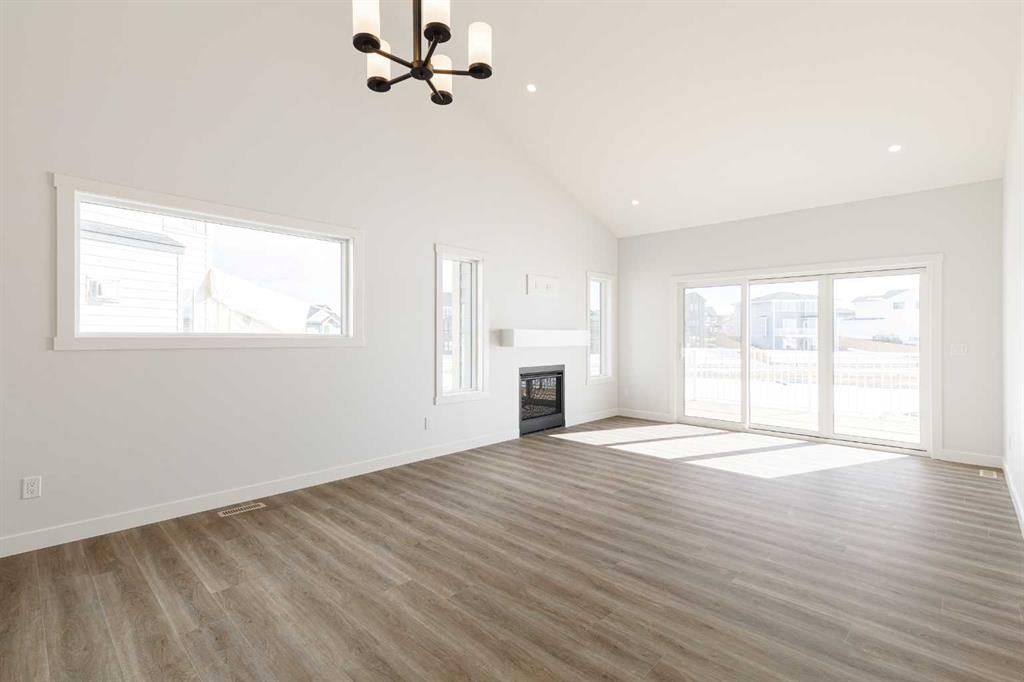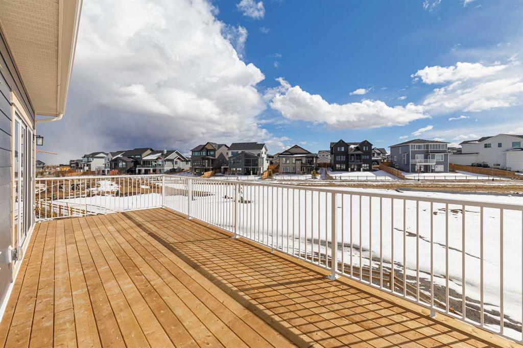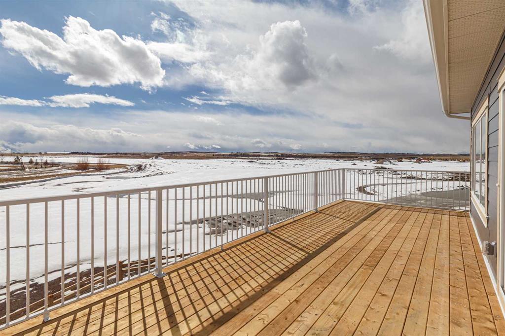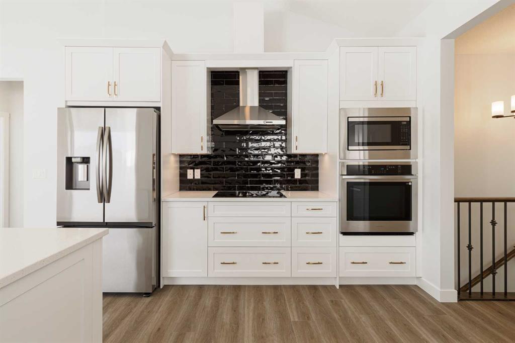 Welcome to this exceptional bungalow offering over 2,500 sq. ft. of fully developed luxury living, ideally positioned on a premium pie-shaped lot backing onto tranquil green space in the prestigious lake and golf community of Harmony in Springbank. Designed for elevated living, this residence features an open-concept layout with soaring vaulted ceilings, expansive windows, and abundant natural light, creating a seamless connection between indoor comfort and the beauty of its natural surroundings. The main floor offers 1,350 sq. ft. of refined living space, complete with two spacious bedrooms and two full bathrooms, thoughtfully designed for comfort and privacy. The chef-inspired kitchen showcases an island, quartz countertops, full-height cabinetry, soft-close finishes, and a subway tile backsplash. The kitchen flows effortlessly into the dining and living areas, anchored by a warm gas fireplace, perfect for both everyday living and elegant entertaining. The primary suite is a private retreat with peaceful greenspace views, a generous walk-in closet, and a spa-inspired ensuite featuring dual quartz vanities and an oversized glass shower. The fully developed walkout lower level expands the living space with two additional bedrooms, a full bathroom, and a spacious recreation area, opening directly to a covered patio and the outdoors, ideal for entertaining or relaxed family living. Outdoor living is elevated with a walkout patio overlooking open green space, offering tranquility and year-round enjoyment. Additional highlights include luxury vinyl plank flooring, vaulted ceilings, zebra blinds, roughed-in central vacuum, and a front-attached double garage. Residents of Harmony enjoy an exceptional lifestyle with access to 140 acres of lake, Mickelson National Golf Club, scenic pathways, parks, and future Village Centre amenities, all just minutes from Springbank Airport, top-rated schools, and Calgary. A rare opportunity to own a luxury walkout bungalow on one of Harmony’s most desirable green space lots, offering a refined blend of privacy, thoughtful design, and elevated resort-style living.
