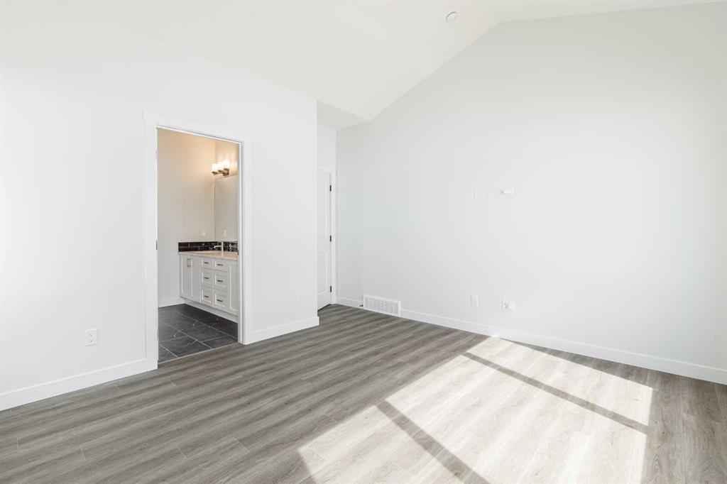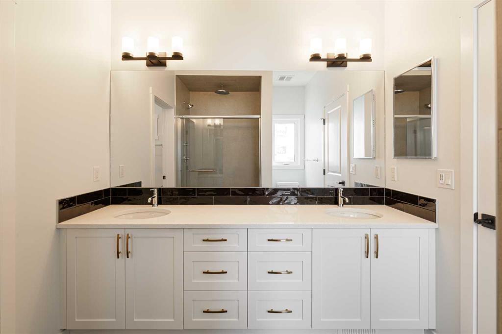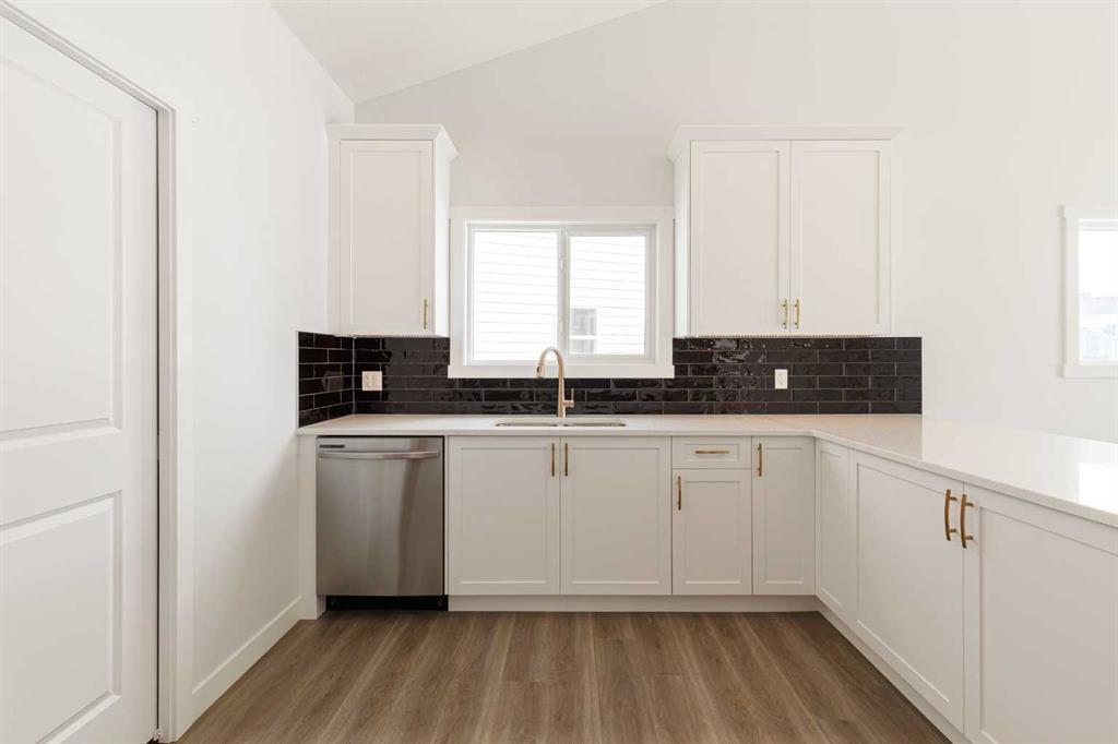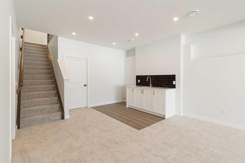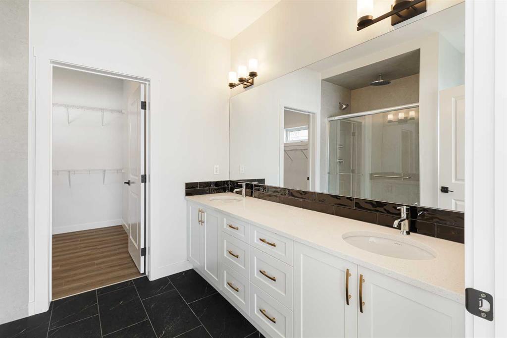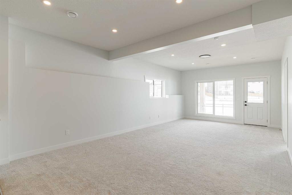 Welcome to this exceptional bungalow offering over 2,500 sq. ft. of fully developed luxury living, ideally positioned on a premium pie-shaped lot backing onto tranquil green space in the prestigious lake and golf community of Harmony in Springbank. Designed for elevated living, this residence features an open-concept layout with soaring vaulted ceilings, expansive windows, and abundant natural light, creating a seamless connection between indoor comfort and the beauty of its natural surroundings. The main floor offers 1,350 sq. ft. of refined living space, complete with two spacious bedrooms and two full bathrooms, thoughtfully designed for comfort and privacy. The chef-inspired kitchen showcases an island, quartz countertops, full-height cabinetry, soft-close finishes, and a subway tile backsplash. The kitchen flows effortlessly into the dining and living areas, anchored by a warm gas fireplace, perfect for both everyday living and elegant entertaining. The primary suite is a private retreat with peaceful greenspace views, a generous walk-in closet, and a spa-inspired ensuite featuring dual quartz vanities and an oversized glass shower. The fully developed walkout lower level expands the living space with two additional bedrooms, a full bathroom, and a spacious recreation area, opening directly to a covered patio and the outdoors, ideal for entertaining or relaxed family living. Outdoor living is elevated with a walkout patio overlooking open green space, offering tranquility and year-round enjoyment. Additional highlights include luxury vinyl plank flooring, vaulted ceilings, zebra blinds, roughed-in central vacuum, and a front-attached double garage. Residents of Harmony enjoy an exceptional lifestyle with access to 140 acres of lake, Mickelson National Golf Club, scenic pathways, parks, and future Village Centre amenities, all just minutes from Springbank Airport, top-rated schools, and Calgary. A rare opportunity to own a luxury walkout bungalow on one of Harmony’s most desirable green space lots, offering a refined blend of privacy, thoughtful design, and elevated resort-style living.