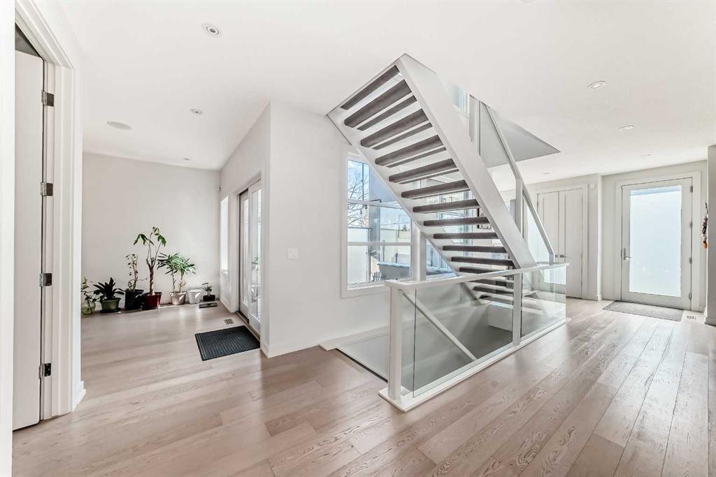 This truly is your dream house!!! 5 bedroom, 3.5 bathroom, two-story detached home located in Calgary SW community. This spacious residence offers a total developed area of over 3400 square feet. The interior showcases a contemporary and elegant design, featuring stunning oak hardwood flooring, 9-foot ceilings throughout, and a beautifully tiled gas fireplace. The main social area of the house consists of a bright living room and a formal dining room, seamlessly connected to both a central deck and a rear deck, providing ample room for entertaining and relaxation. The kitchen is a true masterpiece, adorned with matte white shaker cabinetry, quartz countertops, a striking Moroccan-style back painted glass tiled backsplash, a pantry, a huge island, and top-of-the-line stainless steel appliances including a stand alone fridge and separate stand alone freezer. Ascending the open riser stairway with glass railing to the upper level, you will find a well-appointed laundry room, a stylish 4-piece bathroom, and three inviting bedrooms, including the expansive primary suite. The primary suite is accompanied by a generously sized walk-in closet and a luxurious 5-piece ensuite featuring a freestanding tub and dual vanities, adding a touch of opulence to your daily routine. The basement is fully finished and offers additional living space, including a recreation room, two extra bedrooms, and another 4-piece bathroom. Enhancing the overall appeal of this remarkable home, the exterior features lush landscaping, a convenient double garage, & central air conditioning, providing comfort and convenience year-round. Other upgrades include 8 ft doors, water softener, in ceiling speakers and heated floors in upstairs bathrooms. In summary, this exceptional trophy like residence combines spaciousness, contemporary elegance, and meticulous maintenance, creating an inviting and comfortable living environment. Note the double garage has extra ceiling storage that can be accessed via an access door off the rear deck of the house. You can earn $5,000+ in monthly rental income. Close proximity to 4 amazing parks within walking distance, this luxury residence is truly your ultimate paradise.