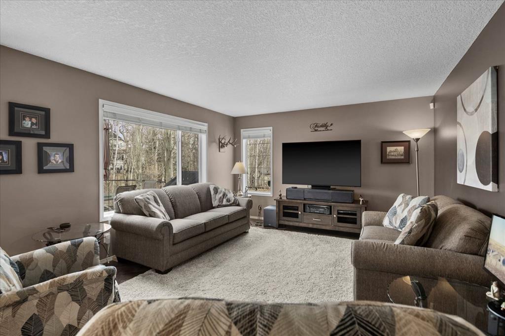 There's a rhythm to this home that reveals itself through the back windows - the kids running through the gate to the park, unhurried evening walks, and in winter, a skating rink the neighbours maintain themselves. The original owners raised their children here, and they'll tell you the greenspace wasn't an amenity. It was part of daily life. Siding and backing directly onto the park and playground, this setting is increasingly hard to find. The yard is well tended, complete with an underground irrigation system and mature apple trees that produce enough for homemade pies. Inside, the home has been thoughtfully designed and well cared for. A main floor den sits behind double French doors - a quiet workspace or flex room with windows overlooking the front yard. The kitchen features maple cabinetry, granite counters, a generous island, and a most of the appliances, including a five-burner gas range, are newer. The adjacent dining nook captures the view of the green-space, and the family room opens off the kitchen, wrapped in big windows. Hardwood flooring runs throughout the main level. Upstairs, the layout is well considered: the bonus room, anchored by a fireplace, is set apart from the bedrooms by the staircase - keeping the sound of movie nights at a comfortable distance from sleeping little ones. Three bedrooms share this floor, including a spacious primary with lovely views and an ensuite featuring dual sinks, an oval jetted tub, and a separate shower. The fully developed lower level adds a large rec and games room ready to become a theatre space, a fourth bedroom with walk-in closet, a full bathroom, and a generous storage room. Additional features include central air conditioning, a finished and heated garage, a newer hot water tank, and newer hail-proof asphalt shingles. First-time to market from the original owners, and ready for its next family.