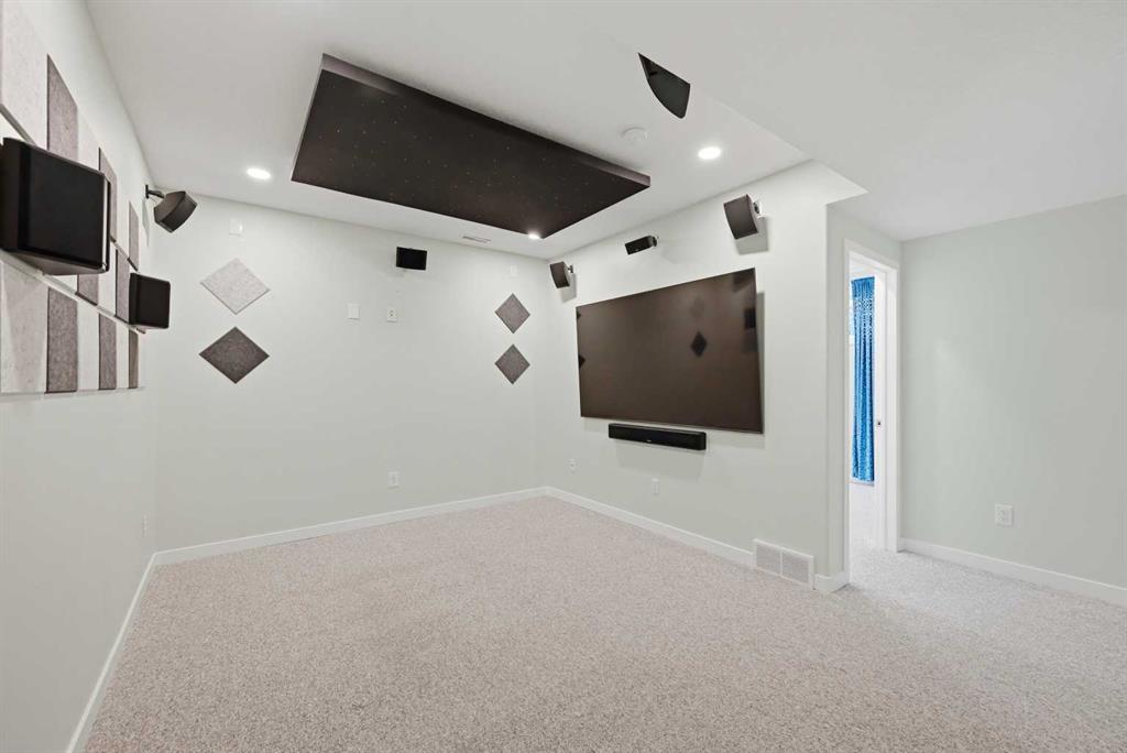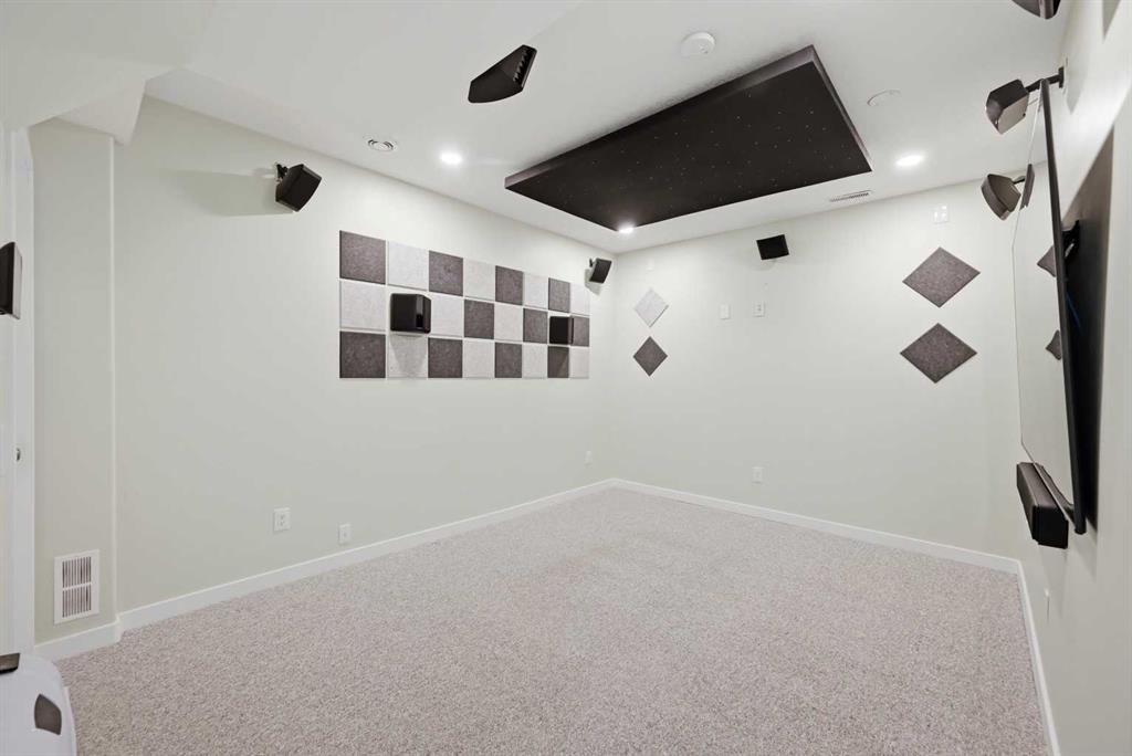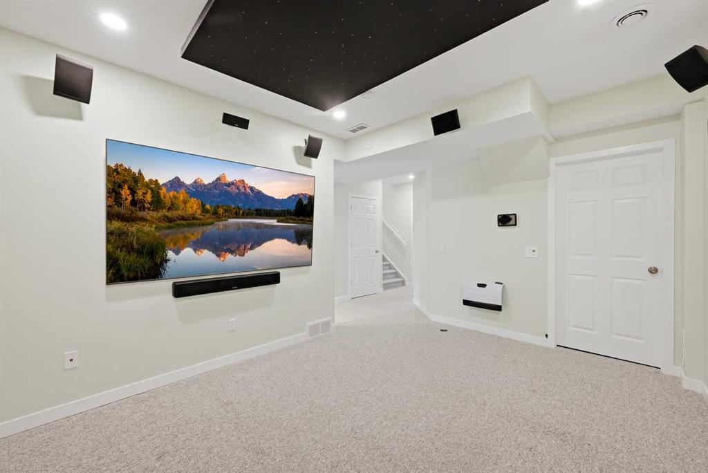 Enjoy modern upgrades such as smart blinds on the main floor, ceiling speakers, and smart switches throughout. Stay comfortable year-round with central air conditioning, perfect for Calgary’s warm summer days. The media room with an 85-inch TV and star ceiling lighting offers the perfect entertainment space.
