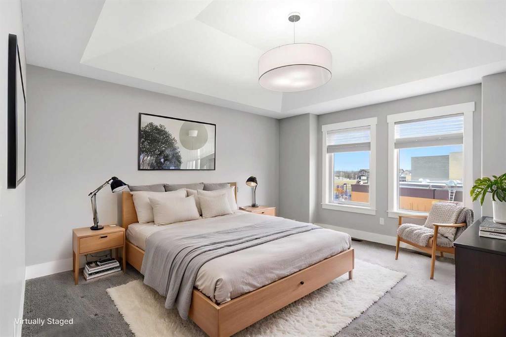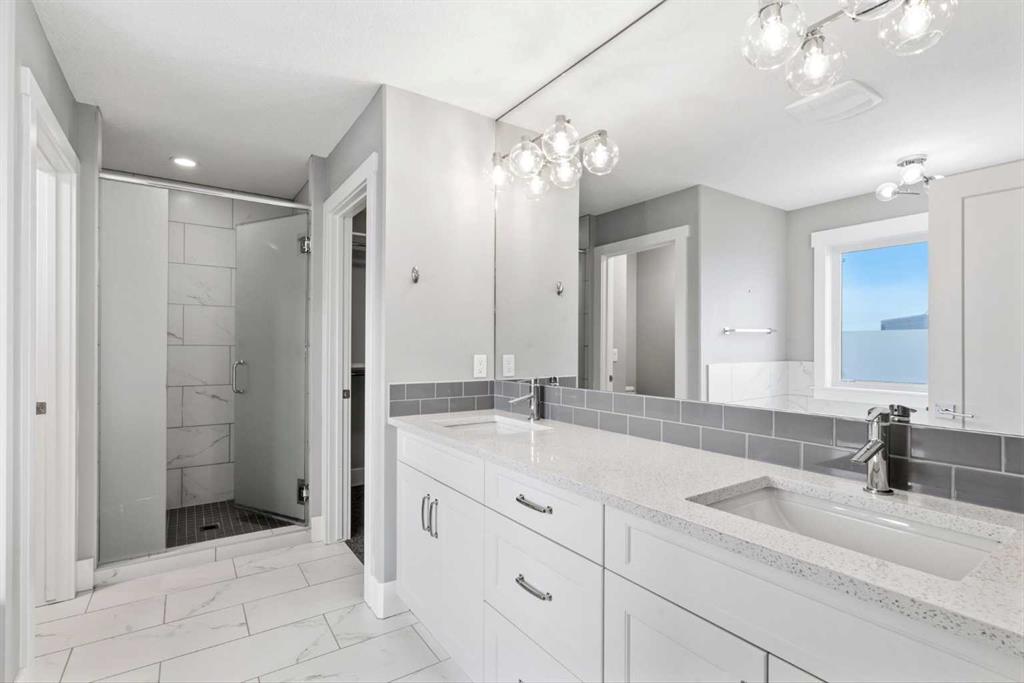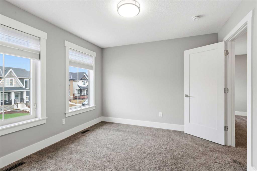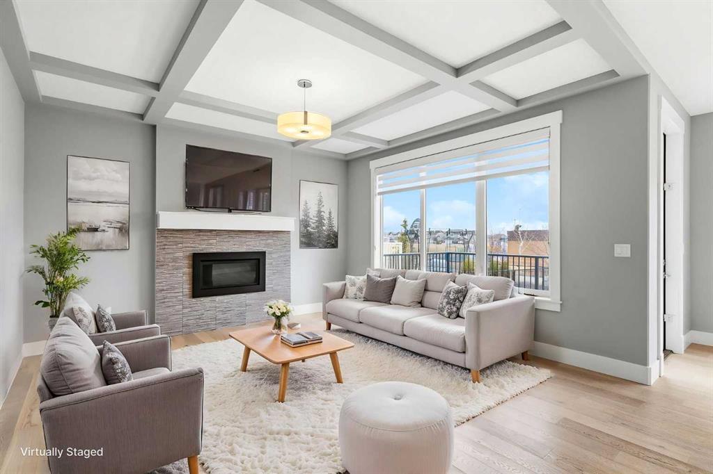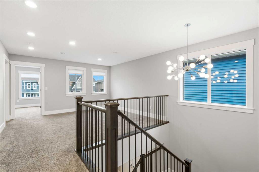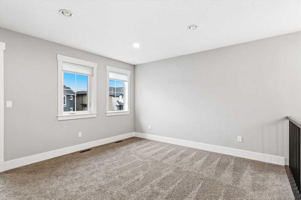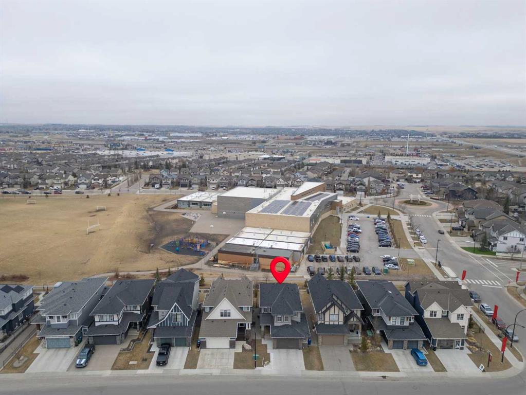 *OPEN HOUSE SUNDAY APRIL 19 AT 1:00PM - 3:00PM* Welcome to a home that feels elevated from the very first step inside. Custom built by Harder Homes, this beautifully crafted two storey in Coopers Crossing offers over 3000 square feet of thoughtfully developed living space. With its distinctive exterior, sloped roof lines, and MASSIVE GARAGE, the curb appeal makes a strong first impression. Inside, the sense of space and intention continues. The main floor unfolds with a grand foyer that opens into a warm and welcoming great room, anchored by coffered ceilings and a GAS FIREPLACE that invites slow evenings and enjoyable gatherings. ENGINEERED HARDWOOD floors carry throughout, paired with 9' CEILINGS and 8' DOORS that add both height and presence. The kitchen is truly the heart of the home. Beautifully finished with ceiling height cabinetry, stainless steel appliances, and a generous center island, it offers exceptional storage and space to cook, host, & connect. The dining area sits just off the kitchen, filled with natural light and perfectly positioned for everyday meals or weekend entertaining. A dedicated MAIN FLOOR OFFICE creates a quiet place to work or study, tucked away yet still connected to the rhythm of the home. The mudroom leading to the garage is complete with built-ins and a charming barn door, keeping busy days organized. Every detail feels considered, right down to the Nest thermostat and the added AIR CONDITIONING (2022) for year round comfort. Upstairs, the layout is as functional as it is spacious. The primary suite feels like a true retreat, with room to unwind, a large WALK-IN CLOSET with custom built-ins, and a luxurious 5 piece ensuite featuring dual sinks, a deep soaker tub, & a spacious shower. Two additional bedrooms are generously sized and share a well appointed 5 piece bath with double sinks, ideal for growing families. The BONUS ROOM offers flexibility for movie nights or play space, complete with a rough in for speakers to elevate your home entertainment experience. An upgraded railing adds a refined architectural touch as you move between levels. The fully developed basement extends the living space even further, with a massive recreation and media area that easily adapts to your needs. A 4th bedroom, separate den and full 4 piece bathroom make it perfect for guests, teens, or multi generational living. Backing directly onto a school, the backyard setting offers both privacy and convenience, with no rear neighbours and quick access to green space and community pathways. Living in Coopers Crossing means being part of one of Airdrie’s most sought after neighbourhoods, known for parks, schools, and a strong sense of community. It is the kind of place where families put down roots and stay awhile. Book your private showing and experience it for yourself! *Some photos have been virtually staged*