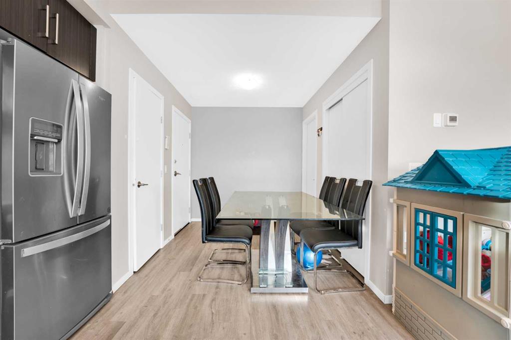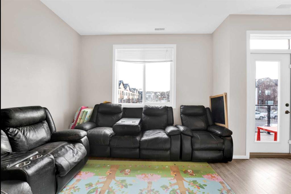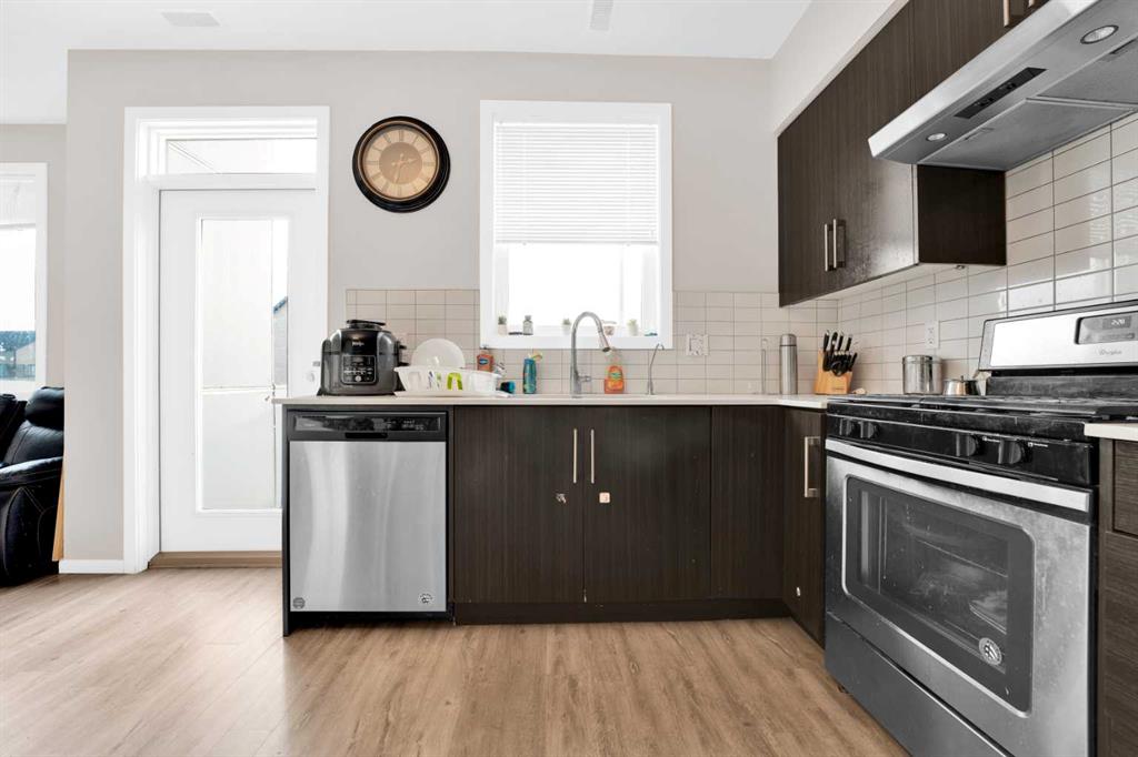 Welcome Home to #202, 135 Redstone Walk, Calgary. Imagine stepping into a home where modern elegance meets unparalleled comfort. Nestled in the vibrant community of Redstone, this stunning end unit, built in 2018, is one of the last to be completed in the complex, offering exclusivity and a fresh start in a lightly lived in home. As you enter, you're greeted by an open-concept main floor that radiates warmth and sophistication. The kitchen, a chef’s delight, is bright and airy with ample cupboard space, stainless steel appliances, and modern finishes. Espresso cabinetry paired with a pristine subway tile backsplash and polished quartz countertops create a space that is both functional and beautiful. Picture yourself preparing a gourmet meal in this stylish setting, with every detail designed for both convenience and aesthetics. The kitchen flows seamlessly into the inviting living area, perfect for cozying up with a movie after a delightful dinner. The natural light pouring in through the large windows enhances the sense of space and comfort, making every moment spent here feel special. Venture upstairs to find 3 spacious bedrooms, one 4-piece washroom and laundry. The property also features a large, double attached tandem garage, providing ample space for your vehicles and storage needs, ensuring everything has its place.