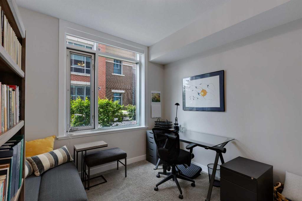 Welcome to stylish condo living in the highly sought-after community of Varsity Estates. This beautifully upgraded 2-bedroom, 2-bathroom main floor unit offers the perfect combination of style, comfort, and unbeatable convenience. Originally a former show suite, this home is loaded with upgrades including granite countertops, upgraded maple cabinetry, and beautiful flooring that create a modern feel throughout. The kitchen flows seamlessly into the bright living area, creating an inviting space for both everyday living and entertaining. Gorgeous laminate flooring enhances the main living area while the well-planned layout offers excellent separation from bedrooms for added privacy. The primary bedroom is a true retreat, featuring large south-facing windows that fill the room with natural light, a walk-in closet and a 5-piece bathroom, featuring dual sinks, a soaker tub and a separate shower. A second bedroom and full bathroom provide flexibility for guests, family or a home office. Step outside to enjoy the large patio space, offering covered and uncovered areas, perfect for morning coffee and summer evenings. Additional highlights include in-suite laundry, pantry, titled underground parking and a separate storage locker. Residents of the Groves of Varsity enjoy outstanding year-round amenities including a fully equipped fitness centre, steam rooms, meeting and party spaces and a spectacular roof-top terrace with mountain views. Located steps from coffee shops, parks, medical offices and shopping, this location truly offers everything at your doorstep.