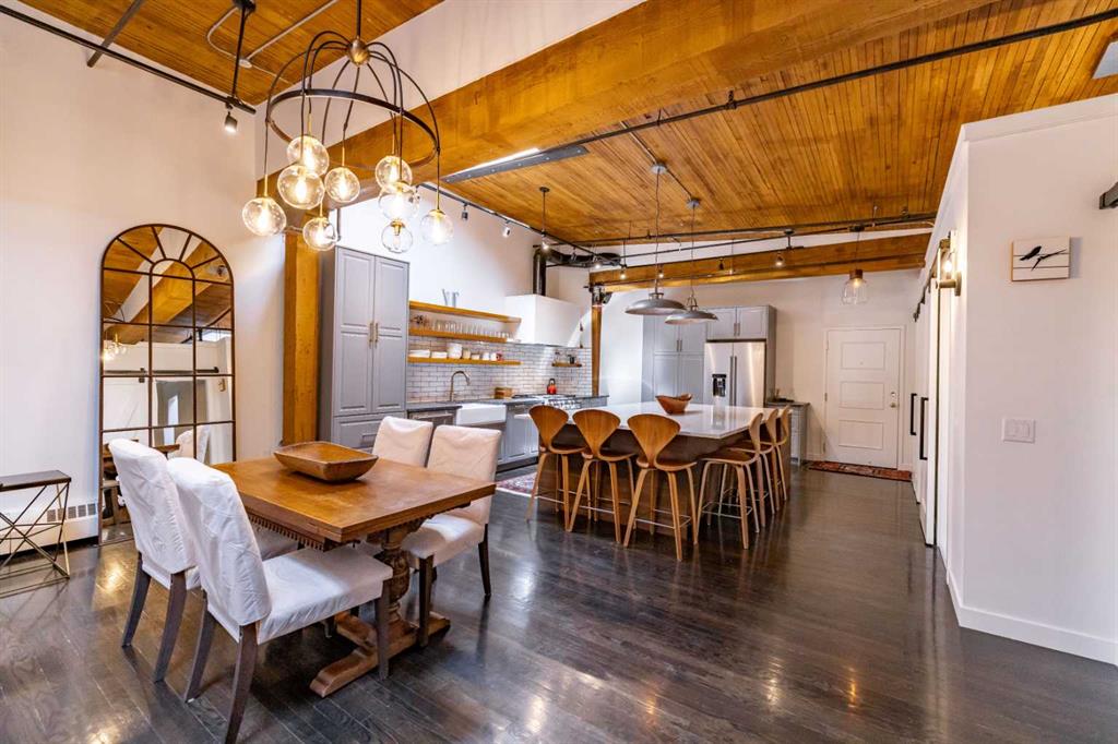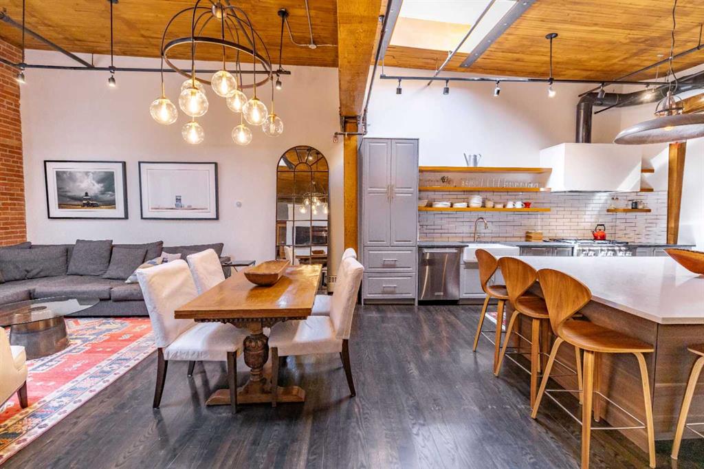 Within the storied walls of the Historic Hudson, this remarkable loft penthouse offers a way of living that feels both deeply rooted and effortlessly contemporary. Originally built in 1909 and thoughtfully reimagined for modern life, the home celebrates its heritage while embracing refined luxury at every turn. Morning light streams through overhead skylights, washing the soaring ceilings and oak hardwood floors in a warm, ever-changing glow. The scale is generous yet inviting—an open canvas that feels equally suited to quiet mornings with coffee as it does to evenings spent entertaining friends. At the center of it all is a show-stopping chef’s kitchen, anchored by a dramatic oversized island that naturally becomes the gathering place. High-end appliances and a six-burner gas range make it as functional as it is beautiful, a space designed for both ambitious cooking and easy conversation. The living area unfolds seamlessly, warmed by a double-sided fireplace that adds intimacy and architectural interest. Tucked beyond, the enclosed primary bedroom offers a sense of retreat rarely found in loft living—quiet, serene, and distinctly private. From here, an unexpected luxury reveals itself: a custom, walk-through closet with boutique-style storage that leads directly into a full-size, dedicated laundry room. It’s a thoughtful progression that elevates everyday routines into something quietly indulgent. The spa-inspired bathroom continues the sense of escape, featuring heated floors, a sculptural Victoria + Albert soaking tub, and a generous glass-enclosed double shower—an environment designed to slow the pace of the day. Throughout the home, bespoke built-ins add both beauty and purpose, while rich materials and careful detailing create an atmosphere of understated sophistication. An elegant den, complete with custom cabinetry and a concealed Murphy bed, offers flexibility as a guest space, home office, or private reading room—adapting easily to the rhythms of modern life. Set in the heart of Calgary’s vibrant Beltline, this residence places world-class dining, boutique shopping, and cultural landmarks just outside your door. With titled underground parking and the rare privacy of a low-traffic, mixed-use heritage building, this is urban living that feels both exclusive and effortlessly livable. A rare offering. A historic icon. A loft that redefines what city living can be.