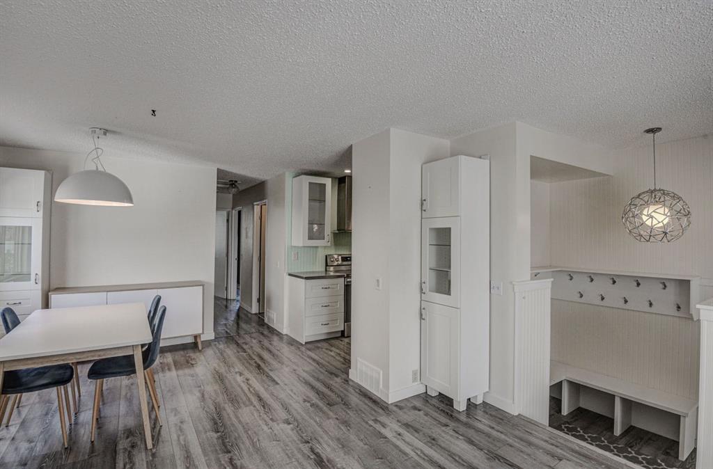 Beautiful updated home in Beddington! This home makes a great first impression with the reconfigured front mudroom complete with bench seating, shelving, storage bins and multiple hanging hooks. Gorgeous laminate floors throughout the main level. Step into the living room featuring a sliding glass door that leads out to the front balcony, an ideal spot for your morning coffee! Spacious adjacent dining area. Completely redone kitchen is sure to impress with white cabinets with glass reveal uppers, stainless steel appliances with a chimney style hood fan and a classic farmhouse sink. Updated full bathroom on the main floor with soaker tub, subway tiles and full tub surround. The 3 piece basement bathroom is new 3 years ago. 2 nice size bedrooms on the main level. Separate side entry to basement with 2 bedrooms, flex room, storage room, 3 piece bathroom and family room. New furnace and hot water tank in 2023. Enjoy the sunny back yard with wood patio. Excellent Beddington location with minutes to schools, shopping, dining, public transit and Nose Hill Park.
