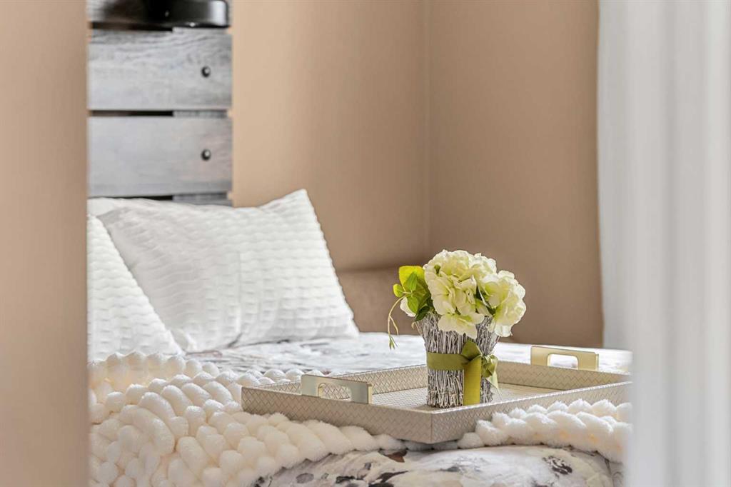 A show home–worthy townhome, this rare, five level split hosts over 1,500 square feet of developed living and is suited for families, those looking to right-size, or young professionals! From the moment you walk-in, you will feel at home, with a formal front entrance, this configuration feels more like a house than a townhome. Ascend a few stairs and step into your extraordinary family room, this room is the crown-jewel of this floorplan, showcasing a split-level design with soaring 10’ ceilings alongside an ambient gas fireplace. You will love the plethora of natural light gleaming over your new vinyl plank floors, as the main living quarters are located on the second storey, which allows for more sunlight, and corner units are the only units with windows on multiple sides, a memorable space for you and your plants. From the family room you have access to your patio where you can dine alfresco and take in the sunset! This end unit allows the adjoining greenspace to feel as if it is all yours, and the view is private, a rare perk as this unit does not look into neighbouring townhomes. Step into your culinary retreat, curated with timeless white cabinetry, elevated quartz countertops and a top-tier appliance suite including a dual oven and microwave range. The kitchen hosts ample cabinetry with a sophisticated wine rank, a silgranit sink and a pantry. The kitchen seamlessly integrates into the beautiful sunlit dining room, awaiting intimate dinners. Your guests have access to a private powder room with laundry, enhanced with a laundry sink and newer washer and dryer. Upstairs, features a ‘dual primary configuration’. The lavish primary bedroom hosts a boutique worthy walk-in closet, so generous in size, half this room has been divided into an office. The four-piece ensuite is recently remodelled with a gorgeous extended vanity with quartz counters, plus there’s a linen closet too! The second bedroom is down a few steps, ideal for privacy, and its generous design features its own walk-in closet and renovated three-piece ensuite! This set-up is preferred by families who want larger more functional bedrooms, and it is perfect for roommates or guests too! The lower level features a flex room that can become a kids retreat, gym, office, or guest quarters! Did I mention that an end units mean no neighbours on one side? This residence showcases an oversized, single, attached, garage. The unit is situated directly on top of the garage, allowing your vehicle to be warm in the winter months, and for those of you with a second vehicle, you will love the full-sized driveway. This complex has ample visitor parking and has had major improvements done in recent years such as the roof, vinyl siding and eavestroughs (2021). Copper field is a desirable community with access to amenities, schools, shopping and pathway’s leading to multiple ponds, parks, community rinks and fields! This residence offers elevated living and is waiting for a connoisseur of fine living to call it home.