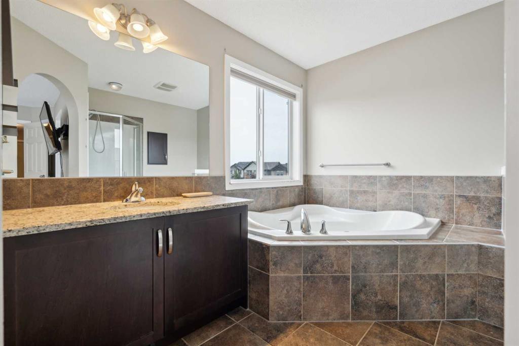 Upstairs, the spacious primary suite offers a relaxing retreat with a corner soaker tub, separate shower, and a large walk-in closet. Two additional generously sized bedrooms, a full bathroom, and an upper-level laundry room add comfort and practicality for growing families.