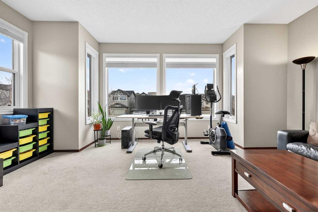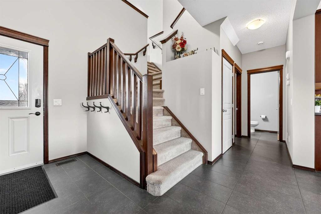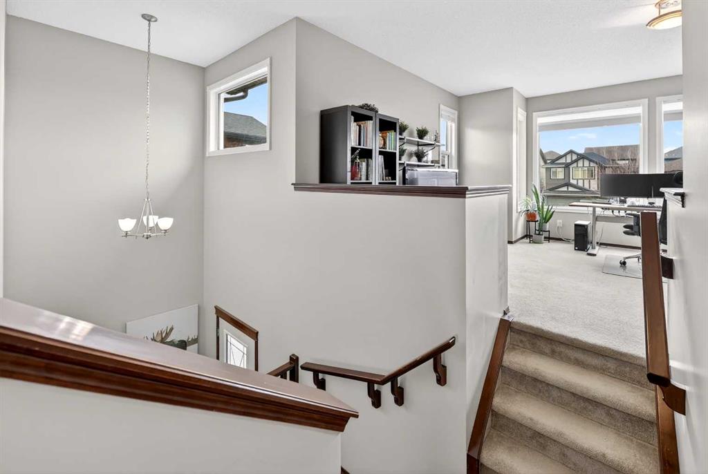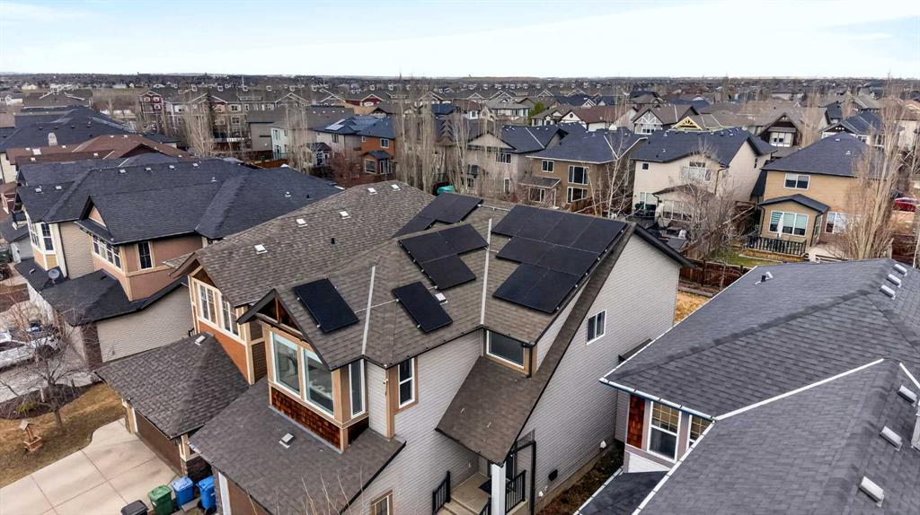 *Open House Sunday Apr 19, 1:30-3:30pm* Welcome to this warm and welcoming 2-storey family home nestled in the desirable lake community of Auburn Bay. This beautifully maintained residence offers 3 spacious bedrooms, 2 full bathrooms, a convenient half bath, upper level bonus room, along with a double attached garage. With energy efficiency in mind, it features solar panels that generate over 7,500 kWh of electricity each year. Also, triple-pane windows with UV protection for superior insulation against both heat and sound (installed 2024 w/ 25 year warranty), black-out shades on all west-facing windows & central air conditioning. This home even provides a comprehensive 8-camera Lorex self-monitoring home security system. As you enter through the grand two-storey high foyer, you’re greeted by soaring 9 foot ceilings that flow throughout the main level. The open concept layout seamlessly connects the living, dining, and kitchen, all brightened by large windows that fill the home with natural light. Ceramic tile flooring runs throughout the main, with a rich hardwood accent in the living area. The heart of the home is the spacious kitchen, complete with abundant cabinetry, a stylish tile backsplash, walk-in pantry, and premium dark stainless steel Frigidaire appliances installed in 2024. A large central island provides extra workspace, a stainless steel sink, plenty of storage, breakfast bar, and elegant pendant lighting. The adjacent living area features a cozy gas fireplace, while the dining space opens directly onto the spacious deck that’s ideal for summer BBQs or watching the kids play in the yard. The deep backyard is nicely landscaped with established trees and bushes, garden beds, fire pit, and a storage shed. A 2-piece powder room and convenient main floor laundry room complete this level. Upstairs, the primary bedroom is a peaceful retreat with a large window, a luxurious 5-piece ensuite bathroom boasting double sinks, a deep soaker tub, a walk-in glass & tile shower, beautiful tile flooring, and an expansive walk-in closet. Two additional good-sized bedrooms share a 4-piece bathroom with tile flooring, a tub/shower with tile surround, and built-in shelving for linens and storage. You’ll also love the sunny bonus room with large west facing windows, flooded with natural light and perfect for a home office, play area, or cozy media space. The unfinished basement offers a blank canvas with roughed-in bathroom plumbing, ready for your personal touch. Located in central Auburn Bay, this home sits peacefully away from highway noise while still benefiting from bus routes and regular snowplowing. It’s a vibrant lake community centered around a stunning 43 acre freshwater lake - offering access to year round fun including swimming, kayaking, fishing, and winter ice skating. With a 5 minute walk to four different schools and numerous parks, plus quick access to the popular Dog Park and scenic Greenway trails, you’re also just a short drive from South Health Campus.