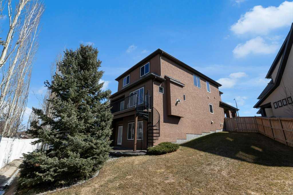 Exquisite Walkout Residence in the Prestigious Lake Community of Mahogany. Welcome to this exceptional 3-bedroom walkout home, perfectly positioned on a premium pie-shaped lot in one of Calgary’s most sought-after lake communities. Offering an unparalleled blend of elegance, functionality, and outdoor living, this residence is just a short stroll to Mahogany Lake, the community centre, scenic pathways, parks, and an abundance of boutique shops and dining experiences. Step inside to discover a bright and expansive open-concept main floor, enhanced by 9-foot ceilings and a sophisticated combination of rich hardwood and tile flooring. The gourmet kitchen is a true showpiece—featuring multiple islands, extensive counter space, and a raised eating bar with seating—designed to impress while offering everyday practicality. The adjoining dining and living areas are bathed in natural light from oversized windows and flow seamlessly onto a full-length elevated deck, creating the perfect setting for indoor-outdoor entertaining. The upper level offers a thoughtfully designed layout, including a spacious bonus room complete with a built-in 7-speaker home theatre system, a dedicated den or home office, and a convenient second-floor laundry room. The luxurious primary retreat serves as a private sanctuary, showcasing a walk-in closet and an opulent ensuite with a steam shower and deep soaker tub—ideal for unwinding in comfort. Adding to your comfort in the Summer months is Central Air Conditioning to balance out any heat waves. The walkout basement remains unspoiled, presenting a rare opportunity to customize and expand your living space to suit your lifestyle. Outdoors, the property truly shines. Professionally landscaped grounds feature a beautifully crafted paver stone patio, retaining wall, and an inviting fire pit area—perfect for entertaining or quiet evenings under the stars. The durable stucco exterior enhances both curb appeal and longevity. Additional features include a double attached garage with a functional mudroom, integrated audio throughout the great room and dining area, and a curated selection of premium inclusions: a home theatre system with Onkyo receiver and Boston Acoustics subwoofer, a full-motion TV wall mount, a Weber Summit 670 series gas barbecue, an Outdoor Greatroom natural gas fire table with granite top and wind guard, and a Frigidaire upright freezer. With playgrounds just steps away and every amenity within easy reach, this remarkable property offers a refined lifestyle defined by comfort, convenience, and lakeside living. Call your Favorite Realtor to come view today.