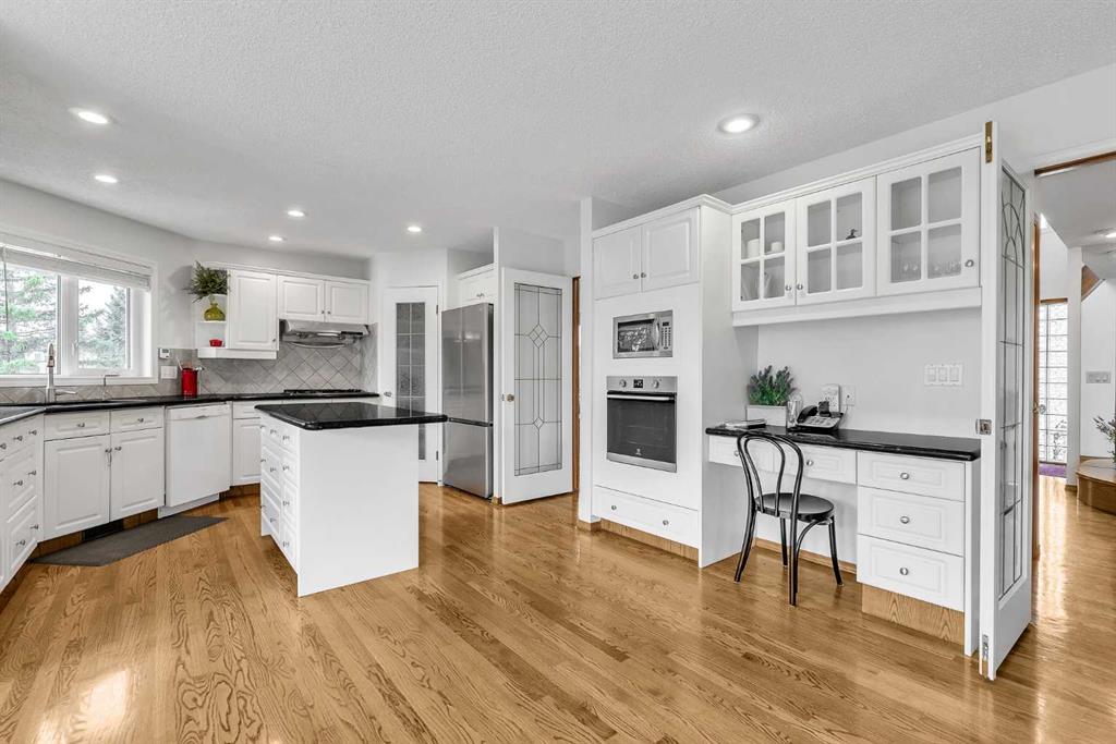 Lovingly cared for 2 storey home in Estate Neighborhood , backing to open green space and fronting to open path way , minutes to Fish Creek Park and easy access to all major roadways . This immaculate 3500 sq.ft home is fully developed with a walk-up lower level that's strategically designed , 2 bedrooms ( with in floor heating ) full bath , a separate entrance , perfect for adding a suite . Large windows through-out make this home bright and inviting . These original owners have meticulously cared for this home and it shows ! Substantial upgrades including Clay Tile Roof , all new Triple Pane Windows , all Poly B removed in 2025 , new furnaces in 2023 , eave troughs 2022 , Hot Water tank in 2022 , Updated primary ensuite in 2023 , some new Appliances 2026 . This outstanding family home offers 4 Bedrooms up plus 2 down , along with a main floor den , formal dining room , cozy family room with feature gas fireplace and spacious living room . The main floor laundry room is oversized allowing for a great work station . . Gorgeous hardwood flooring throughout this immaculate home adds a warm and comforting feel flowing seamlessly throughout the entire home . Truly a great home in a desirable neighborhood .