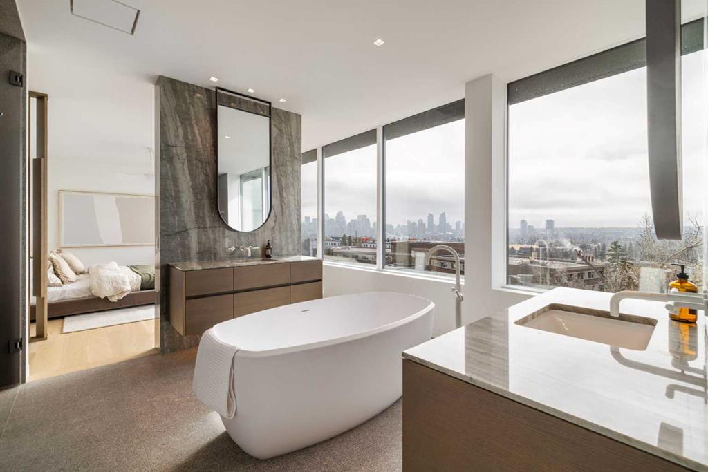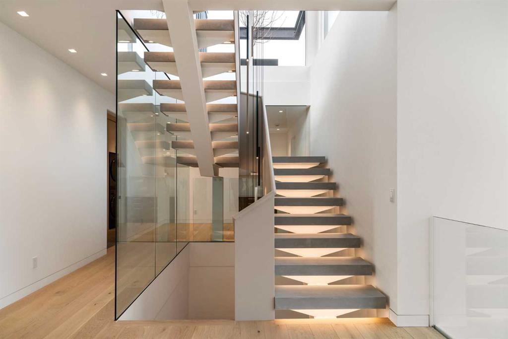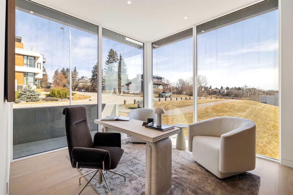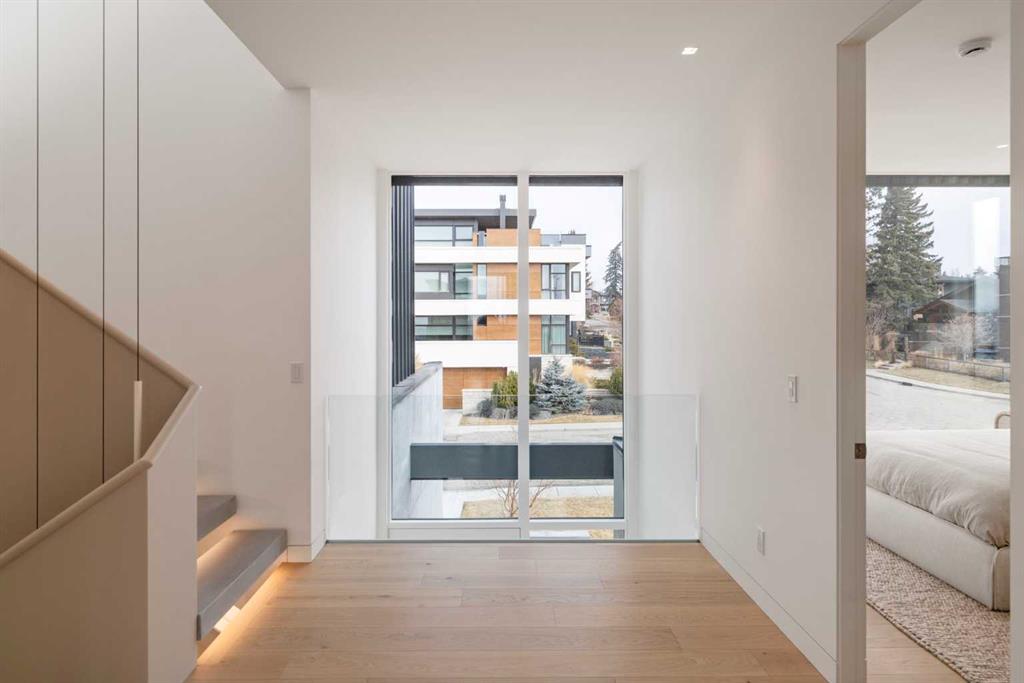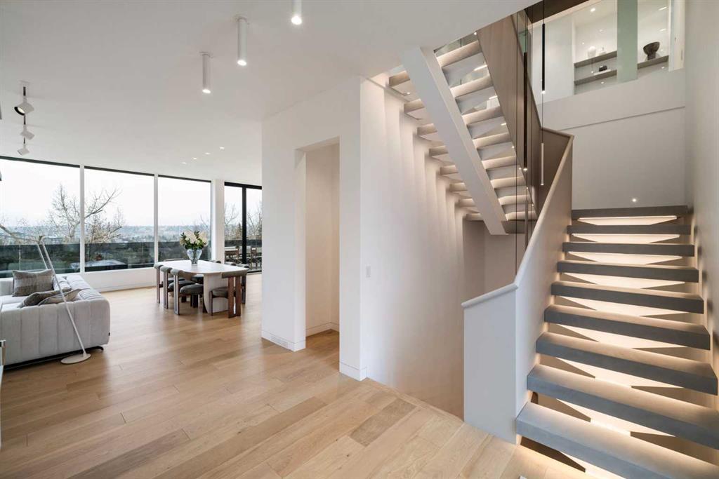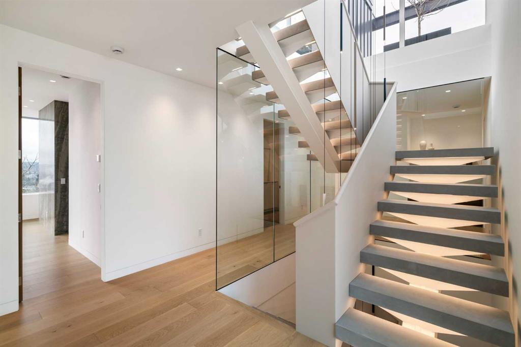 Nestled in the prestigious Briar Hill neighborhood, this warm contemporary masterpiece, built by Wurzer Page Homes, spans 6,000 sq ft of exquisite living space, embodying California-inspired design and exceptional craftsmanship. Designed by R-EID Studio as a true architectural gem, this south-facing home boasts unequaled city views from every level, with all three exterior patio spaces basking in southern light, framed by an oversized Loewen window package. Constructed with steel, wood, and concrete, the residence exudes sophistication with high-end quartzite and stone finishes, matte white California Faucets, and a stainless steel island. The entire home operates on a Lutron control system, featuring designer light fixtures throughout, including a stunning Bocci light fixture above the basement bar. Designed for seamless entertaining, the walkout basement offers a 12-foot ceiling and a 36’ wide folding door, blending indoor and outdoor living. Perfect for hosting or relaxation, the home includes a 400 sq ft dedicated gym, a serene office with floor-to-ceiling windows, and heated floors in the basement and garage, with rough-in for driveway heat. Located in a tranquil setting next to green space, surrounded by luxury homes, it’s close to downtown and hospitals. With too many features to capture in print, this home must be experienced in person—a private tour is recommended. Potential buyers are advised to drive by at night to witness the captivating illumination. Vendor financing available upon approval.