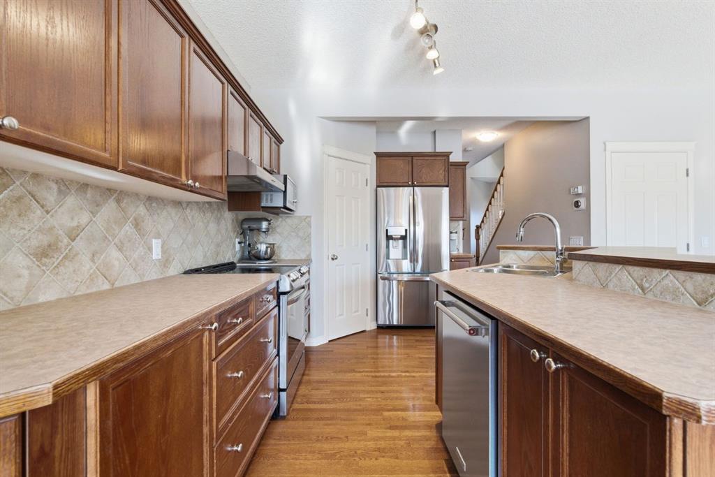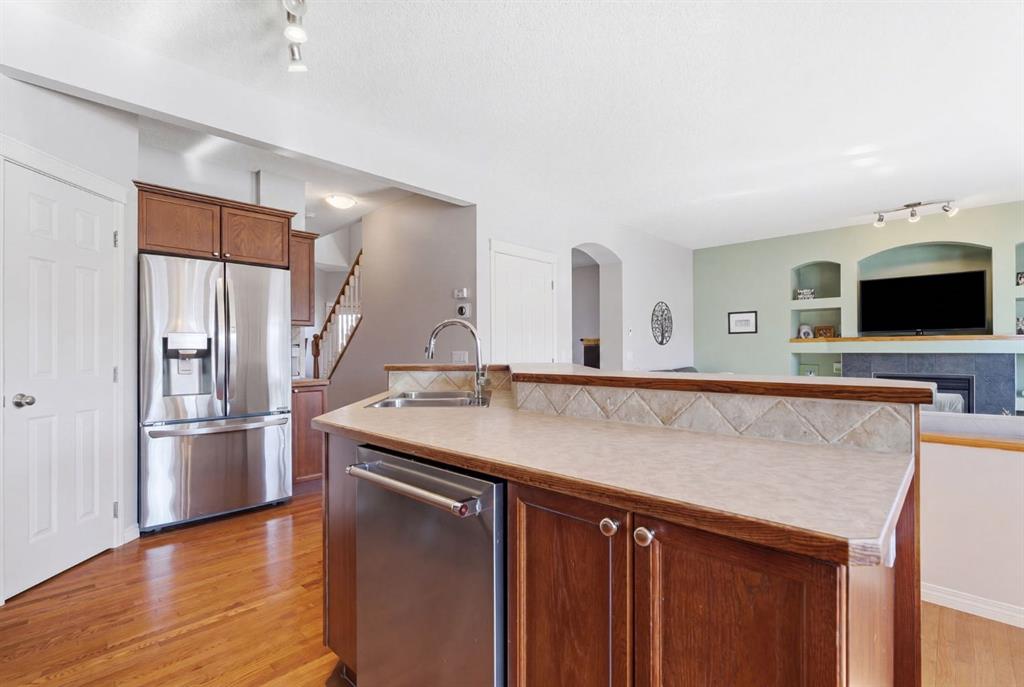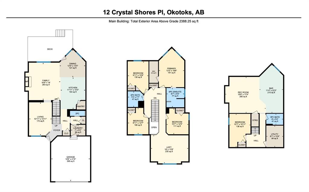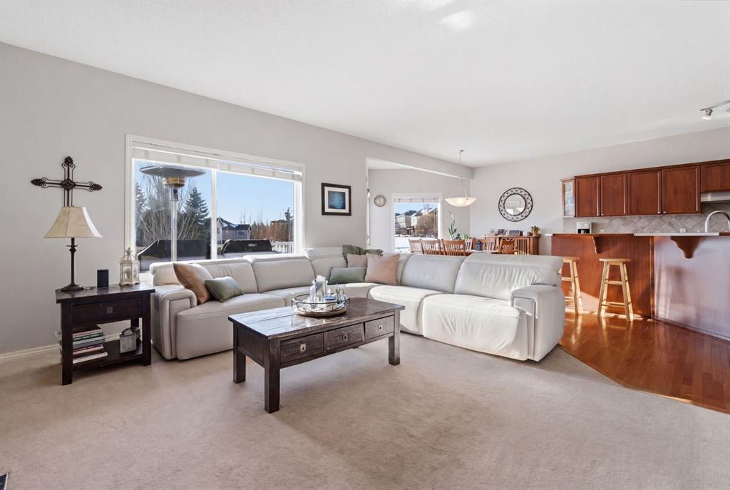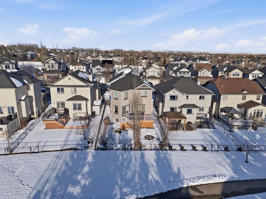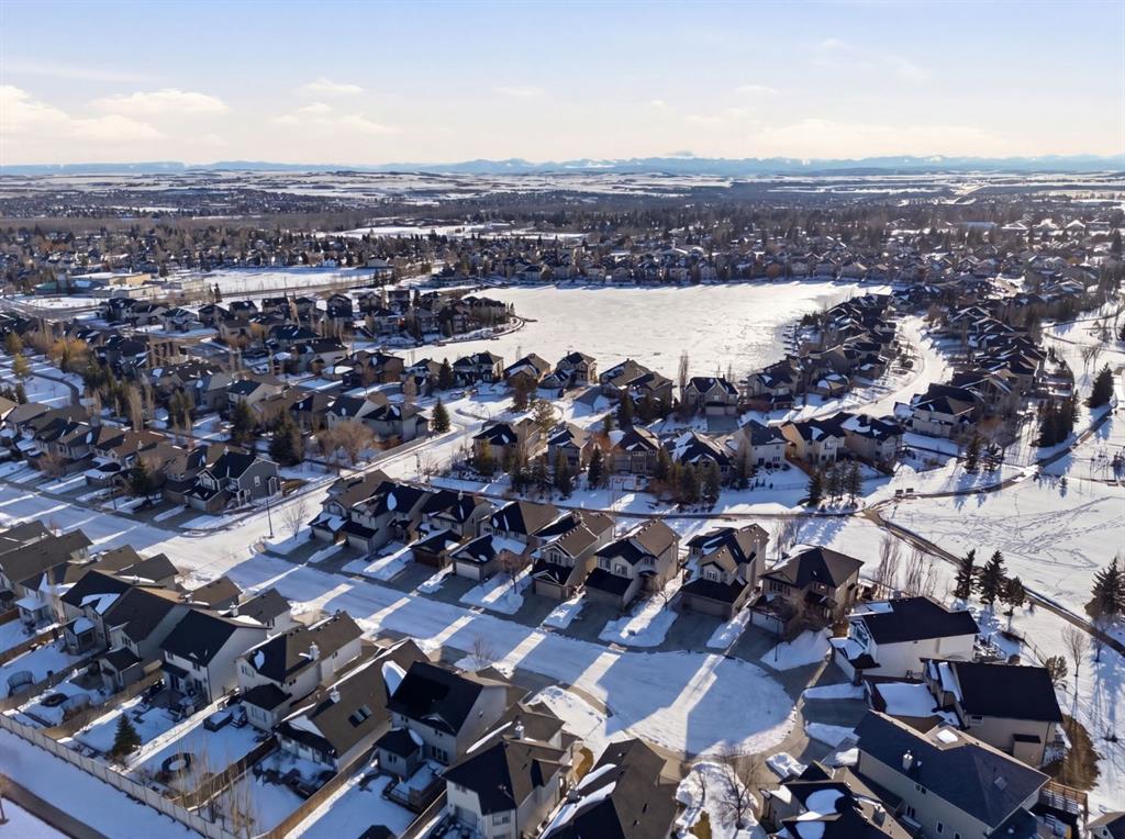 On the market for the first time. This stunning home is in the highly coveted lake community of Crystal Shores in Okotoks. This residence offers nearly 3,400 square feet of developed space, lake access, and backing onto peaceful greenspace. Upon entering, you will be greeted by soaring 9’ ceilings, an expansive floor plan and gorgeous railings! The bright and spacious main level is filled with natural light and features a thoughtfully designed layout. The kitchen is a focal point with solid wood cabinets, a timeless tile backsplash, stainless steel appliances, and a corner pantry for added storage. Adjacent to the kitchen is a sun filled dining room with direct access to your WEST BACKYARD! Enjoy the low maintenance dura deck, no neighbours directly behind you, and MOUNTAIN VIEWS. The expansive living room flows seamlessly into the dining room and kitchen making it ideal for entertaining guests. A stunning custom fireplace adds warmth and character to the living space. A versatile large den at the front of the home can serve multiple purposes such as a formal dinning room, office, children’s playroom, or additional living area. The main floor is complete with a half bath tucked away for privacy and a convenient main floor laundry room. Upstairs, the primary suite is a true sanctuary with mountain views and complete privacy. Offering a substantial closet and a spa inspire ensuite consistent of dual sinks, a large soaker tub, and separate shower. You will also find 3 generous sized bedrooms, a well appointed 4 piece main bath, and a bonus room with expansive vaulted ceilings. The bonus room is the perfect space to unwind, enjoy family time and reconnect. The lower level adds even more value and is complete with an additional bedroom, 3piece bath and inviting rec room with a bar. Additional highlights include a double attached garage, gas line on the deck, and the comforts of air conditioning. This is a rare opportunity to own a well maintained home in one of Okotoks’ most desirable communities, walking distance to four schools, and an extensive path system. Enjoy amble space, privacy, and an unbeatable lifestyle! Schedule your showing today or view the virtual tour.