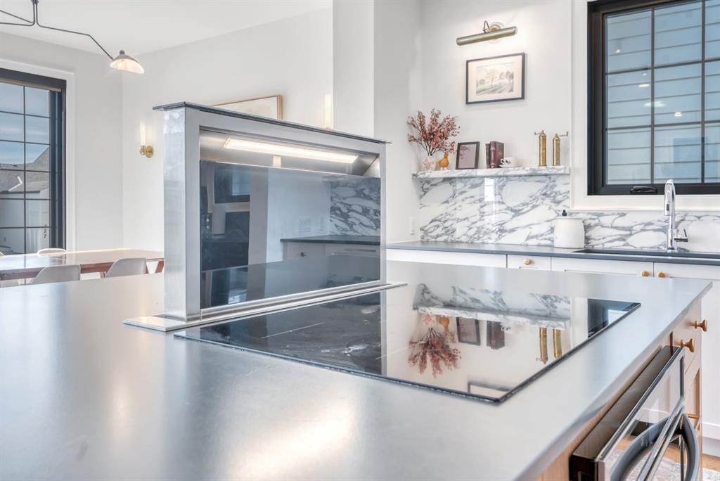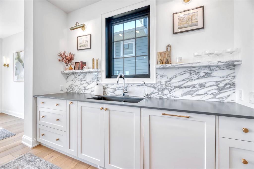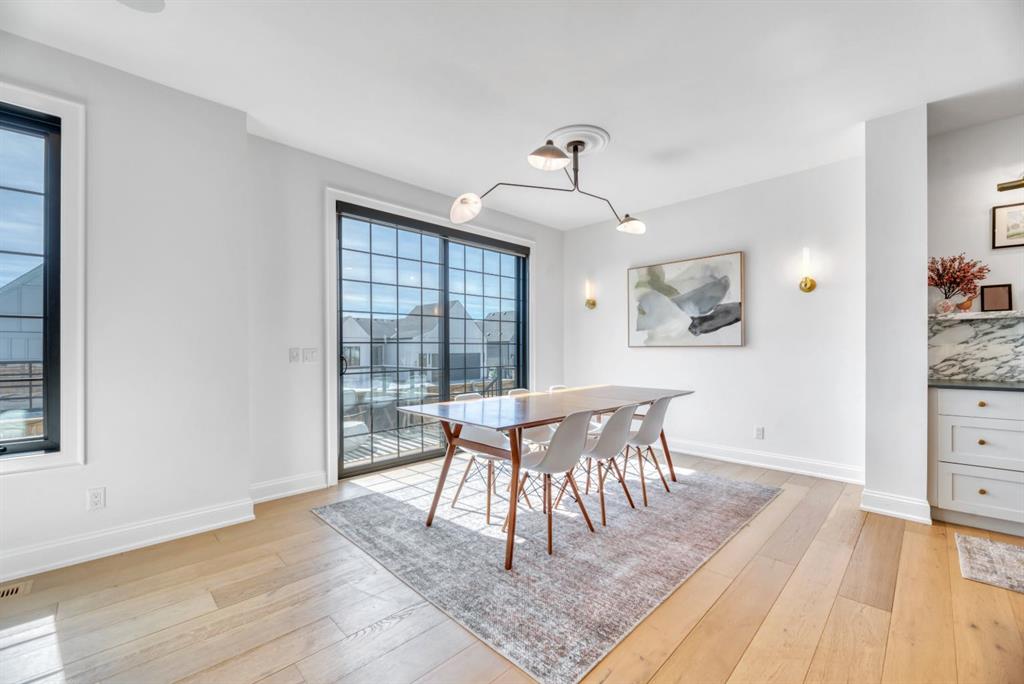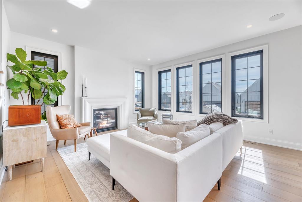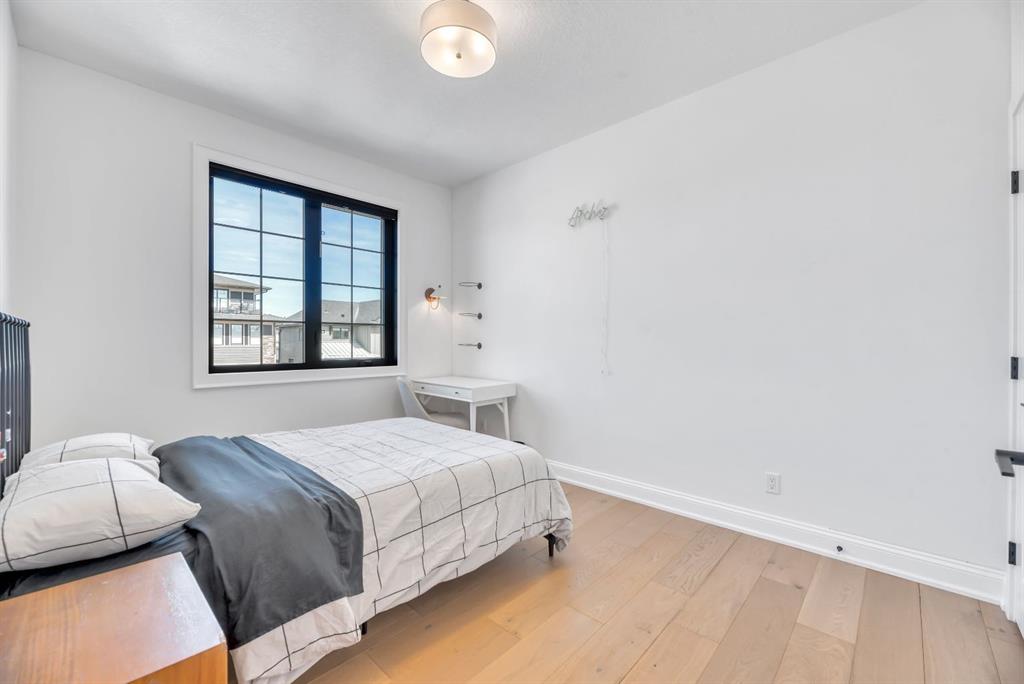 Welcome to an architecturally inspired Organic Modern residence in the award-winning lake community of Harmony—where elevated design meets an unmatched lifestyle just minutes west of Calgary. Enjoy quick access to the city, the renowned Mickelson National Golf Club, and a growing collection of amenities including the lake, beach, pathways, parks, and future village centre—offering a rare blend of recreation, convenience, and community. This modern transitional home offers over 2,700 sq ft of thoughtfully curated living space, combining clean architectural lines with warm, organic finishes. From the moment you arrive, the herringbone brick walkway, soft neutral palette, and striking black-framed windows set the tone for what’s inside. Step into a light-filled interior defined by wide plank natural white oak flooring, soaring ceilings, and custom archways that soften the modern aesthetic and create a sense of flow throughout. The main floor features a stylish front office/den, perfect for working from home, while the open-concept living space is both refined and inviting. At the heart of the home is a stunning designer kitchen that perfectly captures today’s most sought-after style—featuring marble backsplash, marble and honed quartz surfaces, panel-ready appliances, and an induction cooktop with a concealed hood fan. A thoughtfully designed coffee bar and walk-through pantry connect seamlessly to the mudroom, where custom cabinetry and chevron brick flooring elevate everyday function with designer flair. Upstairs, the home continues to impress with 4 spacious bedrooms plus a lofted bonus room with a half-vault ceiling, creating a bright and airy retreat. The primary suite is a true sanctuary, complete with custom drapery and a spa-inspired ensuite featuring floating vanities, wall-mounted faucets, a freestanding soaker tub with bath filler, and a large glass-encased marble shower. The main bathroom is ideal for family living, offering a smart layout with a separate vanity area from the water closet. Every detail has been carefully selected—from champagne bronze hardware and custom lighting to elevated millwork, trim, and finishes throughout—creating a cohesive, high-end aesthetic that feels both modern and timeless. Outdoor living is equally impressive with a composite deck (with storage below), stone patio, and hot tub, plus gas lines to the deck, patio, and garage—perfect for entertaining year-round. Additional features include hot and cold exterior taps, Gemstone permanent soffit lighting, a reverse osmosis system, and a sunshine basement filled with natural light and ready for future development. Sod will be completed as weather permits. Complete with a double attached garage and located in one of the most desirable communities in the Calgary area, this home offers a rare opportunity to own a design-forward, move-in ready property in Harmony. Modern. Warm. Effortlessly elevated.