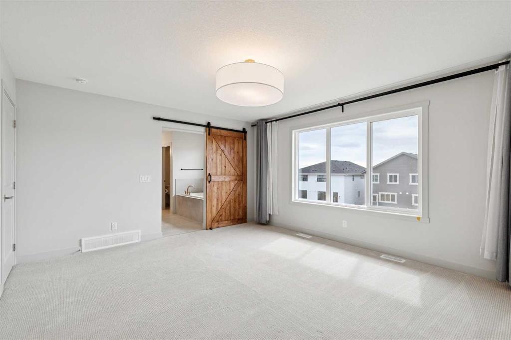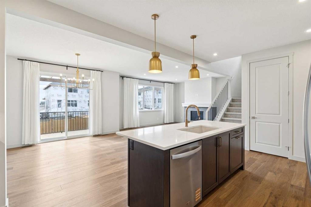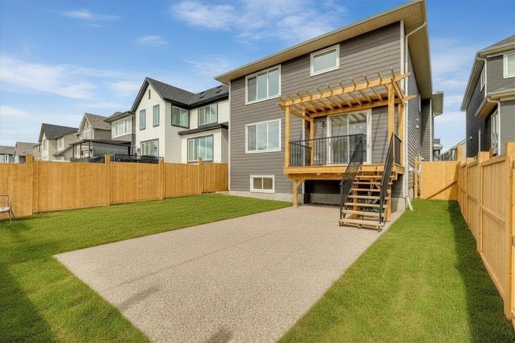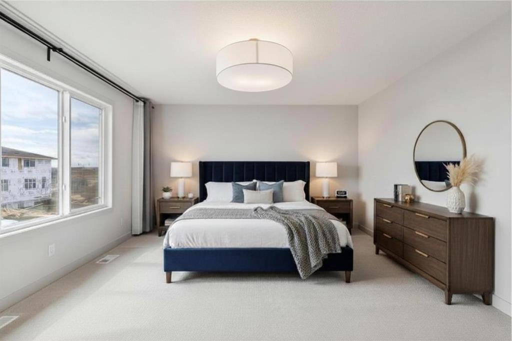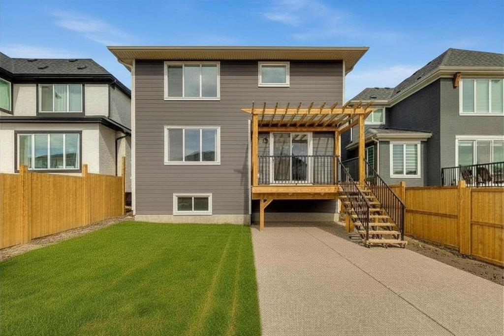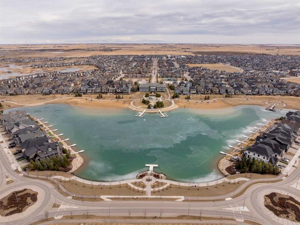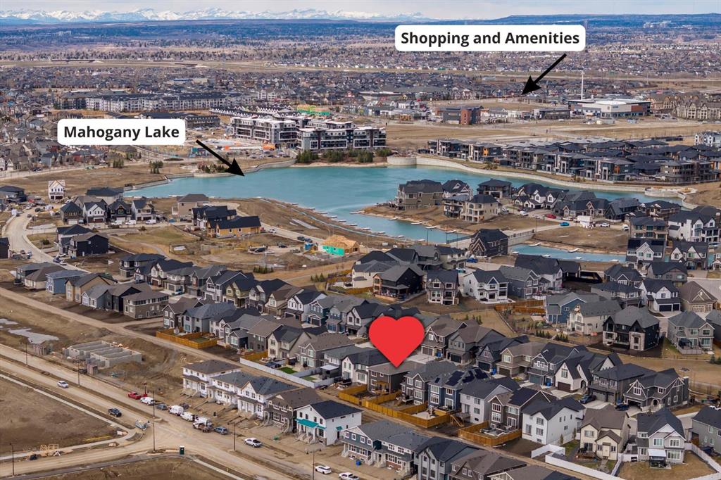 4 BEDROOMS & BONUS ROOM UP | Set within an exclusive, quiet estate pocket of Mahogany, this exceptional, virtually brand-new Baywest-built Rosebud model offers refined lake living with rare SEMI-PRIVATE DOCK ACCESS and over 2,700 sqft of thoughtfully designed space. From the moment you enter, the home impresses with soaring 9' ceilings, 8’ interior doors, engineered hardwood flooring, and a light-filled layout that balances everyday function with elevated style. The main level is anchored by a stunning chef’s kitchen featuring a statement island, stainless steel appliances including gas stove, full-height cabinetry with crown moulding, under-cabinet lighting, soft-close features, and smart storage including pullouts, all flowing effortlessly into an inviting dining area and expansive great room with a gas fireplace. Tucked discreetly at the rear, a walk-through pantry connects to a practical mudroom, while a dedicated main floor office provides a quiet, flexible workspace. Upstairs, a central bonus room creates separation and privacy, leading to a serene primary retreat complete with custom blinds, a spa-inspired ensuite with custom barn door, dual sinks, quartz counters, glass shower with accent wall, large soaker tub and an oversized walk-in closet with built-ins, along with 3 additional bedrooms, a full bathroom with dual sinks and tub/shower combo, and a conveniently located laundry room accessed from the primary bedroom closet as well as the hallway. The exterior showcases a timeless combination of Hardie Board and brick, while the heated TRIPLE ATTACHED GARAGE (painted walls and floor) and paved rear laneway add both prestige and practicality. An unfinished basement with 9' ceilings and 2 windows presents an opportunity to customize to your needs. The south-facing, fully fenced backyard features a gas BBQ hook-up on the deck and gate access to the laneway behind the house. Custom window coverings, back fence, back raised & covered deck (8' x 13'), and back aggregate concrete patio are all additional features that you will not find from a builder, yet the one-year bumper-to-bumper new home warranty is valid until September 2026! Located in one of Calgary’s most desirable lake communities, residents enjoy access to Mahogany’s PRIVATE BEACH, extensive pathways, non-motorized marina, tennis courts, basketball court, skating rink, fitness facilities, and vibrant urban village amenities, offering a truly elevated, 4-season lifestyle. Buyers will receive a $1500 credit for back and front landscaping, but a tree is already in place in the front yard. Location perks: Calgary Catholic School District is planning a K–9 school in the area, about a 500 m walk east from this property. Mercado Village is a planned shopping and dining complex about a 500 m walk south of the property. Back gate to be finished ASAP.