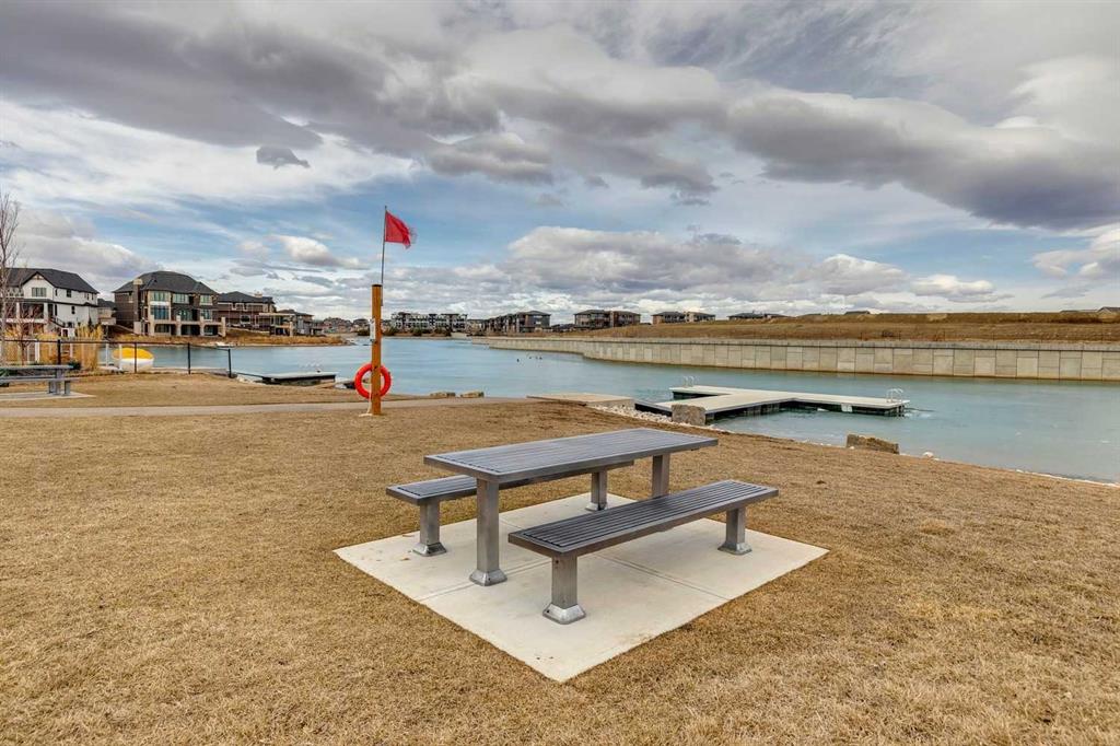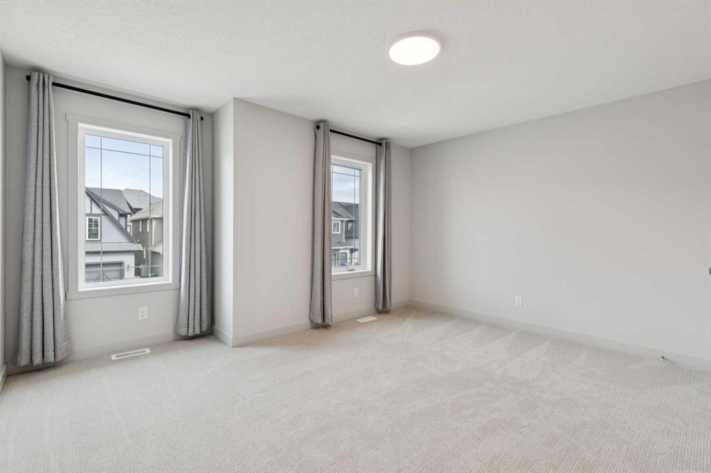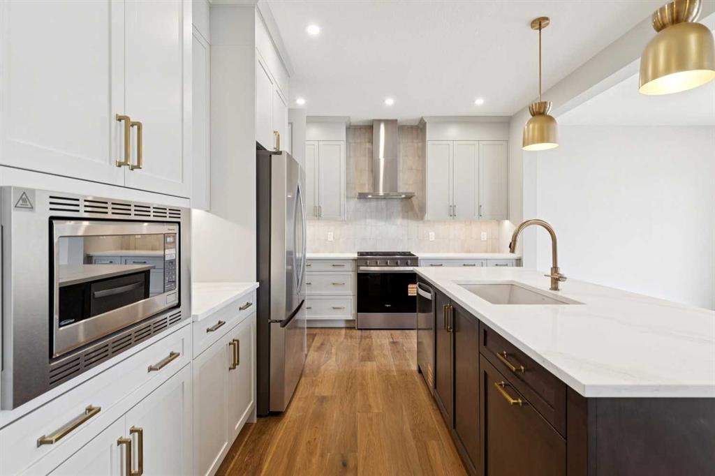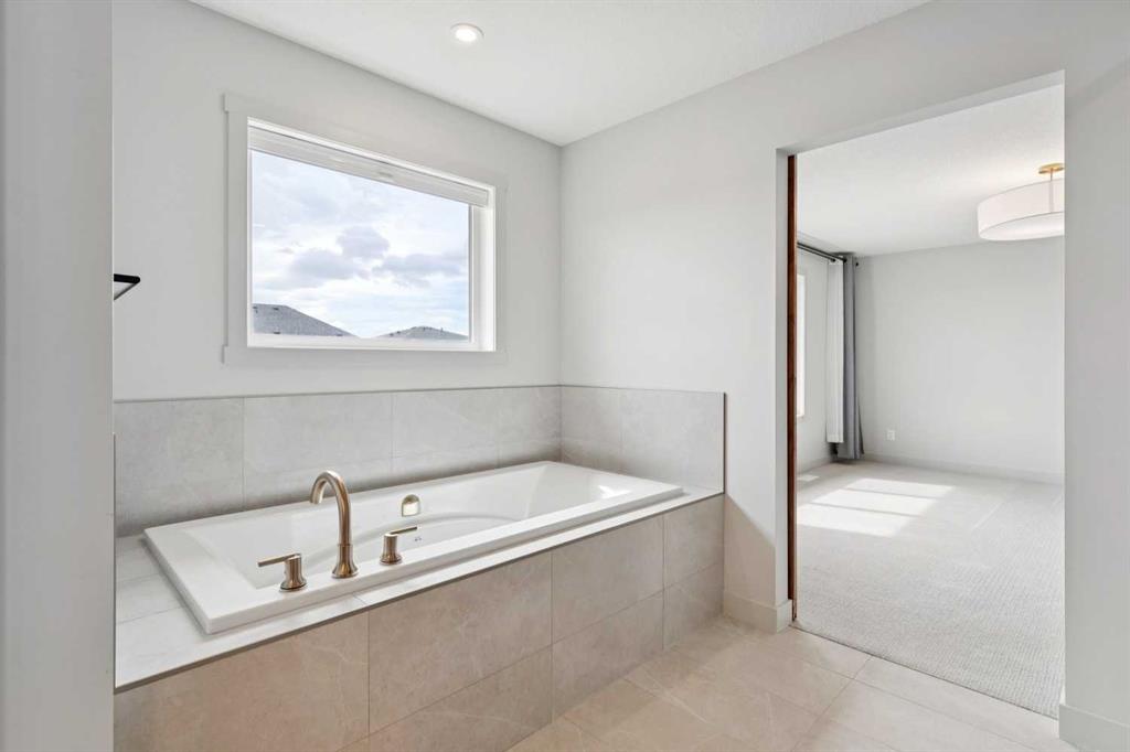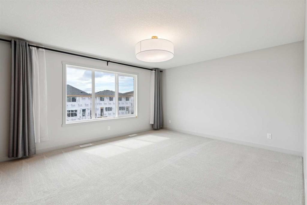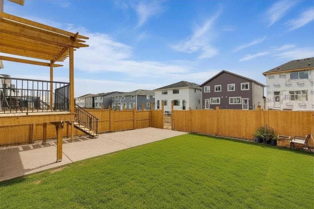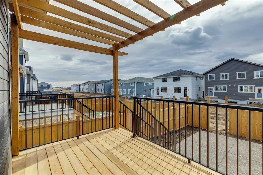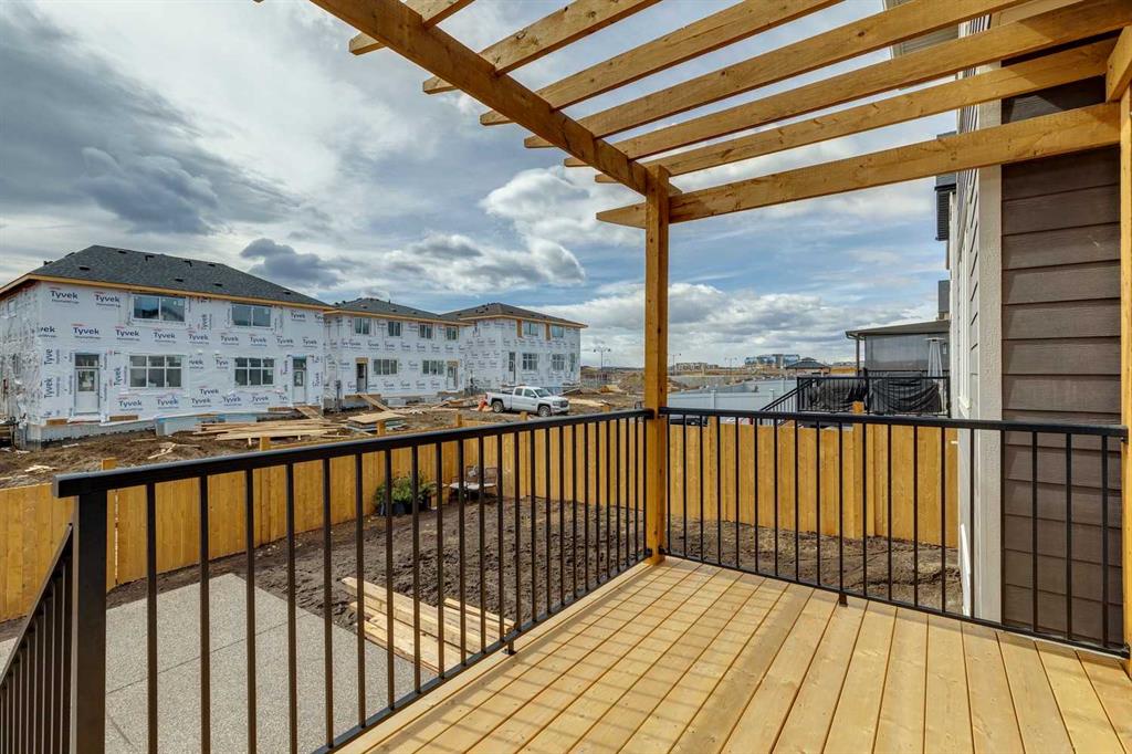 4 BEDROOMS & BONUS ROOM UP | Set within an exclusive, quiet estate pocket of Mahogany, this exceptional, virtually brand-new Baywest-built Rosebud model offers refined lake living with rare SEMI-PRIVATE DOCK ACCESS and over 2,700 sqft of thoughtfully designed space. From the moment you enter, the home impresses with soaring 9' ceilings, 8’ interior doors, engineered hardwood flooring, and a light-filled layout that balances everyday function with elevated style. The main level is anchored by a stunning chef’s kitchen featuring a statement island, stainless steel appliances including gas stove, full-height cabinetry with crown moulding, under-cabinet lighting, soft-close features, and smart storage including pullouts, all flowing effortlessly into an inviting dining area and expansive great room with a gas fireplace. Tucked discreetly at the rear, a walk-through pantry connects to a practical mudroom, while a dedicated main floor office provides a quiet, flexible workspace. Upstairs, a central bonus room creates separation and privacy, leading to a serene primary retreat complete with custom blinds, a spa-inspired ensuite with custom barn door, dual sinks, quartz counters, glass shower with accent wall, large soaker tub and an oversized walk-in closet with built-ins, along with 3 additional bedrooms, a full bathroom with dual sinks and tub/shower combo, and a conveniently located laundry room accessed from the primary bedroom closet as well as the hallway. The exterior showcases a timeless combination of Hardie Board and brick, while the heated TRIPLE ATTACHED GARAGE (painted walls and floor) and paved rear laneway add both prestige and practicality. An unfinished basement with 9' ceilings and 2 windows presents an opportunity to customize to your needs. The south-facing, fully fenced backyard features a gas BBQ hook-up on the deck and gate access to the laneway behind the house. Custom window coverings, back fence, back raised & covered deck (8' x 13'), and back aggregate concrete patio are all additional features that you will not find from a builder, yet the one-year bumper-to-bumper new home warranty is valid until September 2026! Located in one of Calgary’s most desirable lake communities, residents enjoy access to Mahogany’s PRIVATE BEACH, extensive pathways, non-motorized marina, tennis courts, basketball court, skating rink, fitness facilities, and vibrant urban village amenities, offering a truly elevated, 4-season lifestyle. Buyers will receive a $1500 credit for back and front landscaping, but a tree is already in place in the front yard. Location perks: Calgary Catholic School District is planning a K–9 school in the area, about a 500 m walk east from this property. Mercado Village is a planned shopping and dining complex about a 500 m walk south of the property. Back gate to be finished ASAP.